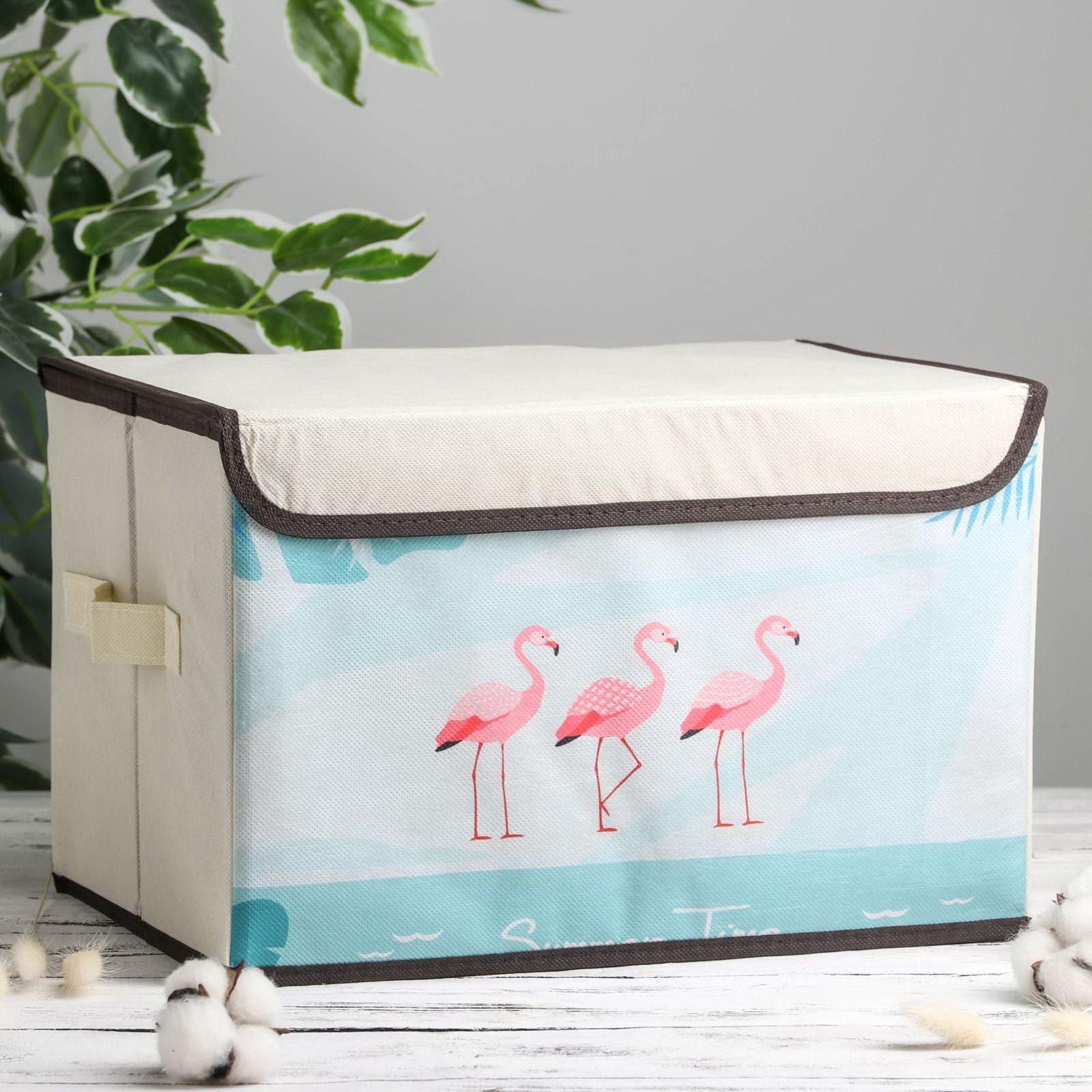 Короб стеллажный для хранения с крышкой "Фламинго", 38x25x24 см, 25x38x24 см., Китай
