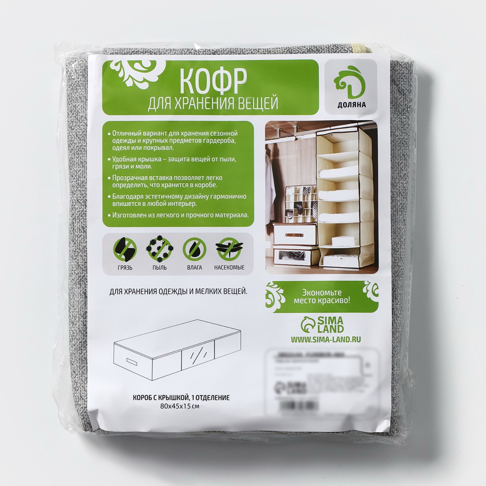 Кофр для хранения вещей "Европа", 80x45x15 см, серый, 45x80x15 см., Доляна, Китай