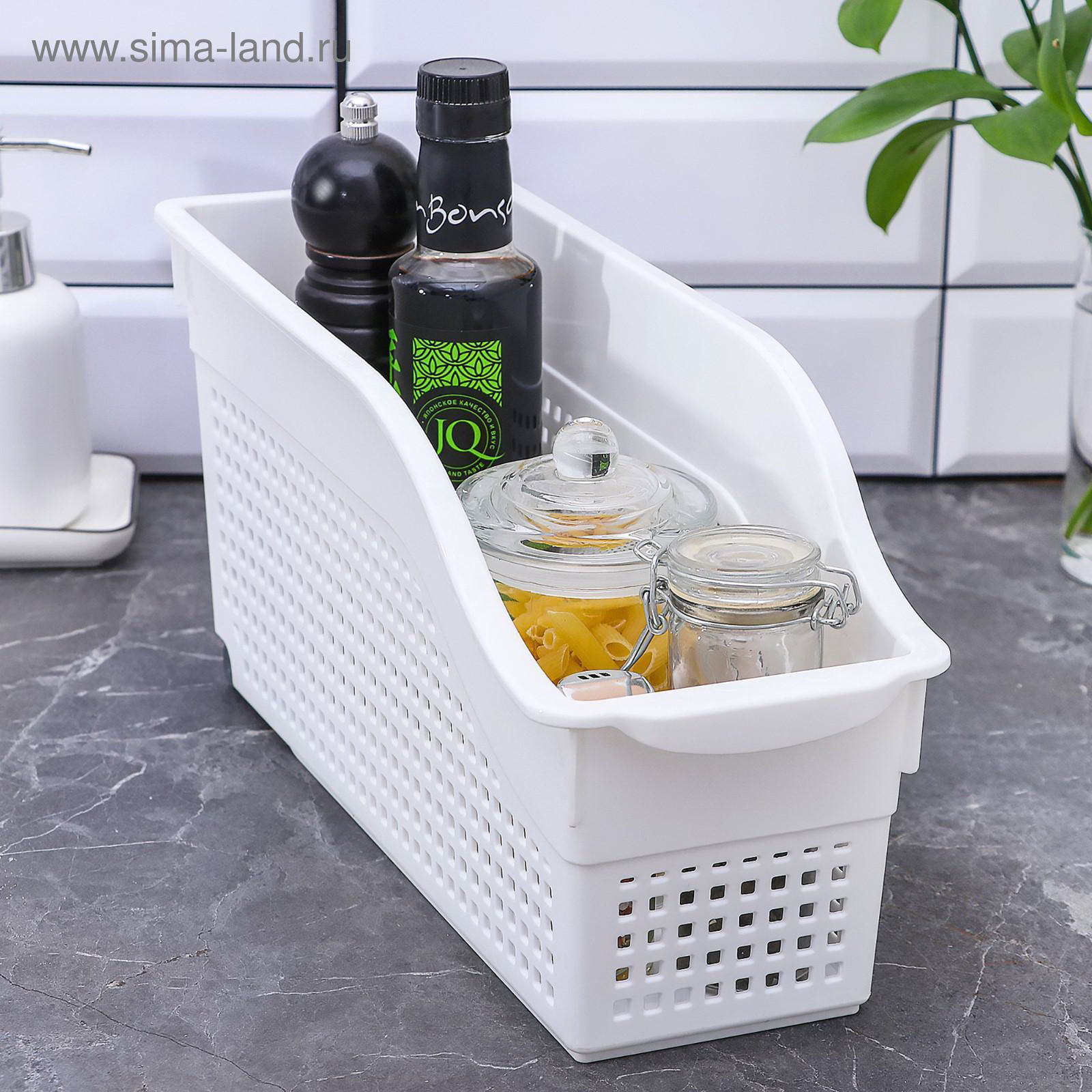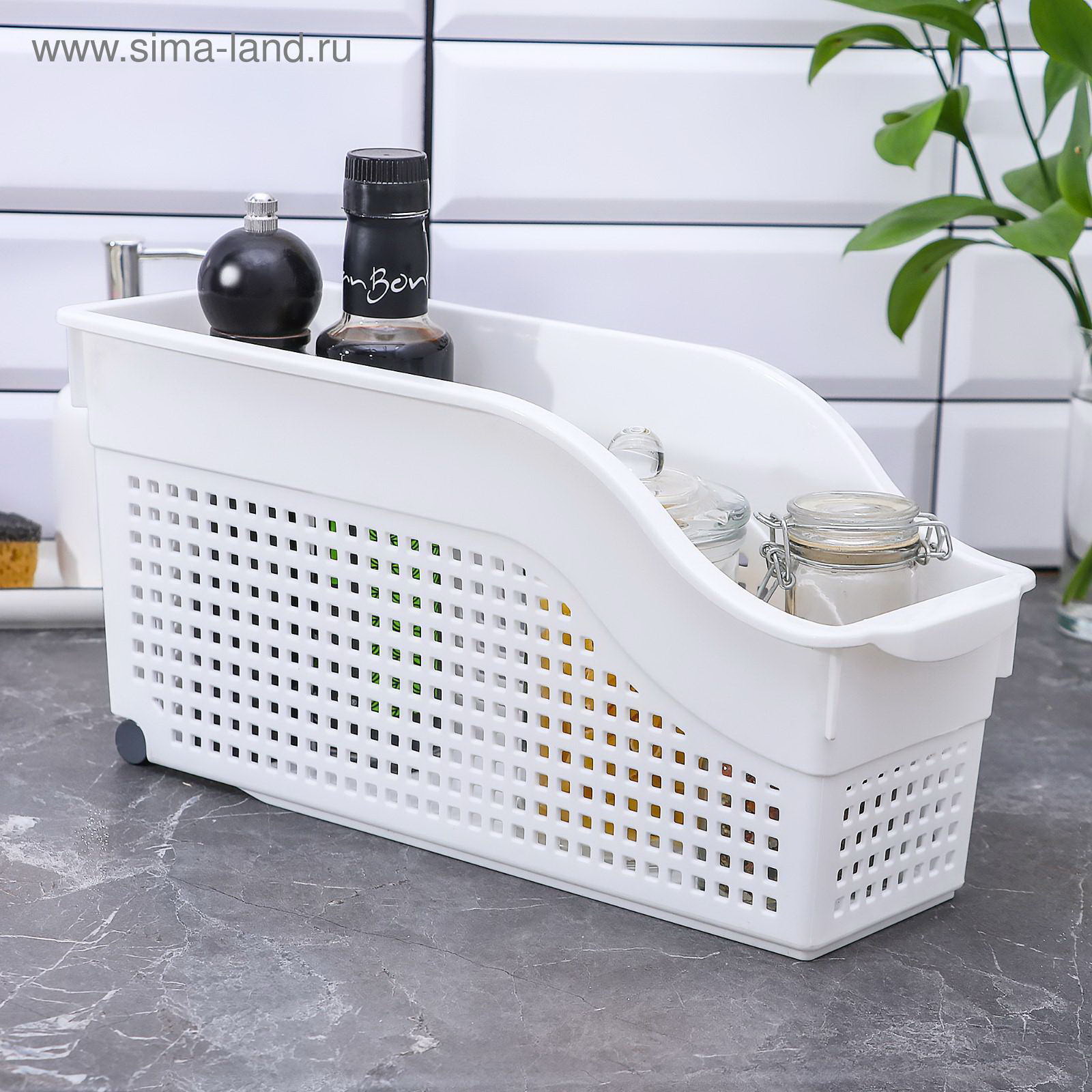 Размер упаковки: 13 x 16.5 x 31.5 см. Форма: Прямоугольник Колёса/ролики: Да Вид: Корзина tnved: 3924900000 Температурное ограничение: Нет Назначение: Для домашних мелочей Цвет: Белый Количество секций: 1 Крышка: Нет Ширина, см: 35.5 Высота, см: 17 Рисунок: Нет Основной материал: Пластик Вместительный контейнер на колесах обеспечит удобное хранение продуктов в холодильнике, либо различных вещей в любом шкафе, полке, на столе. Предотвратит падение бутылочных изделий, обеспечит сохранность хрупких предметов. Преимущества: