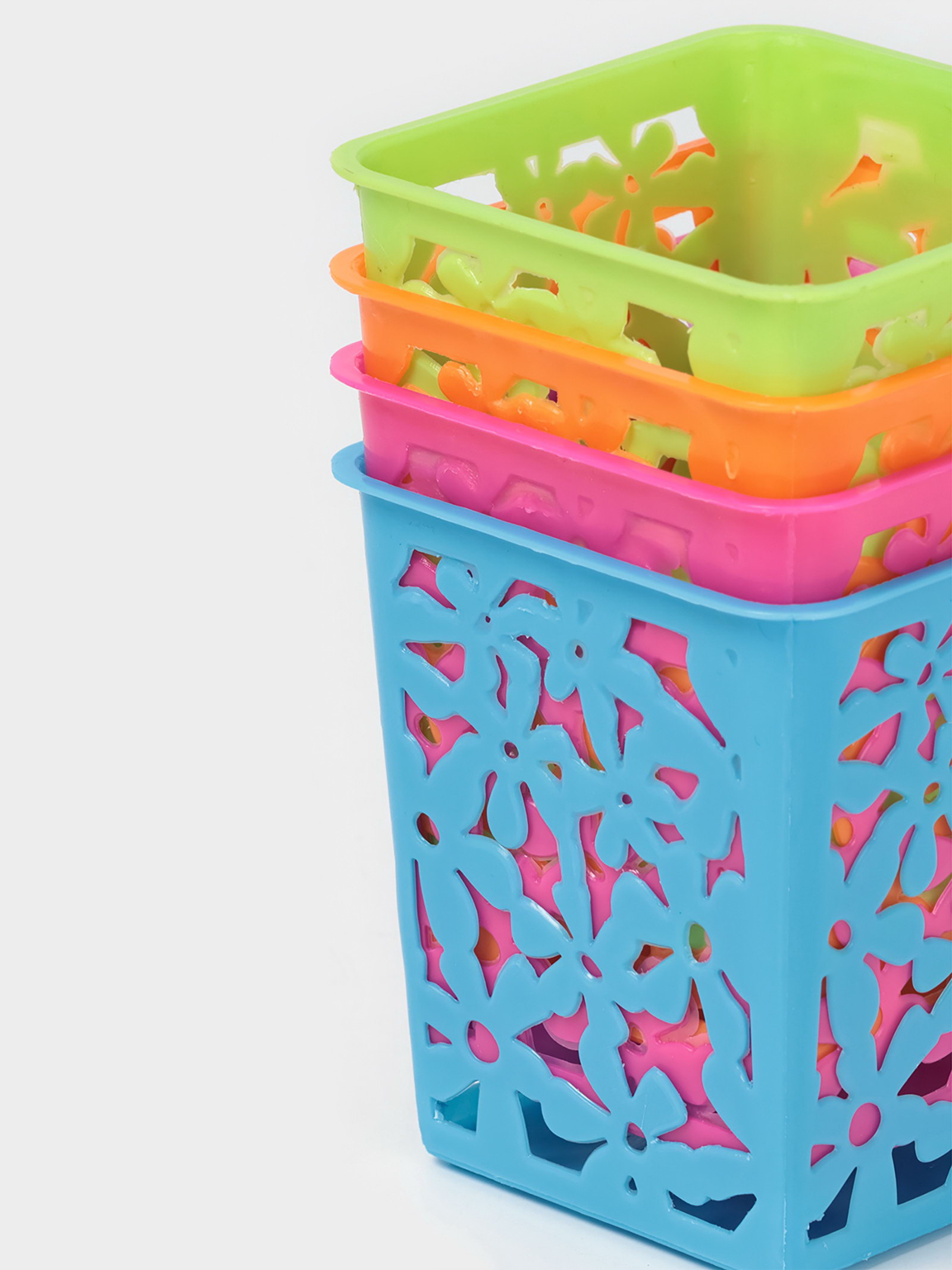 Корзина для хранения "Цветы", пластик, 9x9x10 см, МИКС, 9x9x10 см., Китай