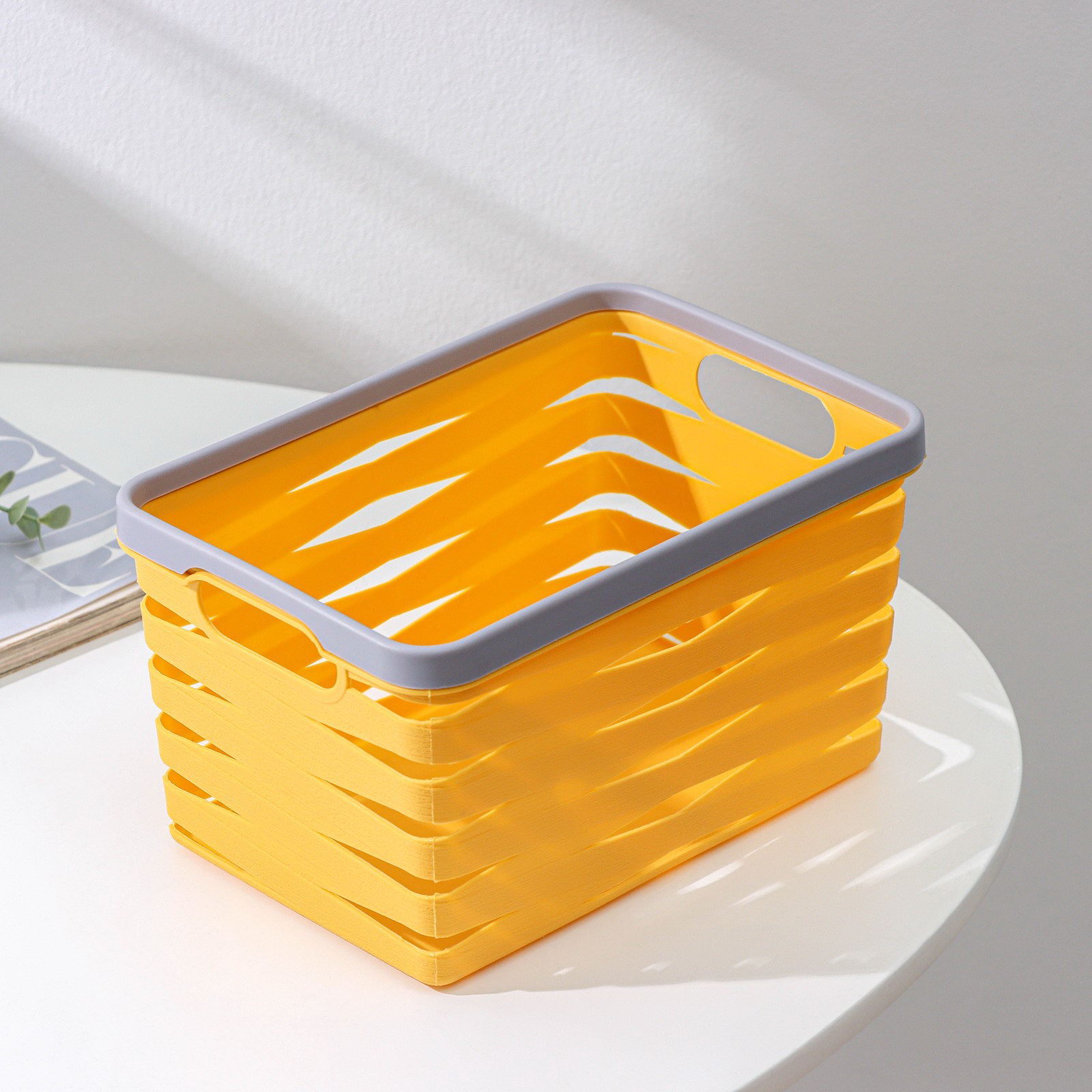 Размер упаковки: 14.5 x 12 x 21 см. Форма: Прямоугольник tnved: 3924900000 tnved: 3924900000 Цвет: МИКС Глубина, см: 14.5 Крышка: Нет Высота, см: 12 Ширина, см: 21 Рисунок: Нет Основной материал: Пластик Стильная корзина для хранения вещей впишется в любой интерьер Вашего дома и всегда будет радовать Вас и Ваших гостей. Преимущества: