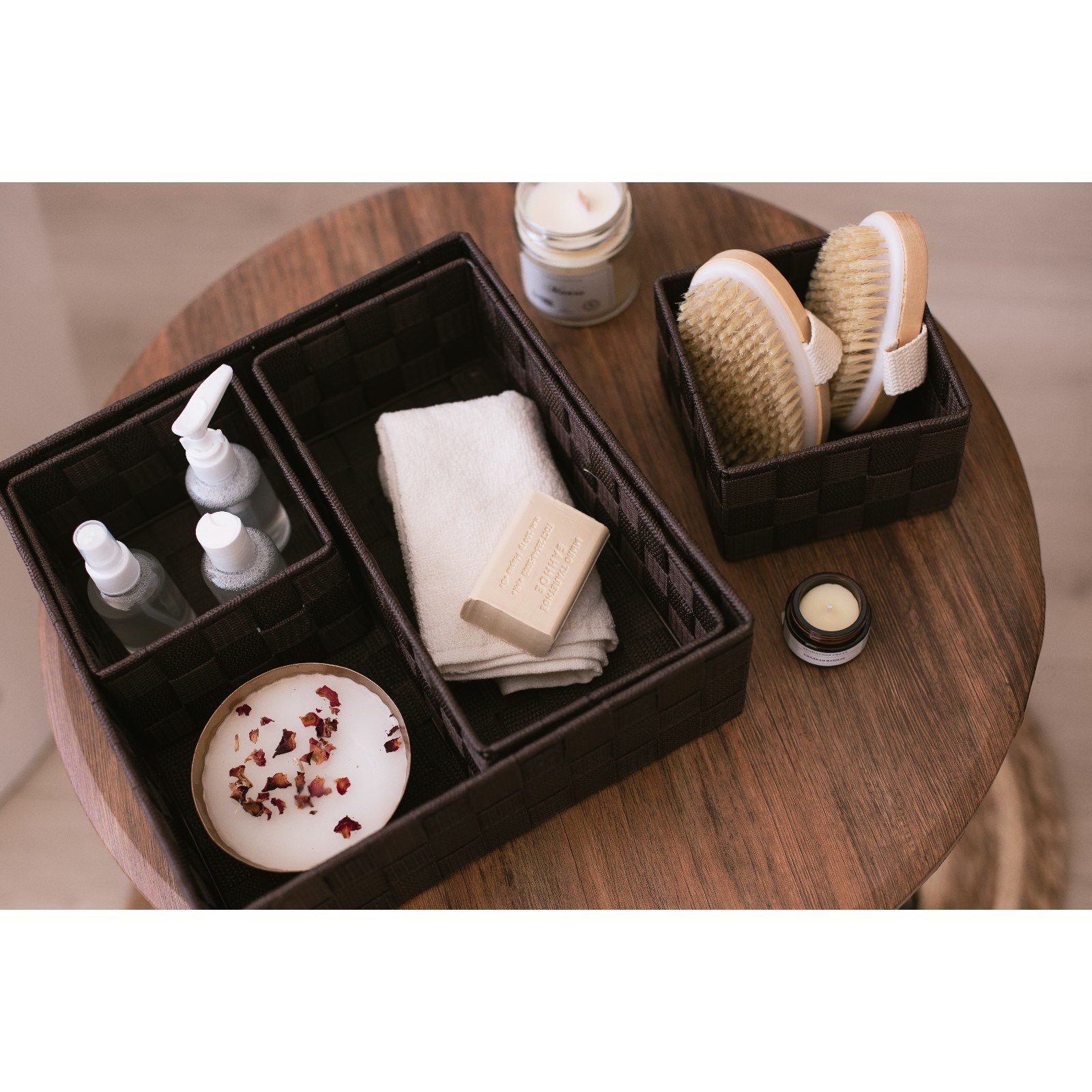 Высота, см: 9, 10 Форма: Квадрат, Квадратная, Прямоугольная, Прямоугольник Размер упаковки: 29 x 11.5 x 29 см. Ширина, см: 29 Цвет: Коричневый Рисунок: Нет Основной материал: Пластик Набор: Да Крышка: Нет Назначение: Для домашних мелочей Назначение: Для домашних мелочей tnved: 4602900000 Элегантная плетёная корзина для хранения станет вашим незаменимым помощником в организации пространства и добавит в дом нотку уюта и стиля. С её помощью вы легко приведёте в порядок любые мелочи, от одежды до аксессуаров для рукоделия, сохранив при этом гармонию интерьера. Особенности: