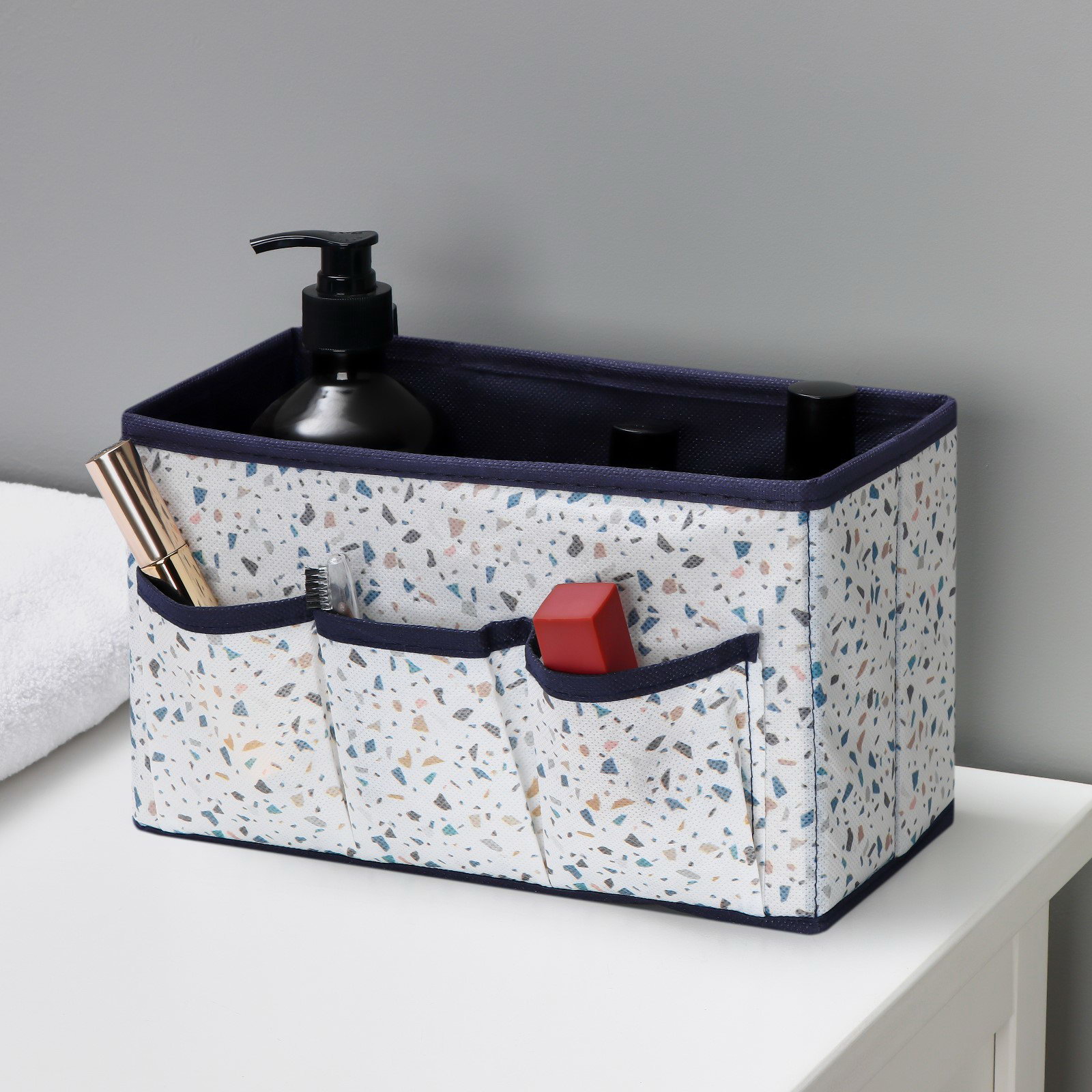 Цвет: Белый, Синий Назначение: Для домашних мелочей, Для косметики Форма: Прямоугольная, Прямоугольник Размер упаковки: 15.5 x 1.5 x 25 см. Количество отделений: 4 Рисунок: Да Крышка: Нет Ширина, см: 25 Высота, см: 15 Для кого: Унисекс Вид застёжки: Без застёжки Вид: Органайзер Особенности: С разделителями Количество ячеек: 4 Набор: Нет Основной материал: Флизелин Основной материал: Флизелин tnved: 6307909600 Многие сталкиваются с проблемой размещения небольших вещей. Занимать ими целую полку жалко, а хранить в других местах неэстетично. Решение есть! Бокс для косметики поможет разобраться с беспорядком. Поставьте его в гардероб или на пол, и вы всегда будете знать, где и что в нём находится. Благодаря лёгкости убрать изделие на возвышение смогут даже хрупкие девушки. Преимущества: