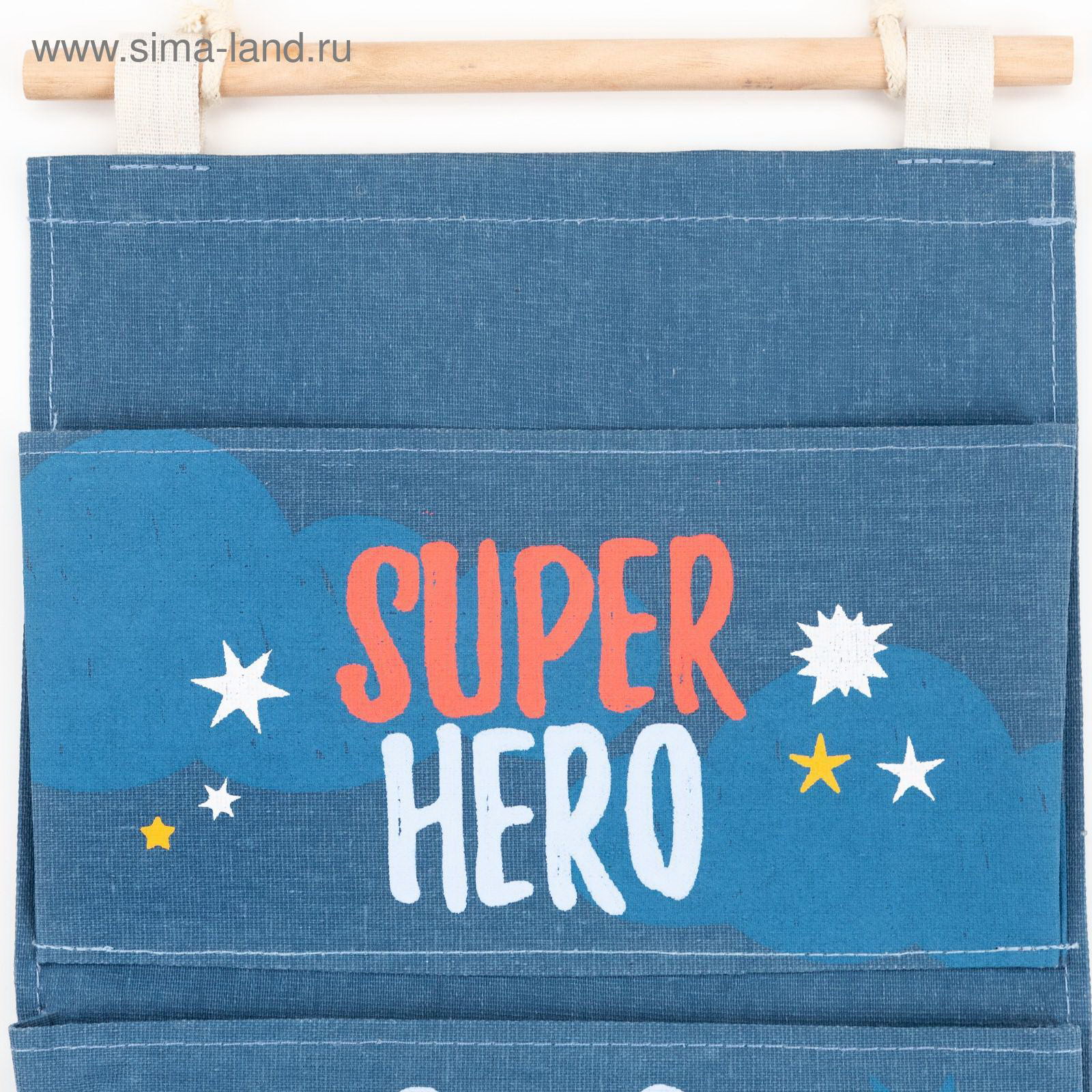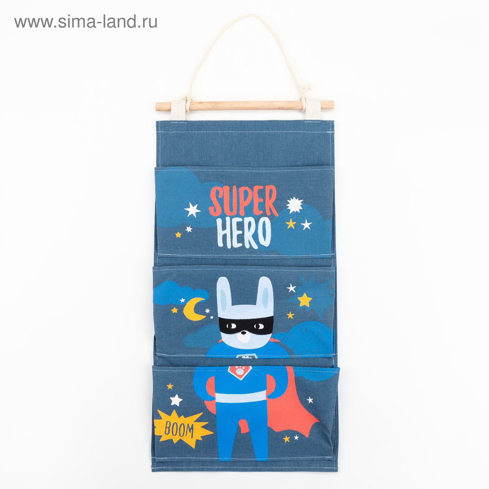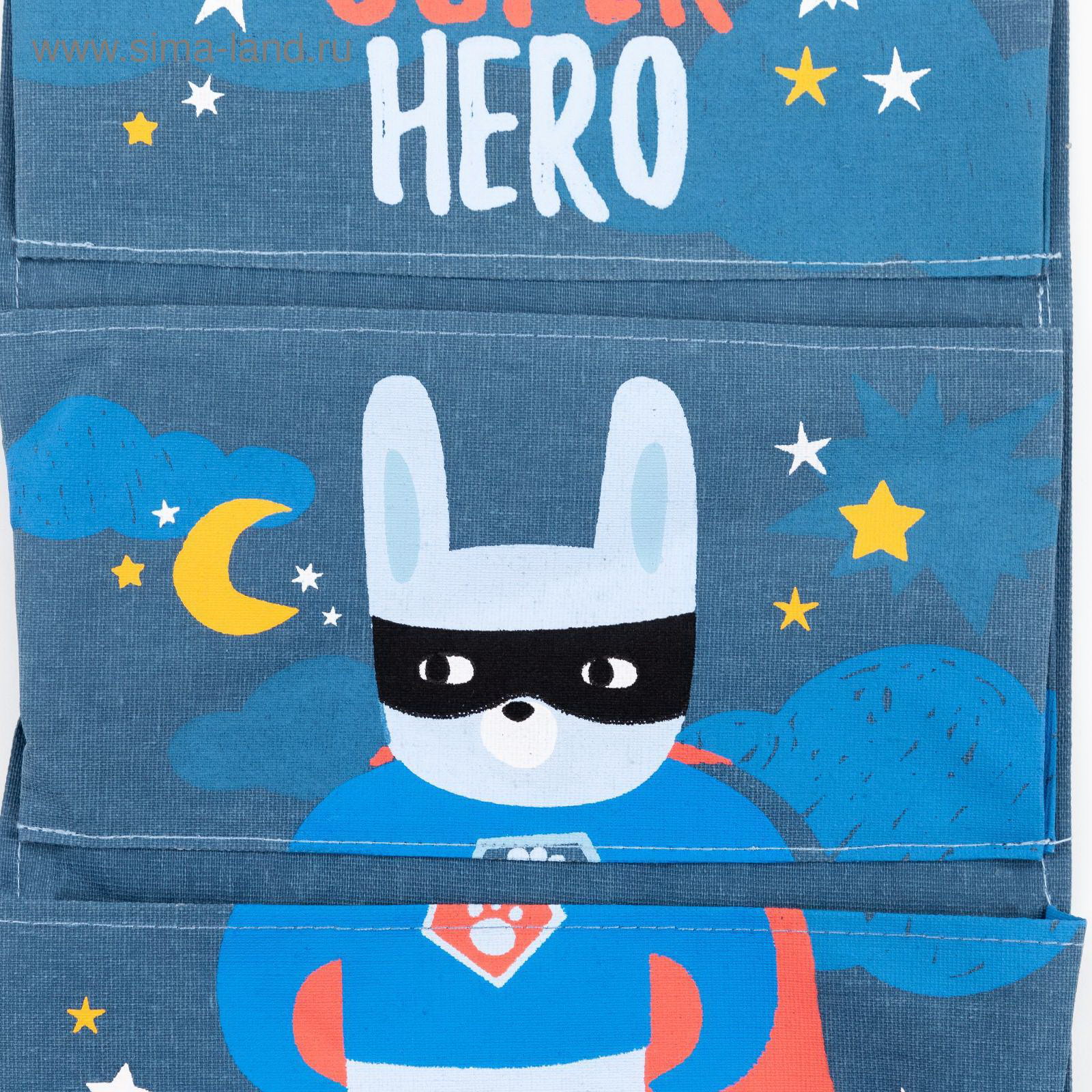 Кармашек текстильный "Super hero", 3 отделения, 26x50 см, водонепроницаемый, 17x34 см., Этель, Китай