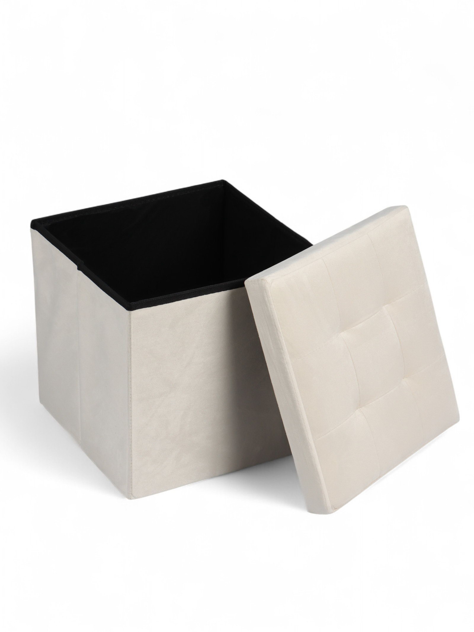 Пуф – короб складной с ящиком, 380x380x380 мм, велюр, цвет бежевый, 38x38x5 см., Клик Мебель, Китай