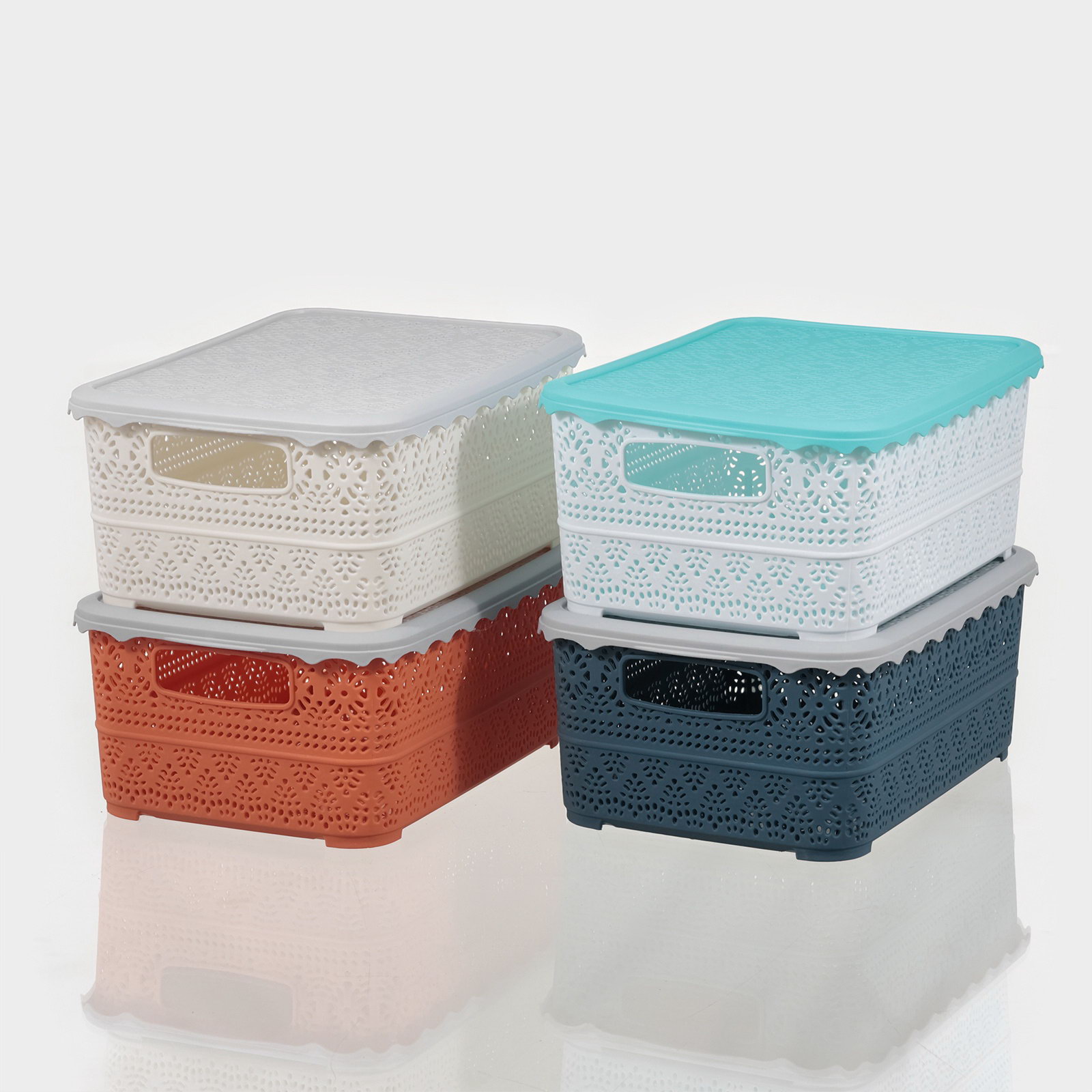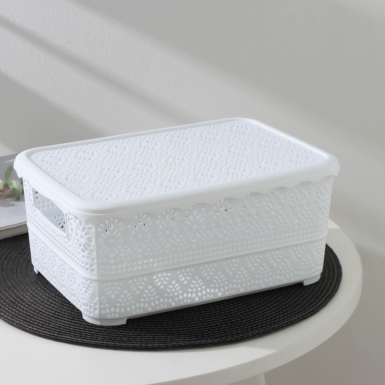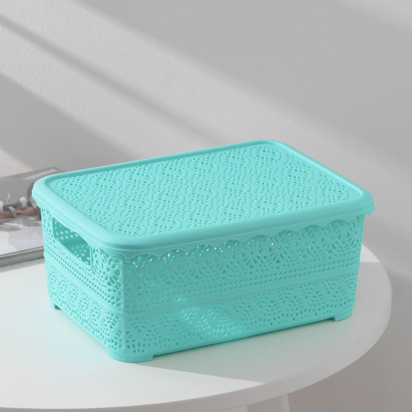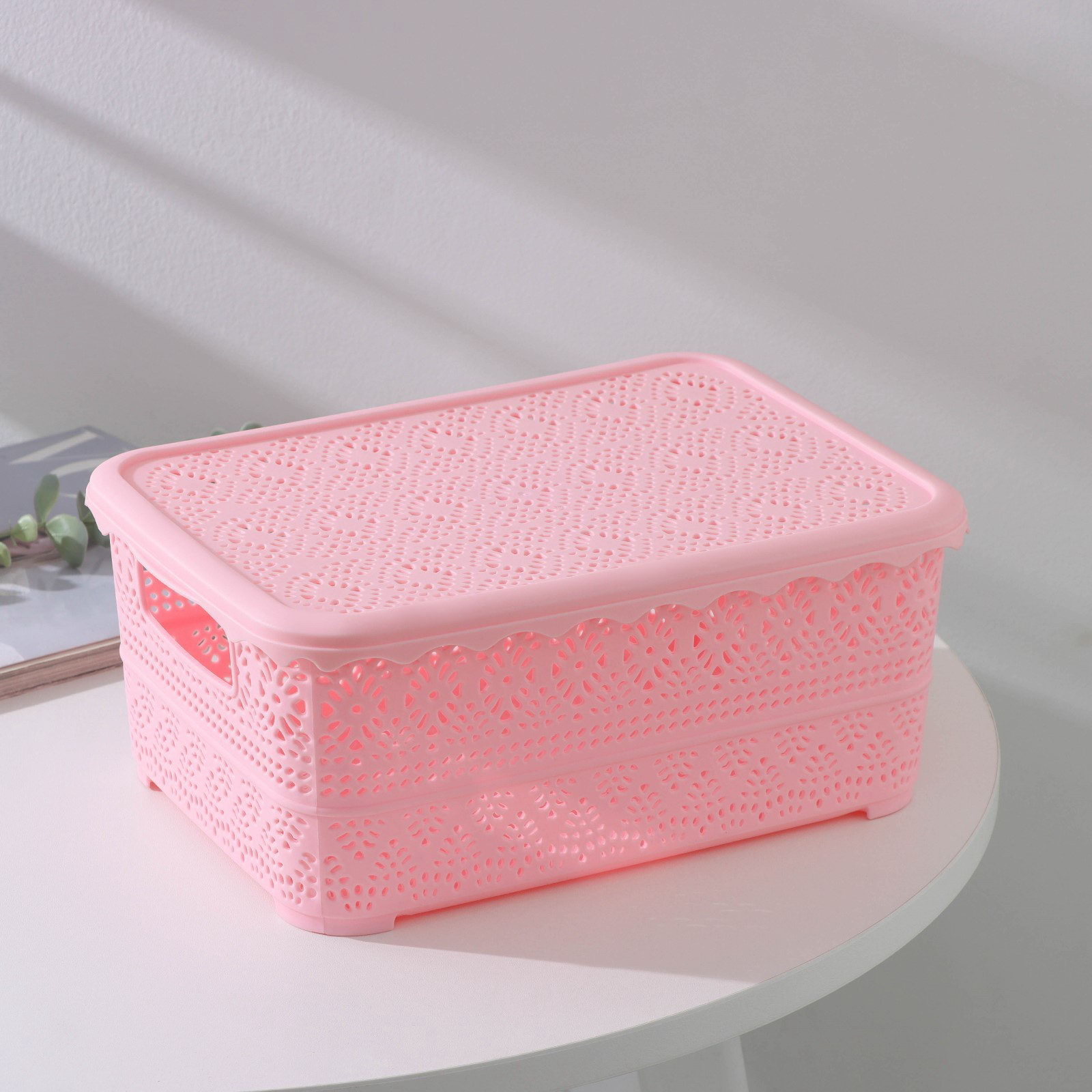 Контейнер для хранения с крышкой "Ажур", пластик, 26x19x11.5 см, МИКС, 19x27x11.5 см., Китай