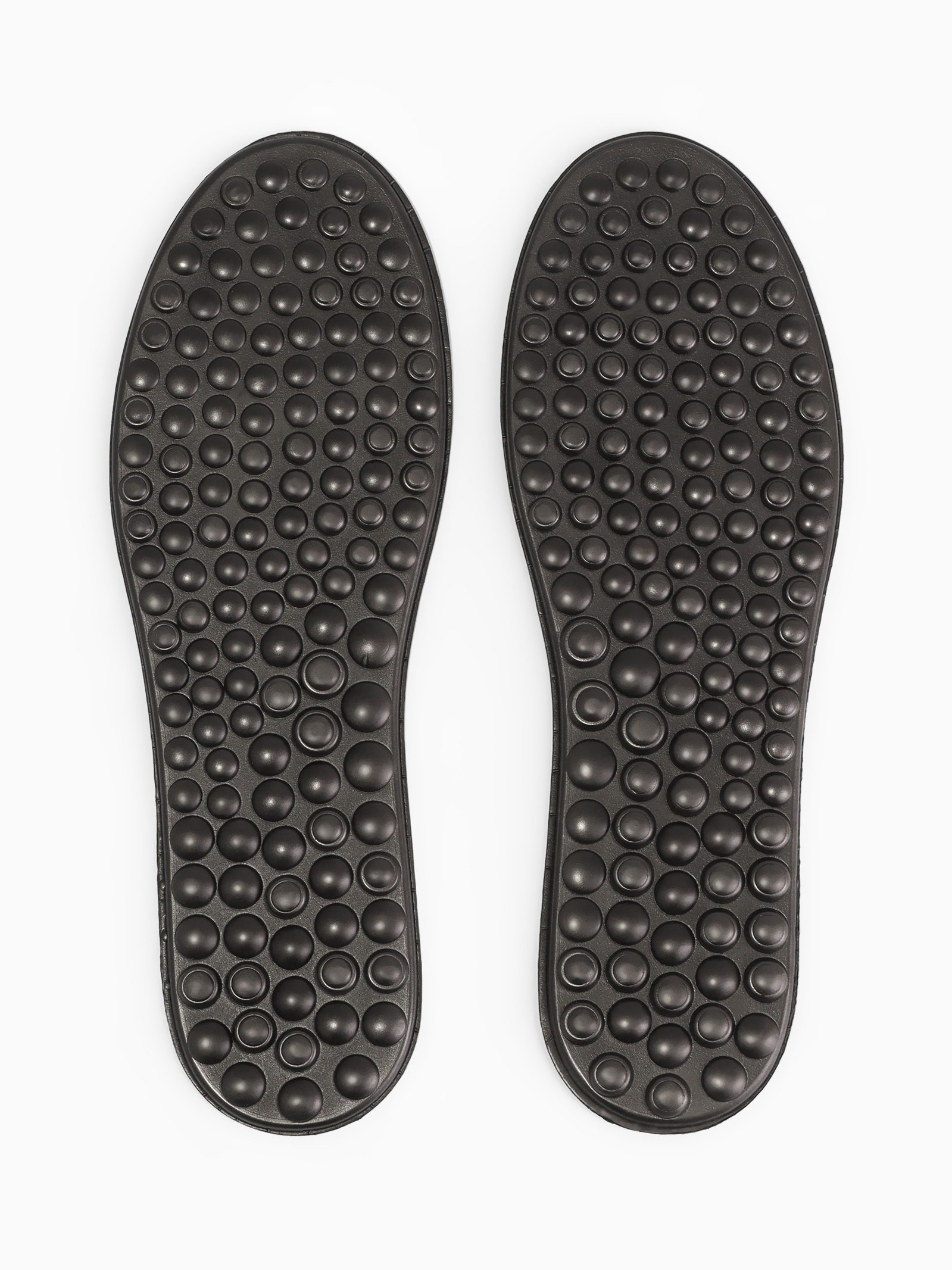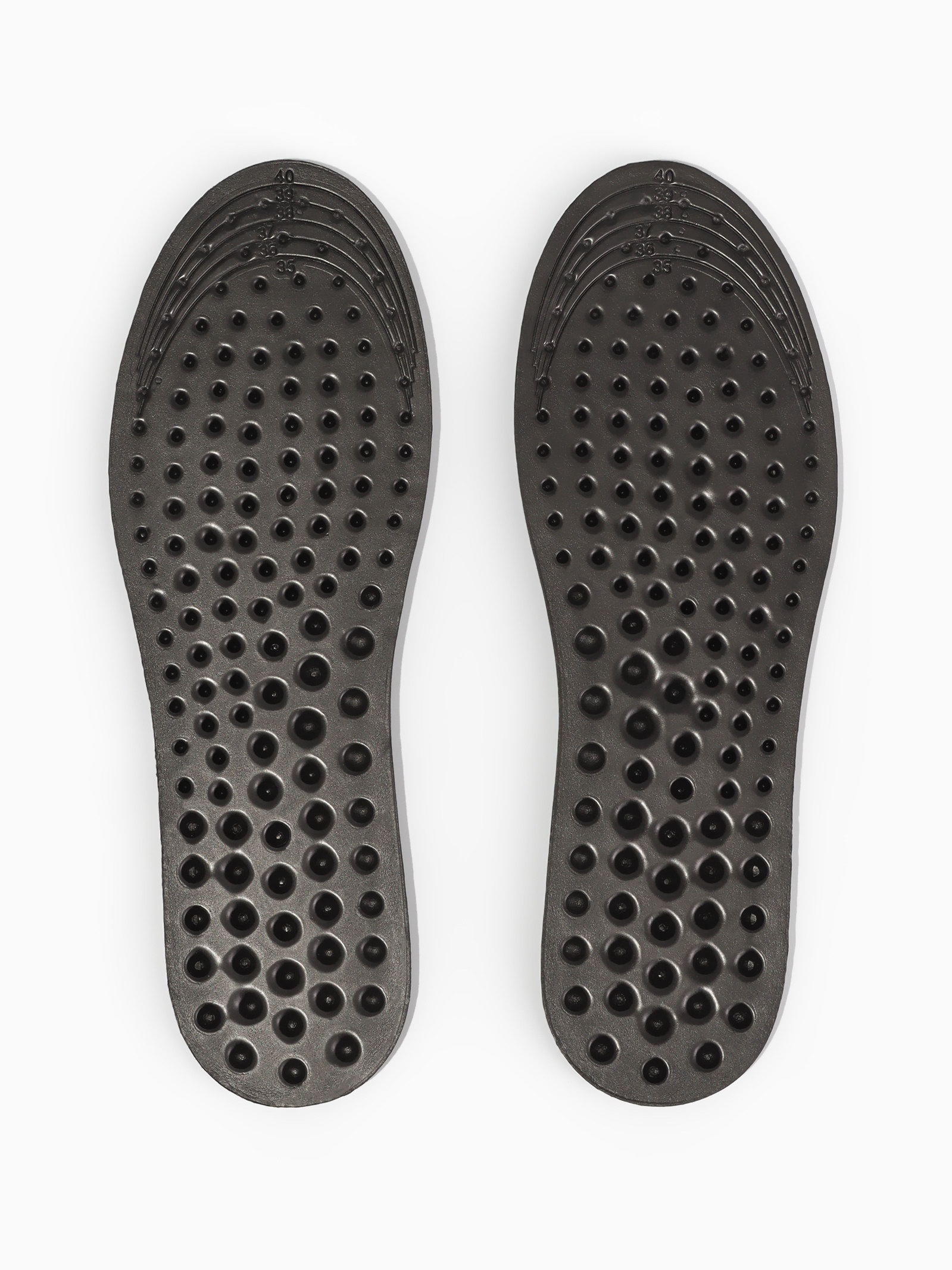Забота в каждом шаге Рельефная поверхность стелек мягко воздействует на активные точки стопы во время ходьбы. Это помогает снять напряжение, улучшить кровообращение и снизить чувство усталости. Эластичный материал EVA обеспечивает амортизацию, гася ударную нагрузку на суставы. Просто поместите стельки в вашу повседневную обувь и ощутите разницу с первой же прогулки. | ||