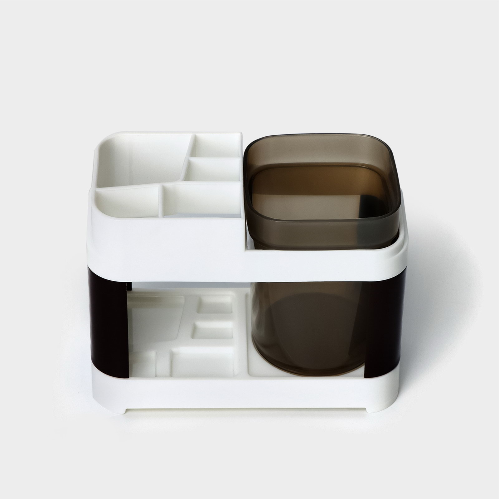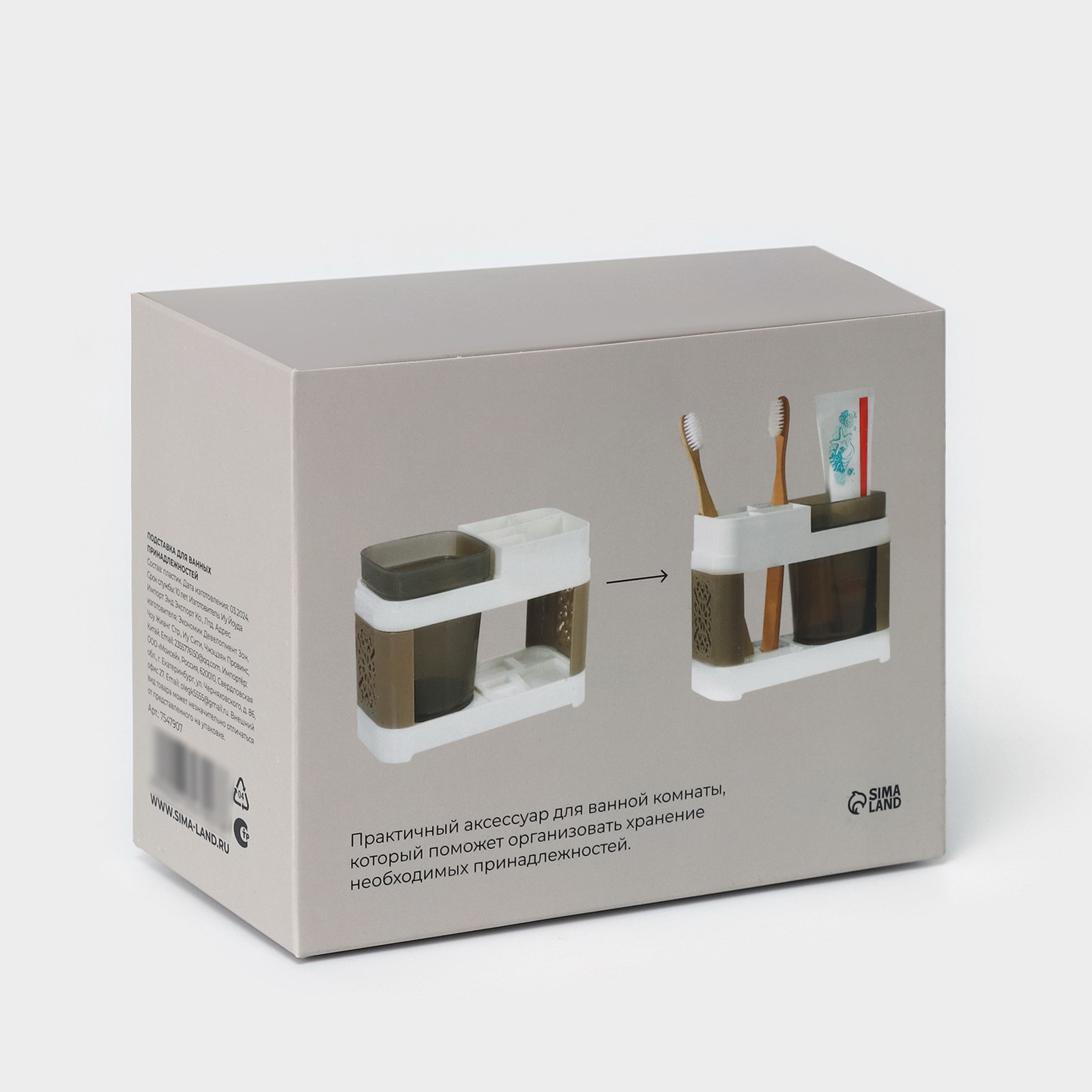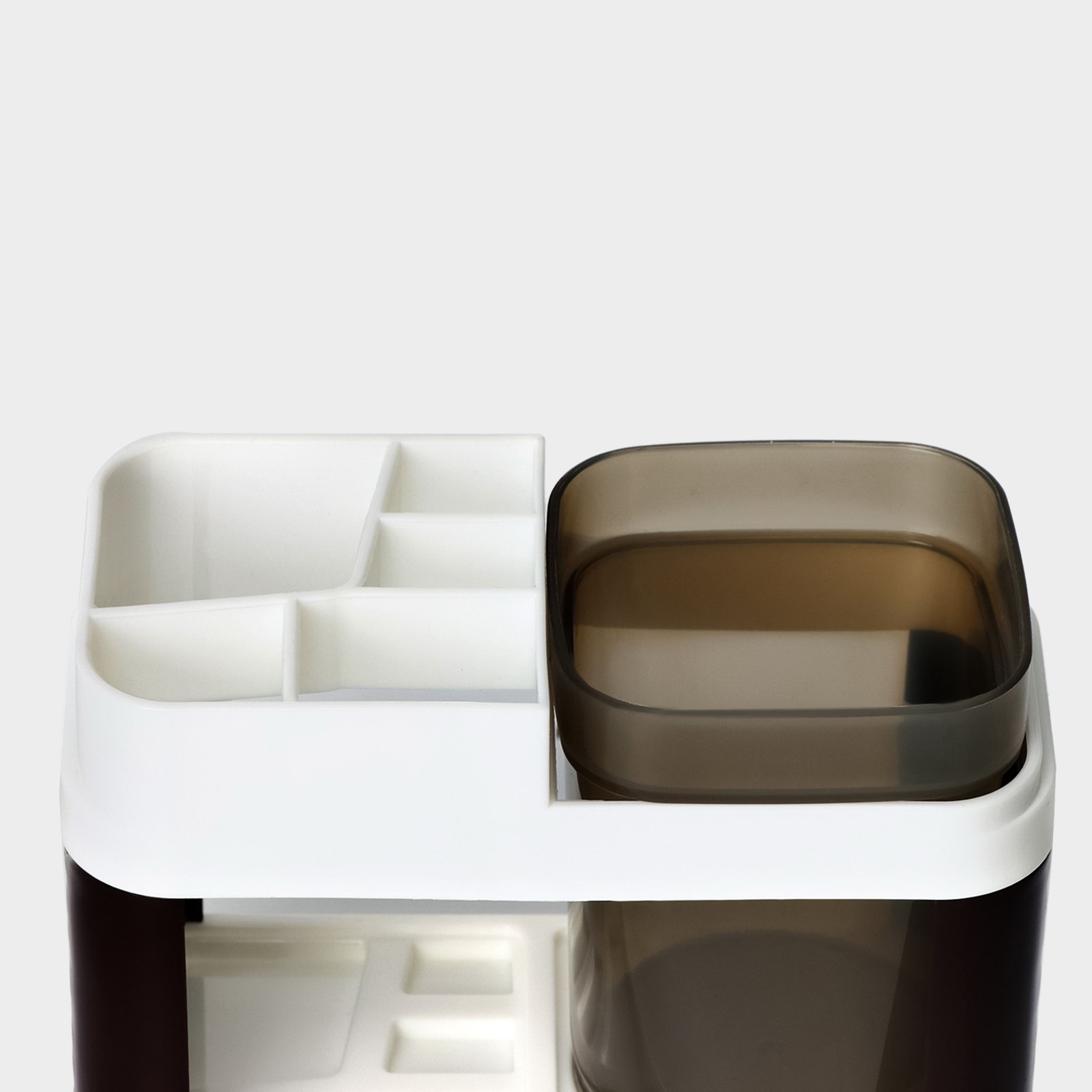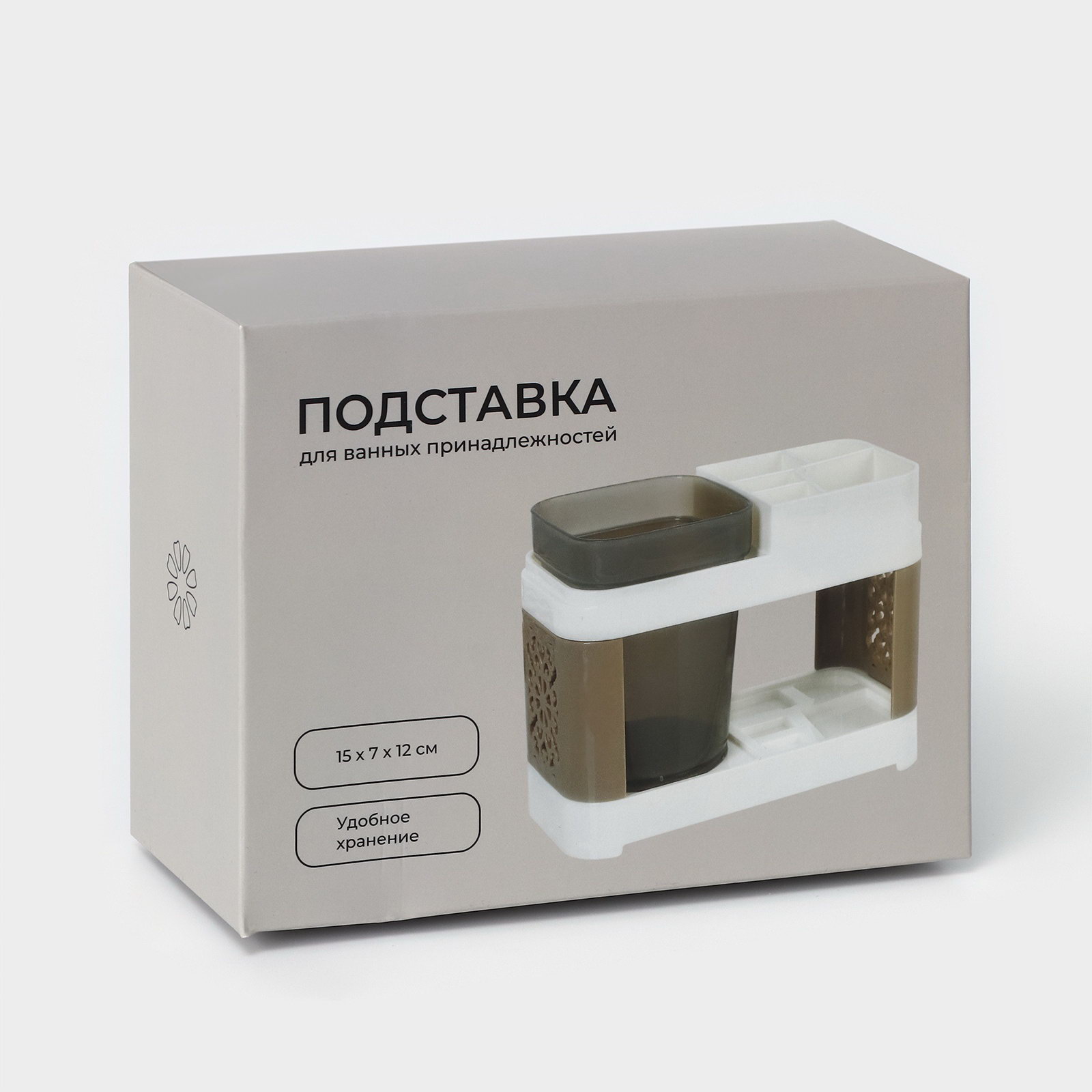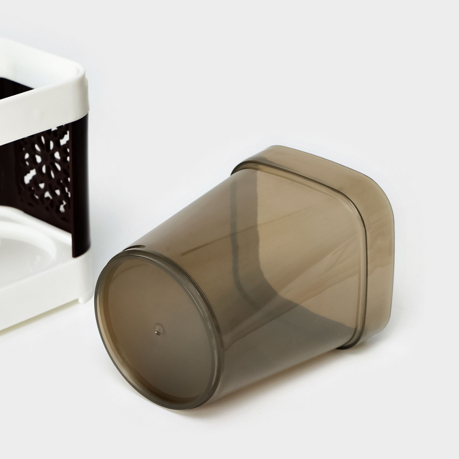 Подставка для зубных щёток и пасты со стаканом, 15x7x12 см, цвет коричневый, 7.5x15x12 см., Китай