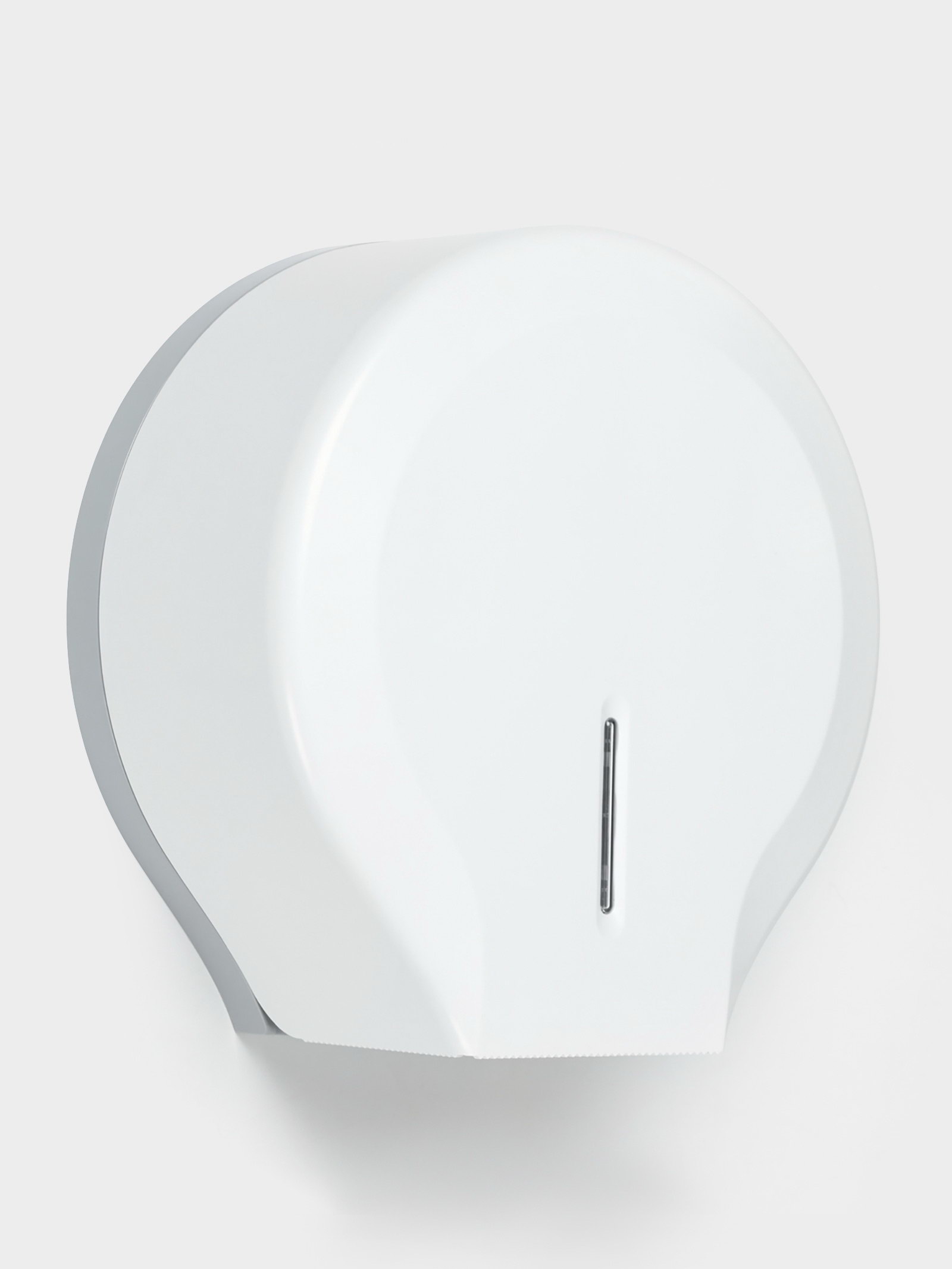 Размер упаковки: 15 x 29 x 28 см. tnved: 3925908000 Вид крепления: Саморезы Тип: Диспенсер Цвет: Белый Крепления входят в комплект: Да С ключом: Да Количество отделений: 1 Дисплей: Нет Бесконтактный: Нет Вид установки: Настенный (навесной) Тип питания: Без источника питания Назначение: Для туалетной бумаги Механизм управления: Ручной Вид: В рулонах Диспенсерная система: Неприменима Настенный диспенсер для туалетной бумаги с втулкой 4 см Лаконичное белое решение для поддержания чистоты и гигиены. Комплектуется креплениями и ключом для быстрого монтажа. Универсальная конструкция подходит для стандартных и джамбо рулонов. Белый глянцевый пластик легко очищается и устойчив к влаге. Преимущества