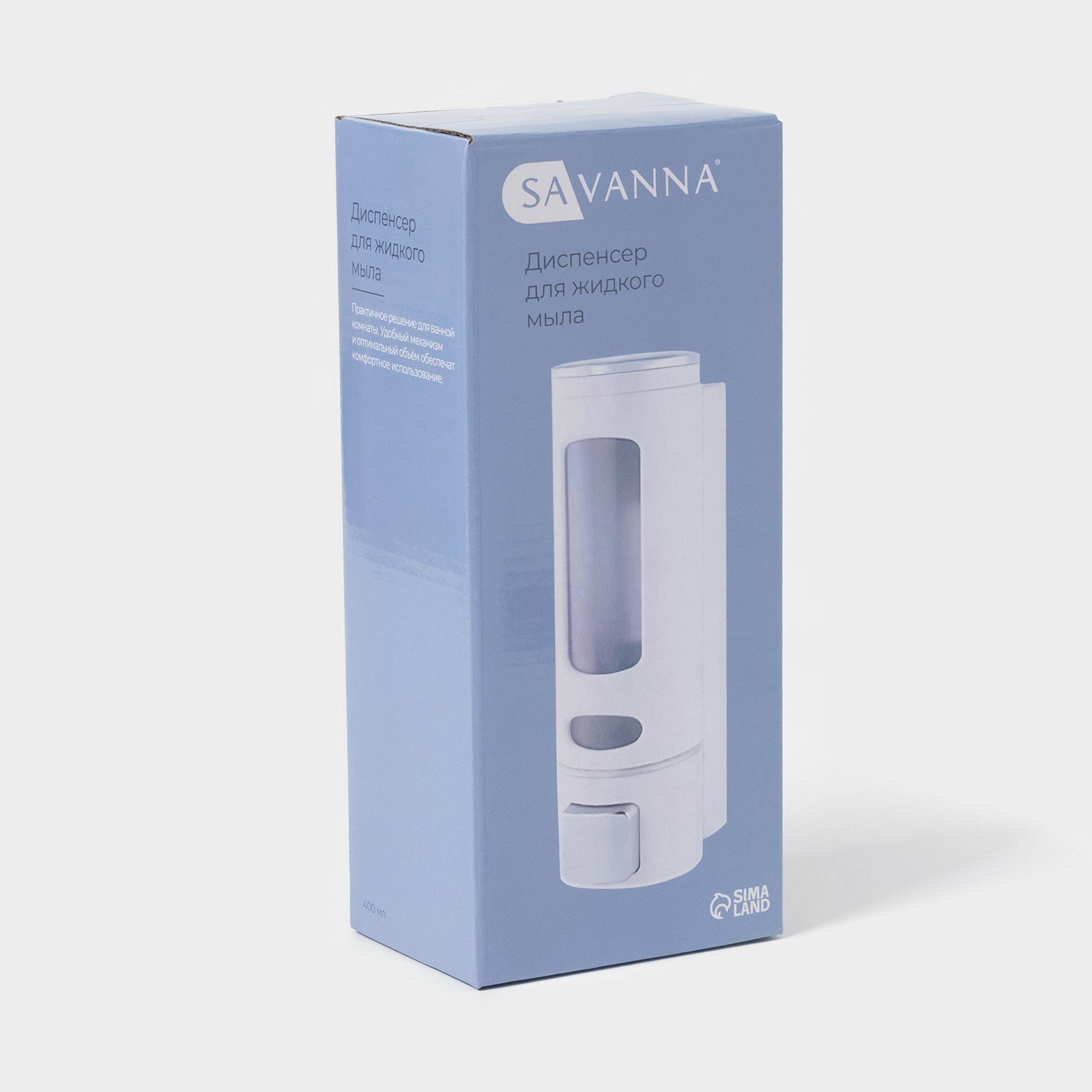 Диспенсер для жидкого мыла механический, 400 мл, металл, белый, 8.5x21.5x6.5 см., SAVANNA, Китай