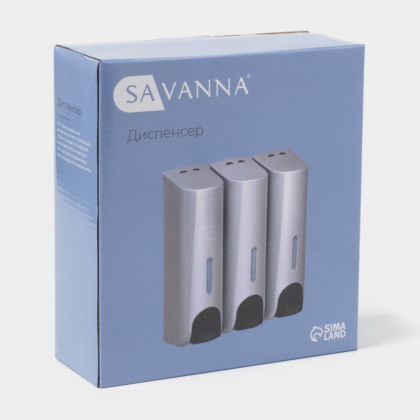Диспенсер для мыла механический, 3 отсека по 350 мл: шампунь, кондиционер, гель, серый, 21.5x19.7x7.5 см., SAVANNA, КИТАЙ
