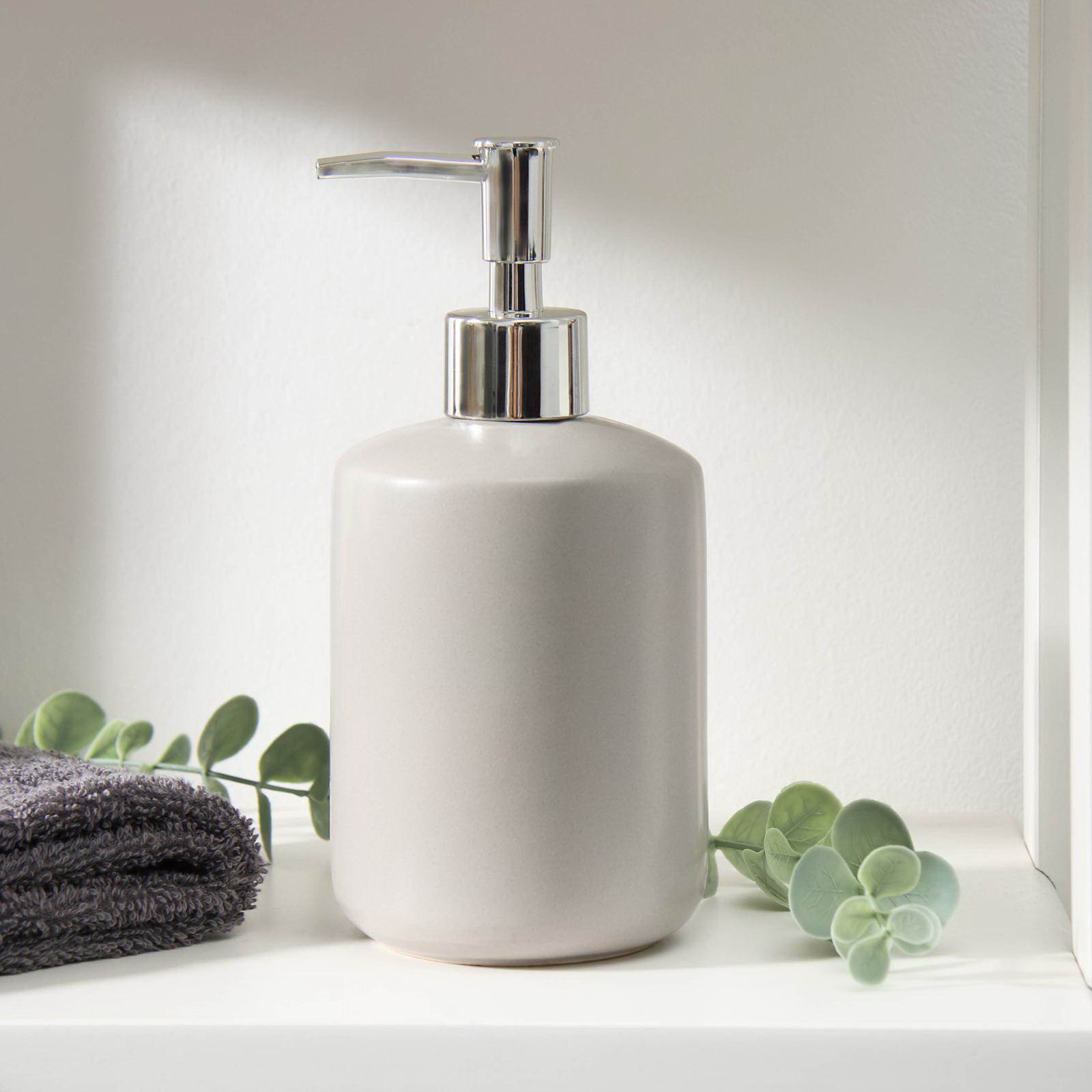 Дозатор для жидкого мыла "Тотем", 330 мл, цвет серый, 9.5x9.5x19.5 см., Китай