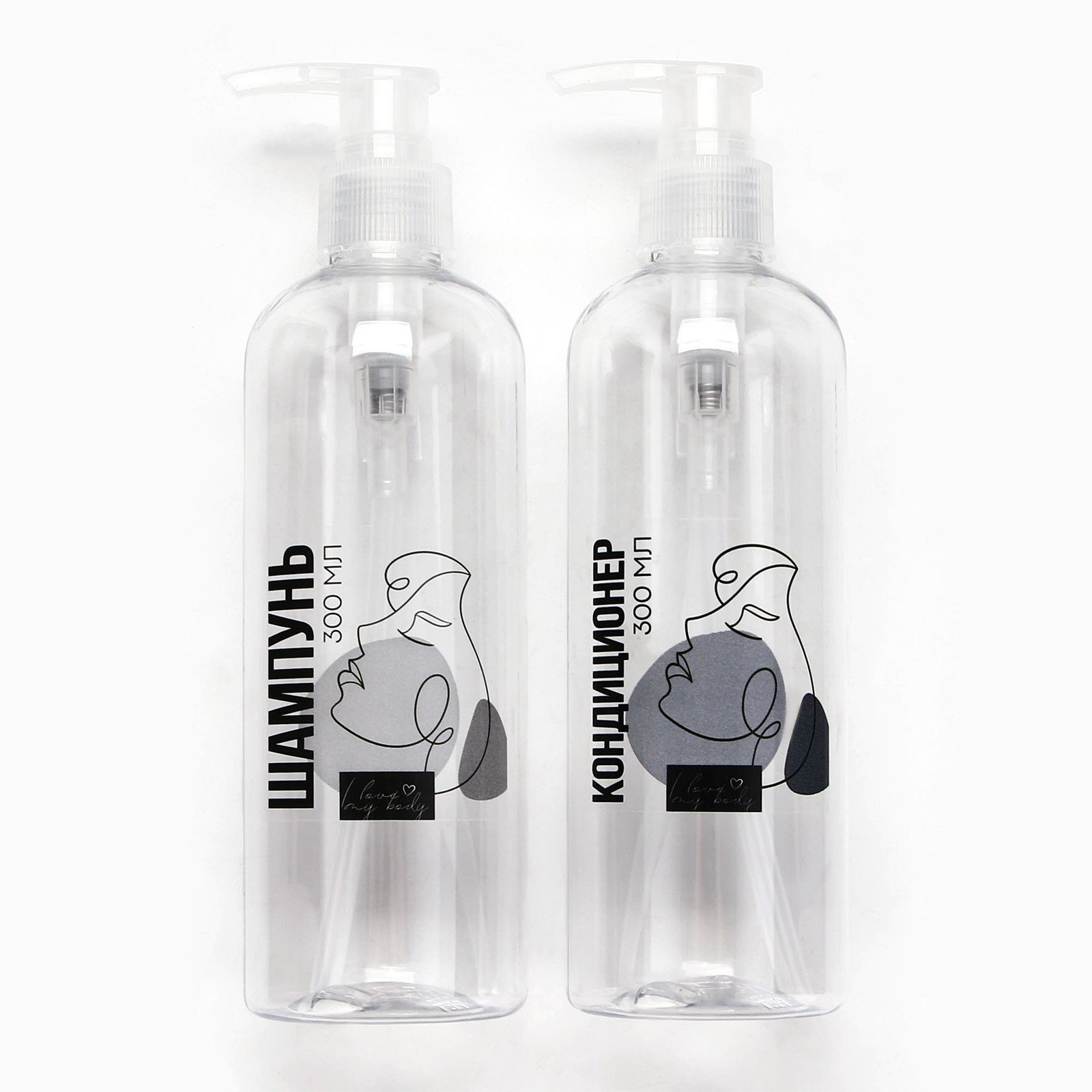Дозатор для шампуня и кондиционера I love my body, 300 мл, 2 шт., 5.5x5.5x18.4 см., Сима-ленд, Китай