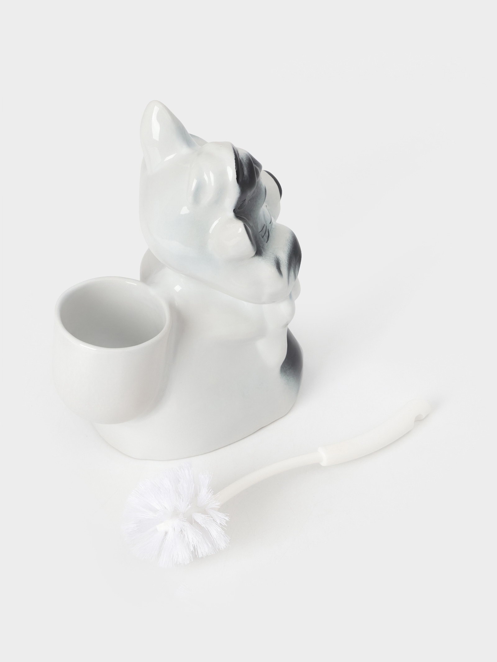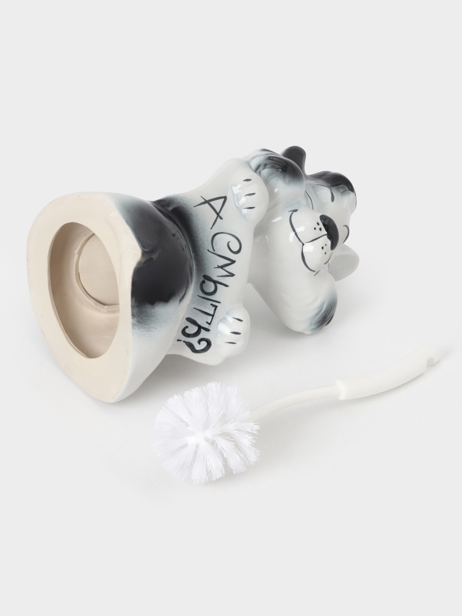 Ёршик для унитаза с подставкой "Кот-хулиган", фарфор, белый, Хорошие сувениры, Россия