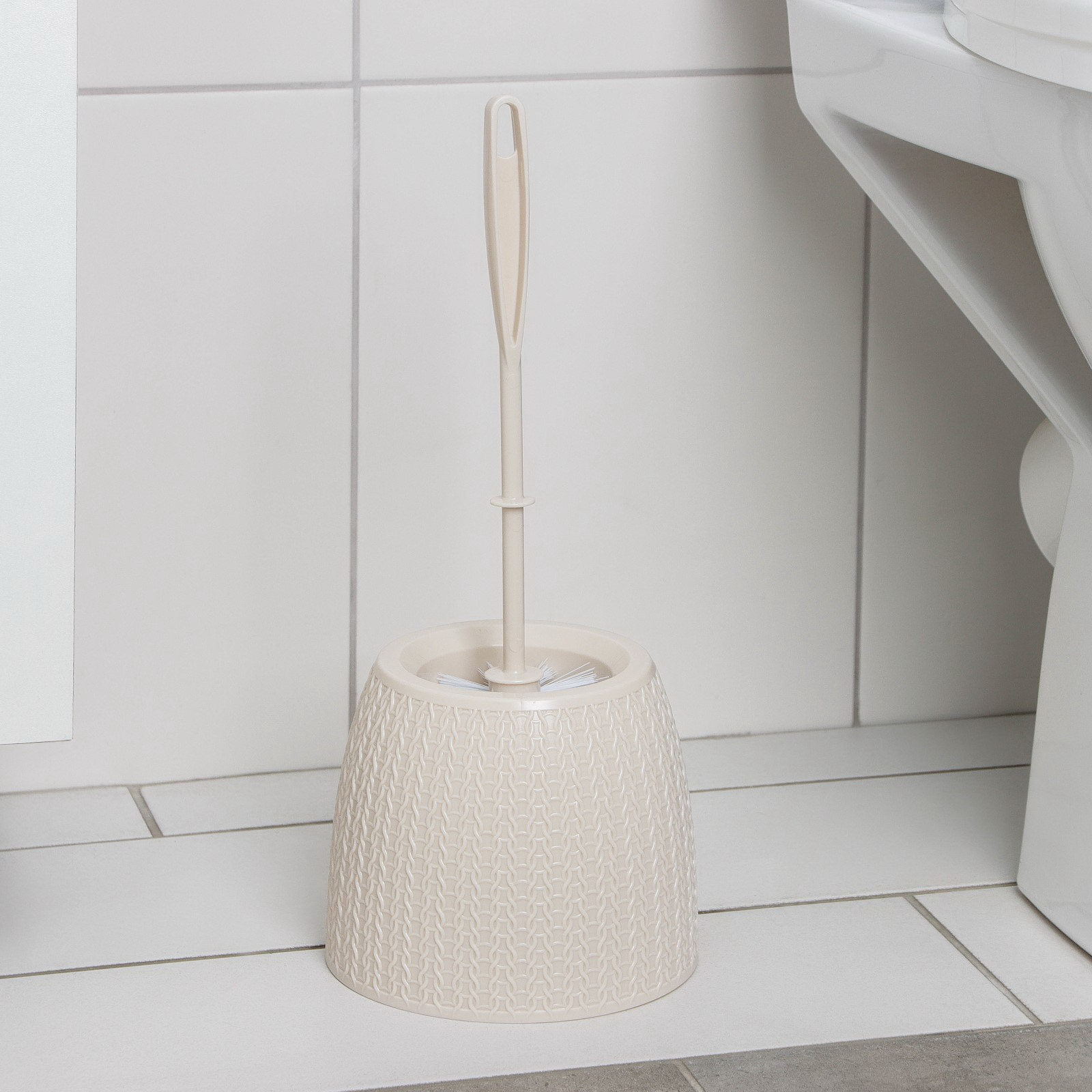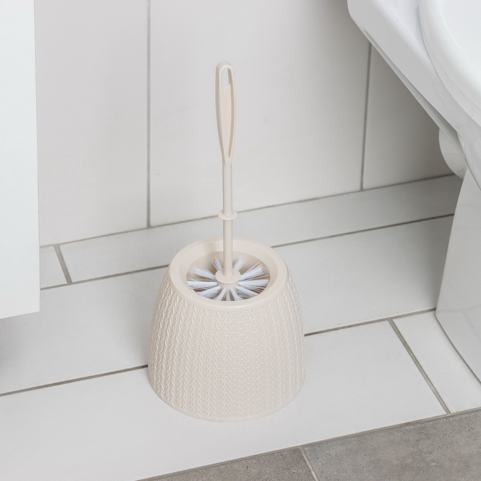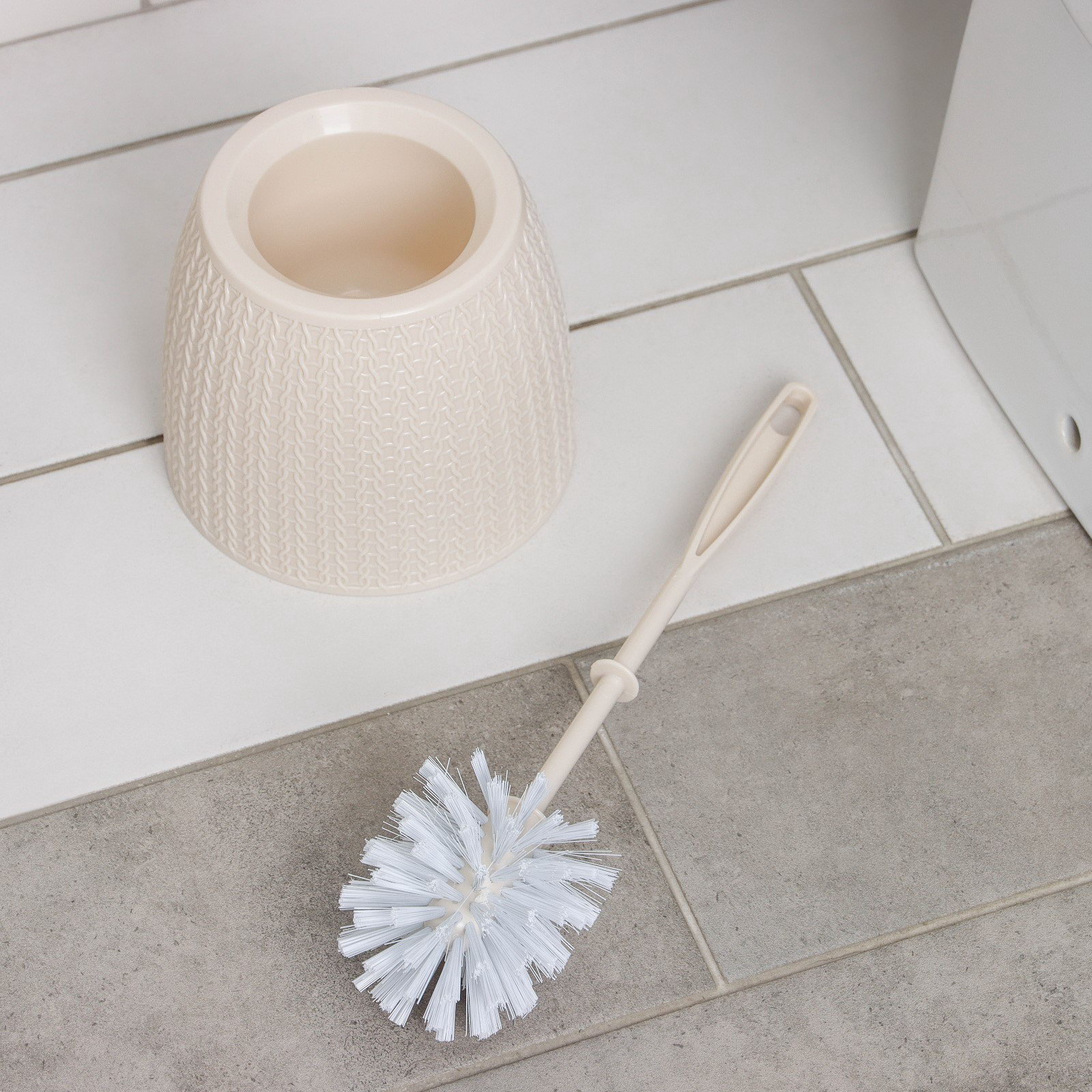 Ёршик для унитаза "Вязаное плетение", 15x15x37 см, с подставкой, бежевый, 15x15x37 см., Альтернатива, Россия