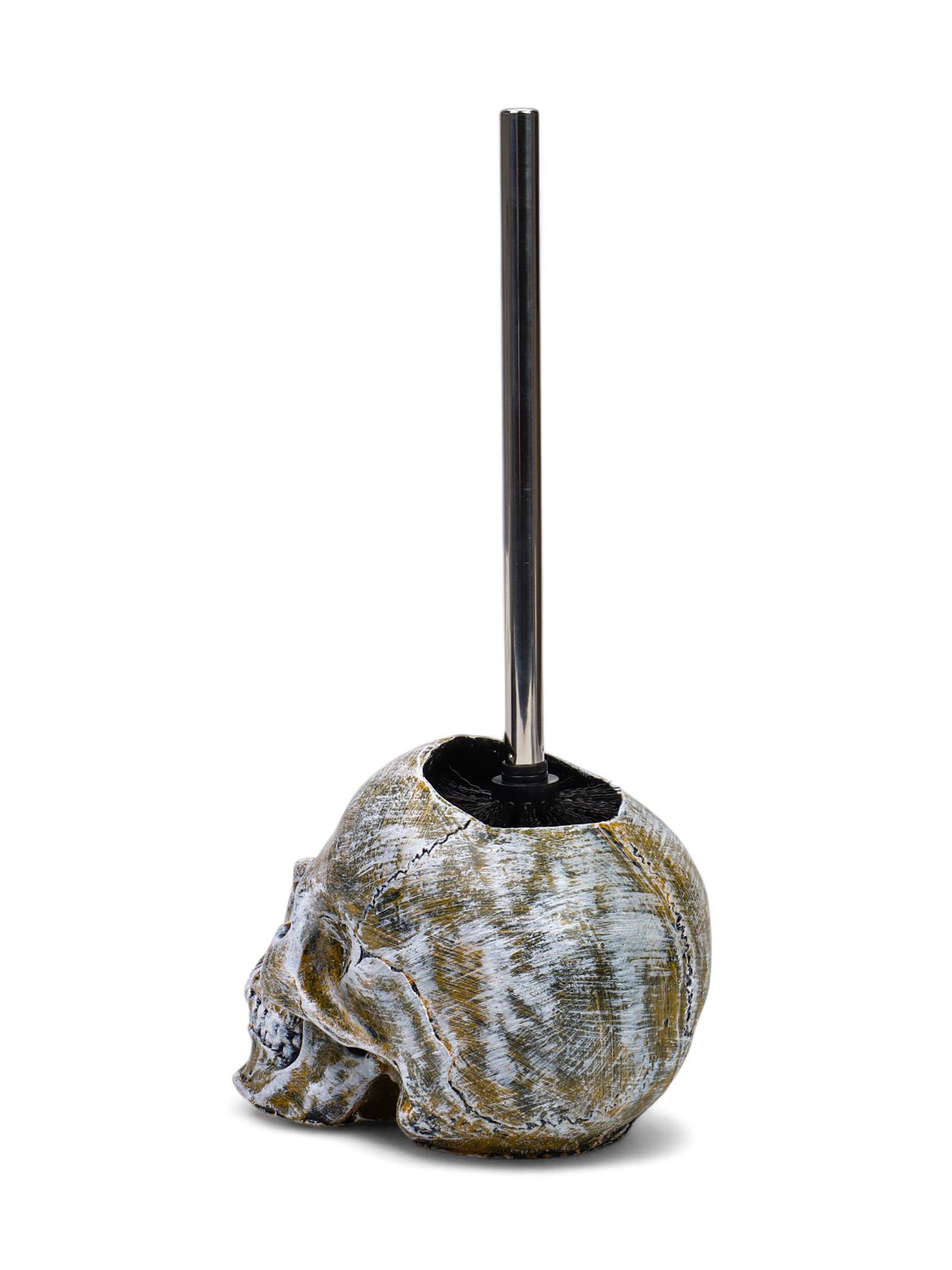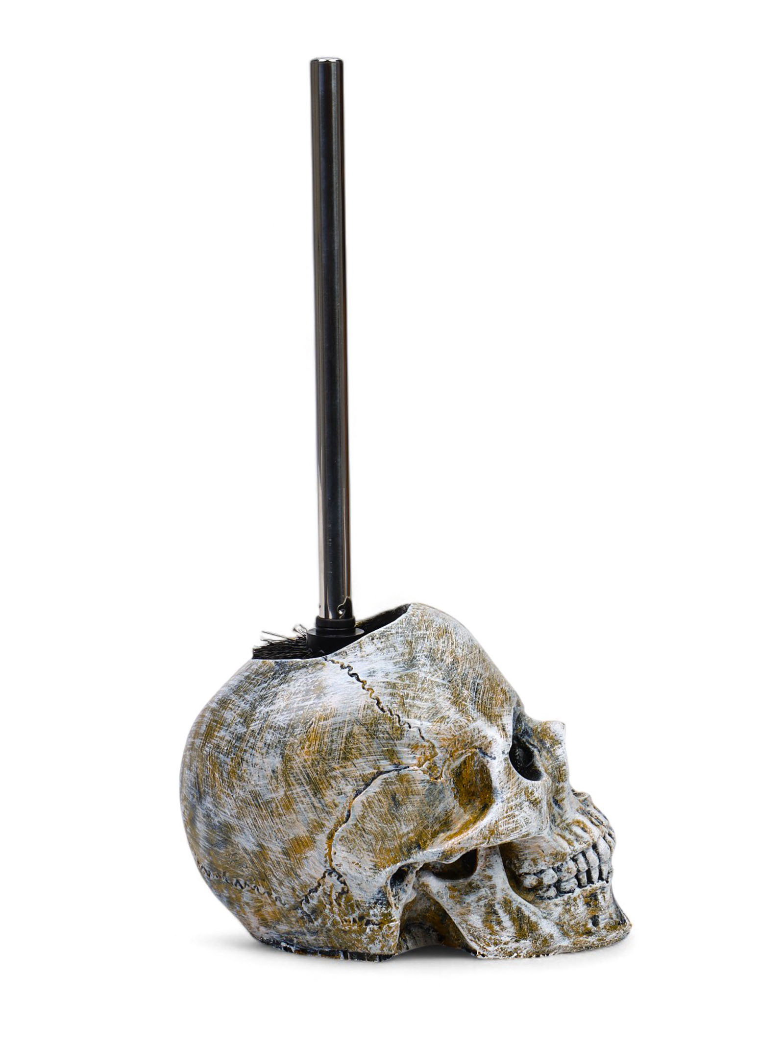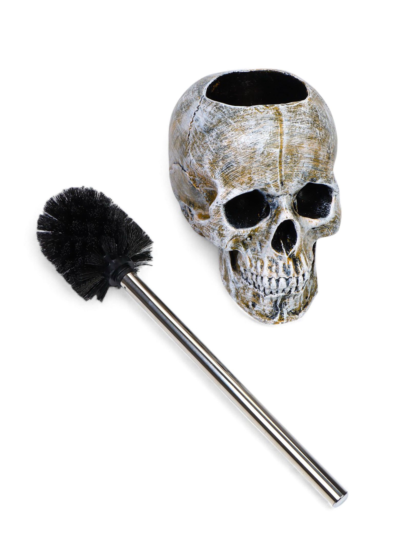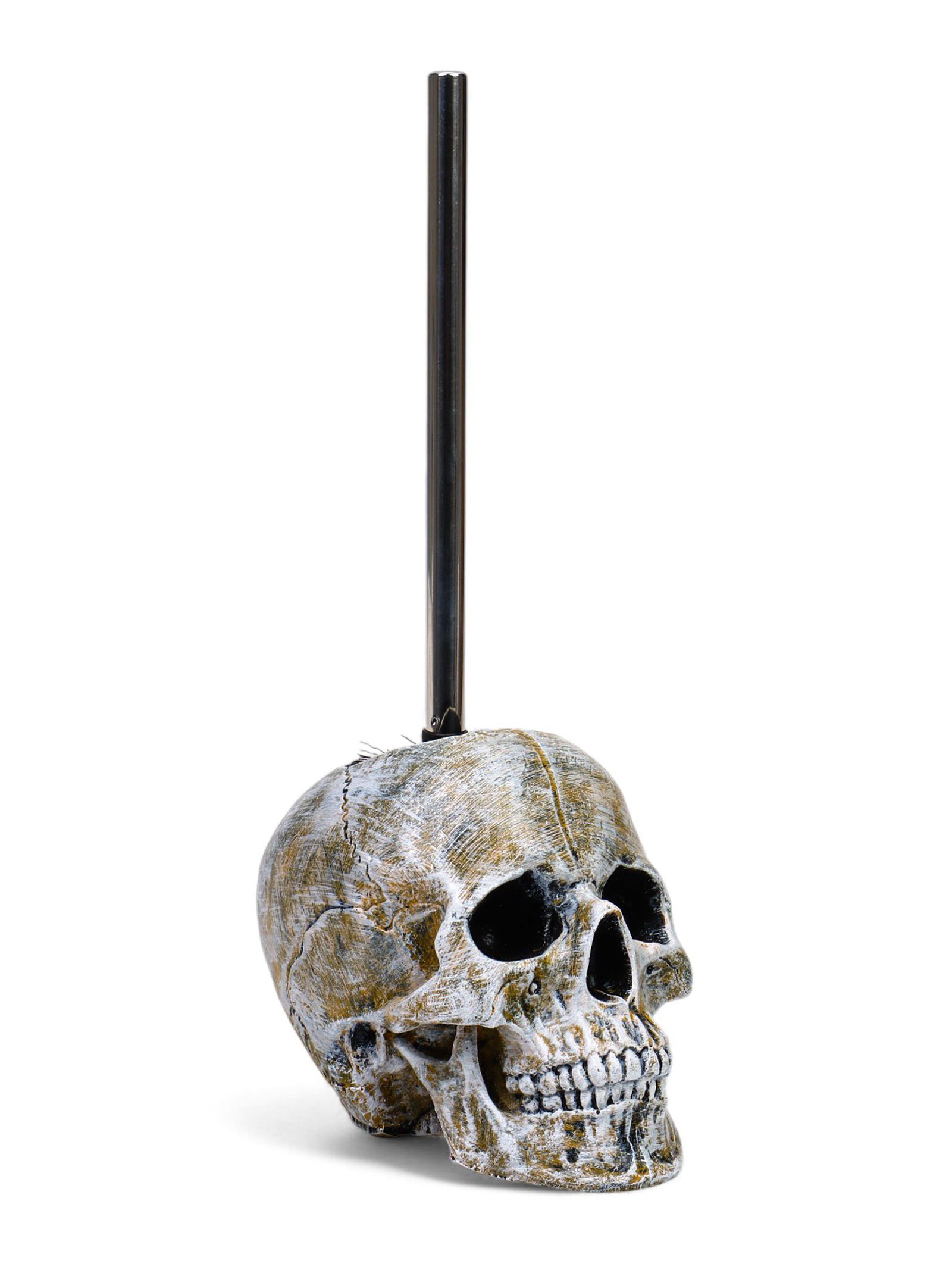 Ёршик для унитаза с подставкой "Череп", стальная ручка, 16x15x22 см, белый, Хорошие сувениры, Россия