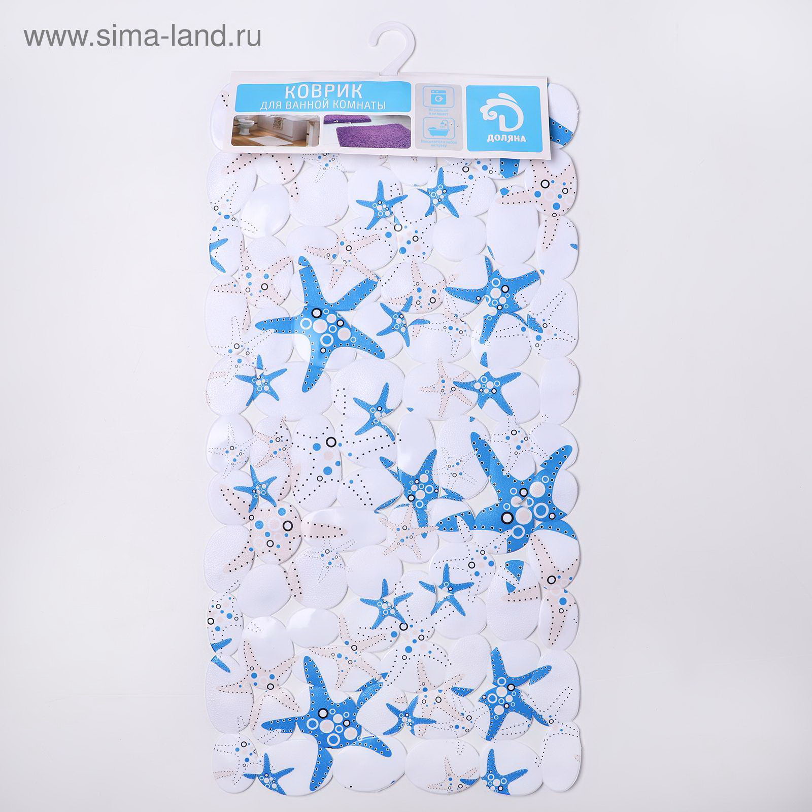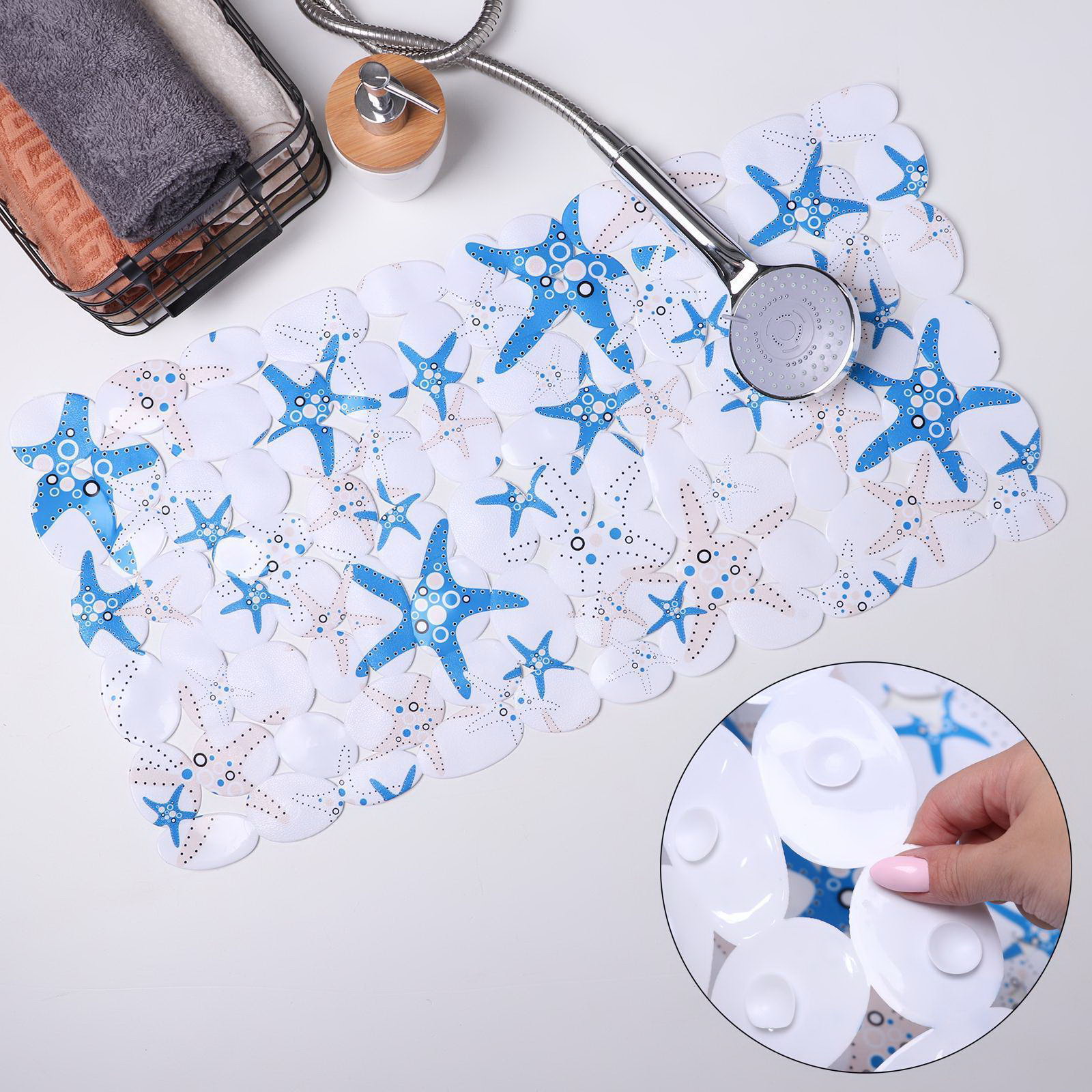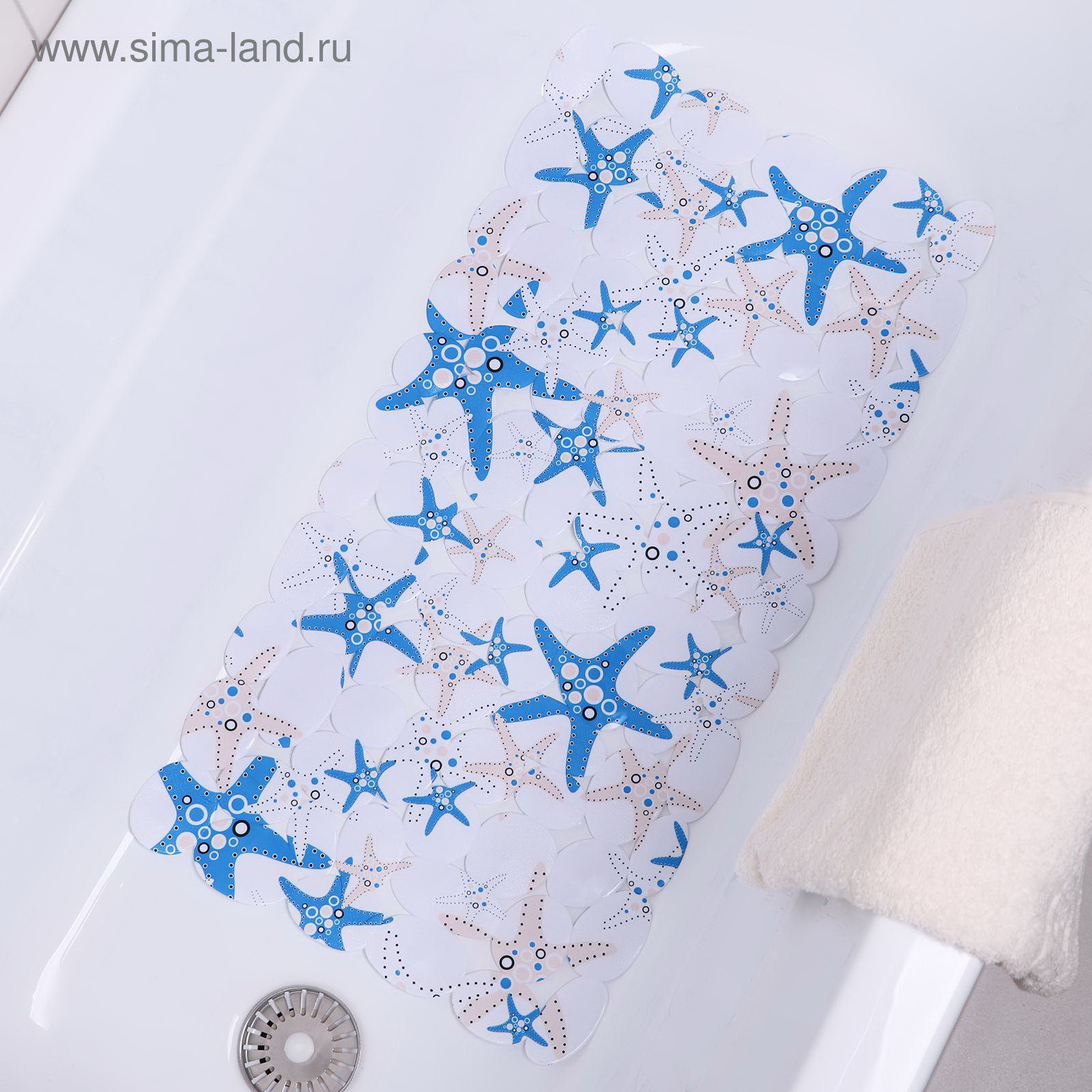 Коврик противоскользящий в ванну на присосках "Морские звёзды", 35x65 см, 35x65x0.3 см., Доляна, Китай