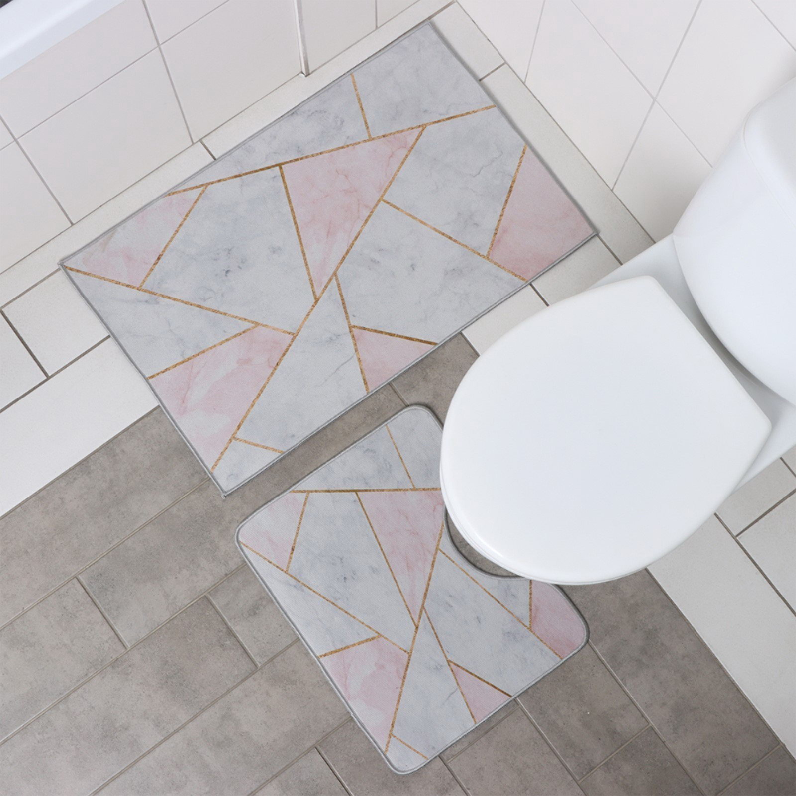 Коврики для ванной и туалета "Гео", 2 шт: 50x80 см, 40x50 см, цвет розовый, 50x80x1 см., Доляна, Китай