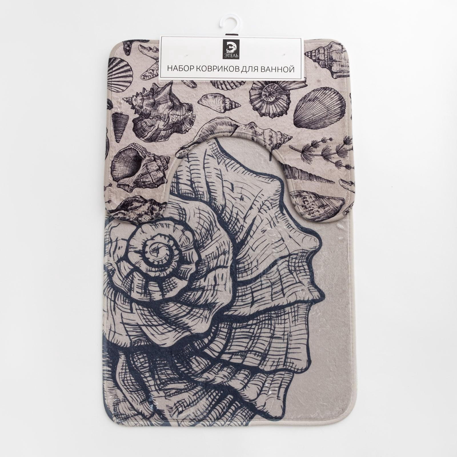 Набор ковриков для ванной "Marine life" 2 шт, 80х50 см, 50х40 см, велюр, 50x80 см., Этель, КИТАЙ