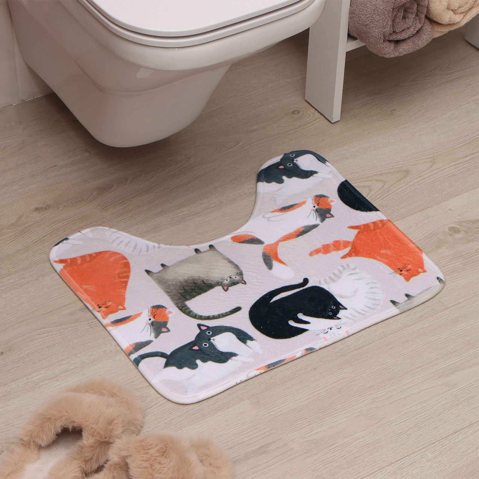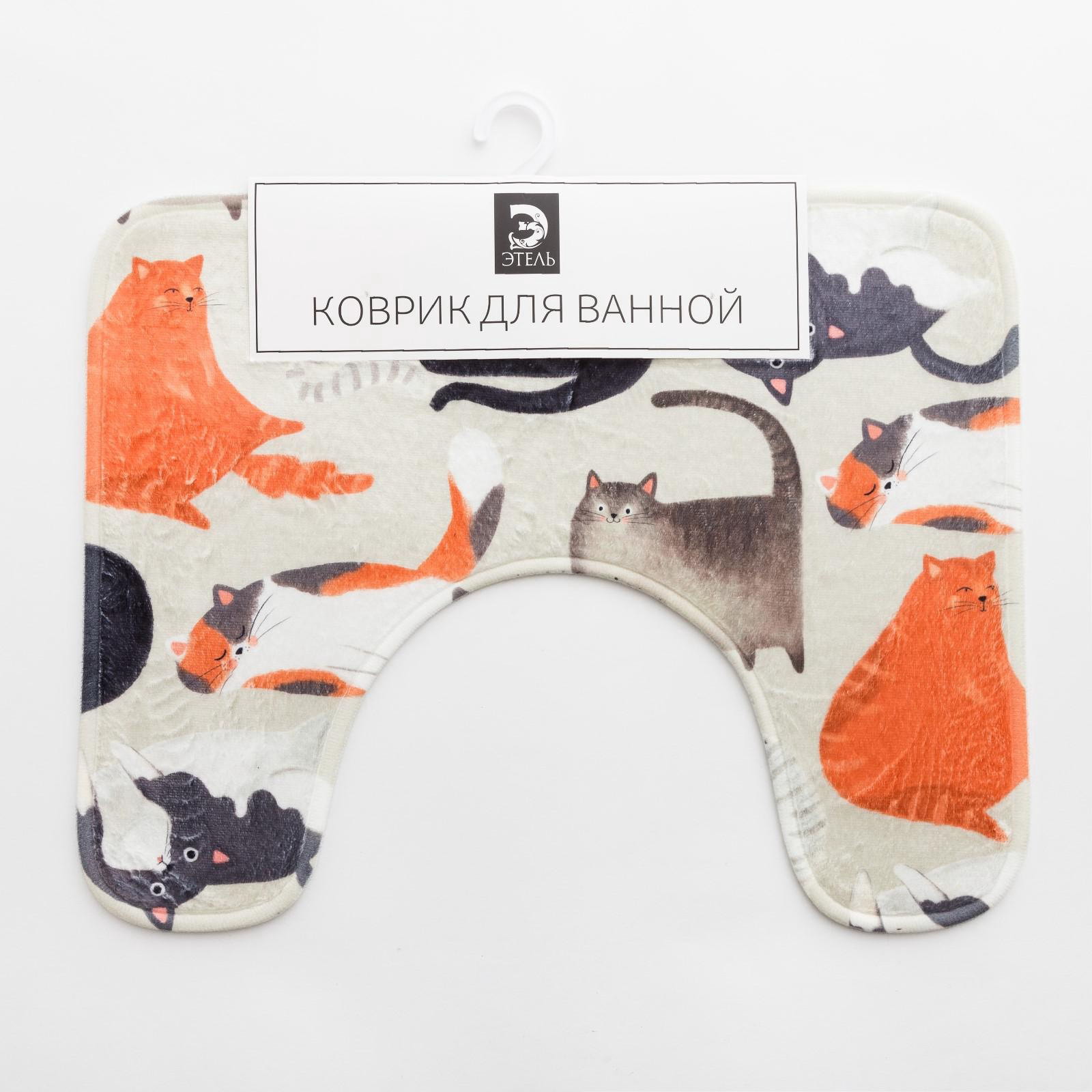 Коврик для ванной Этель "Котики", 50x40 см, велюр, 40x50 см., Доляна, Китай