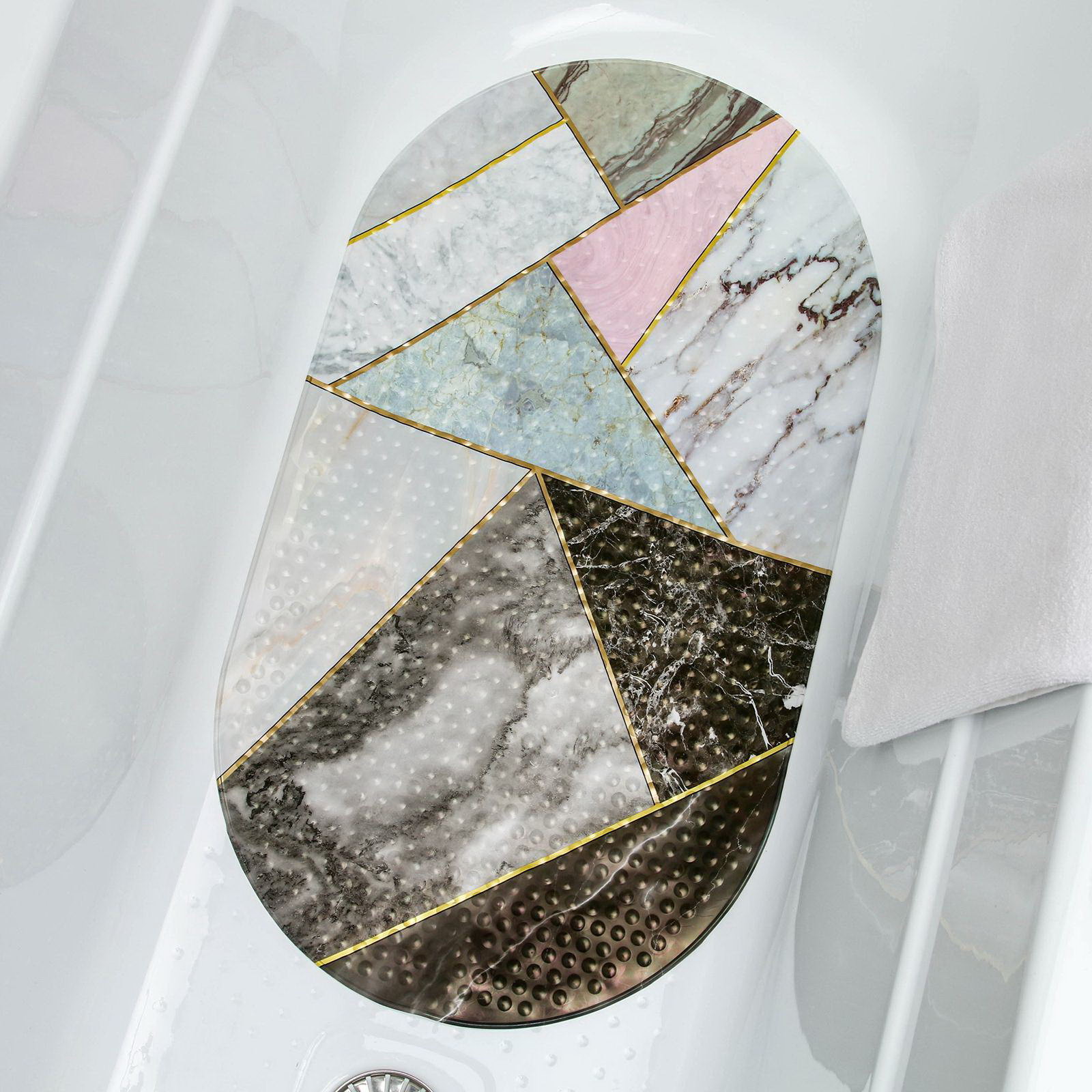 Коврик противоскользящий в ванну на присосках "Геометрика", 37.5x69 см, цвет розово-серый, 37.5x69 см., Доляна, Китай