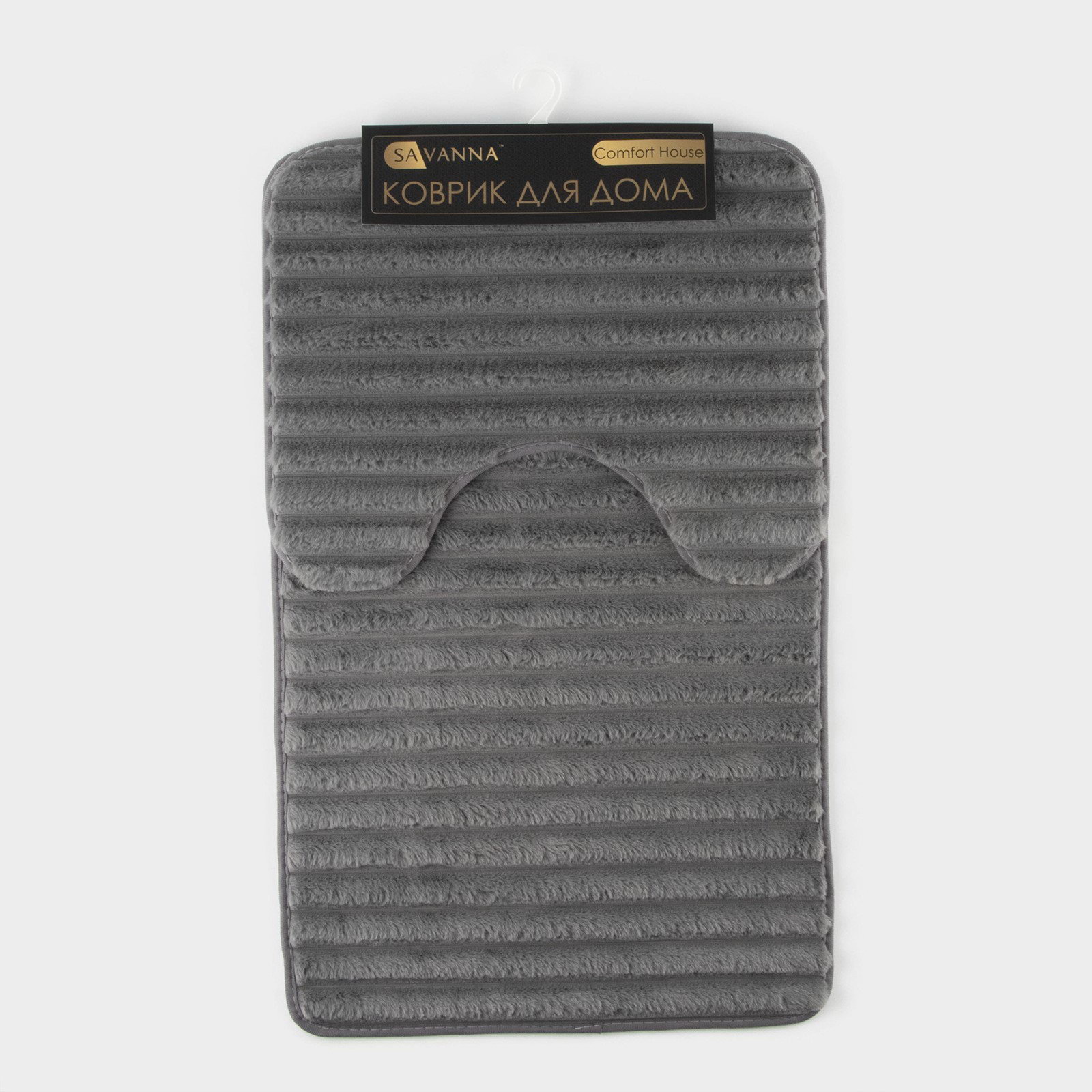 Коврики для ванной и туалета "Оливия", 2 шт., 40x50 см, 50x80 см, серые, 80x50x1.5 см., SAVANNA, Китай