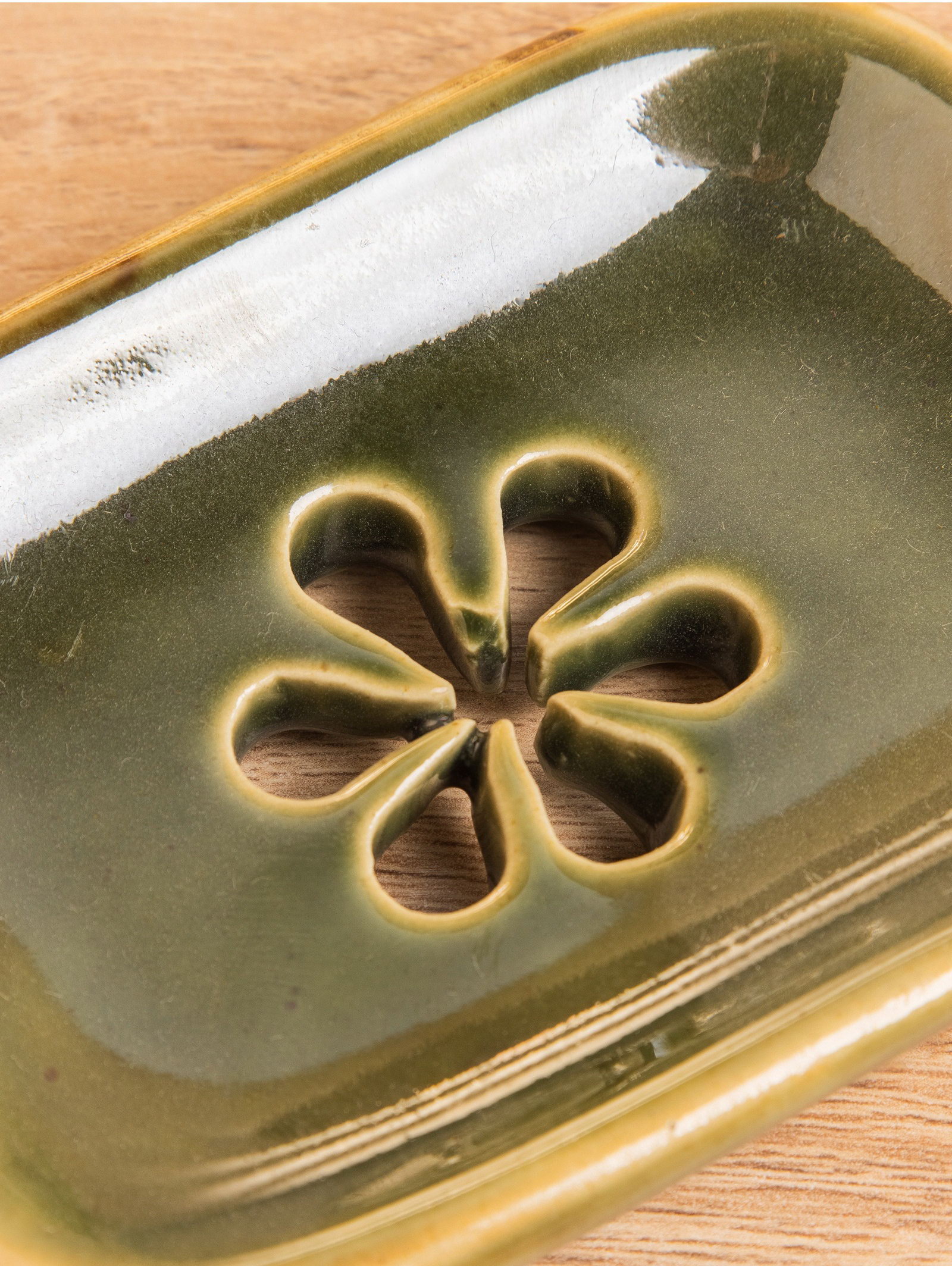 Мыльница "Цветок",12x8x2 см, керамика, зелёная, 8x12x2 см., Индонезия