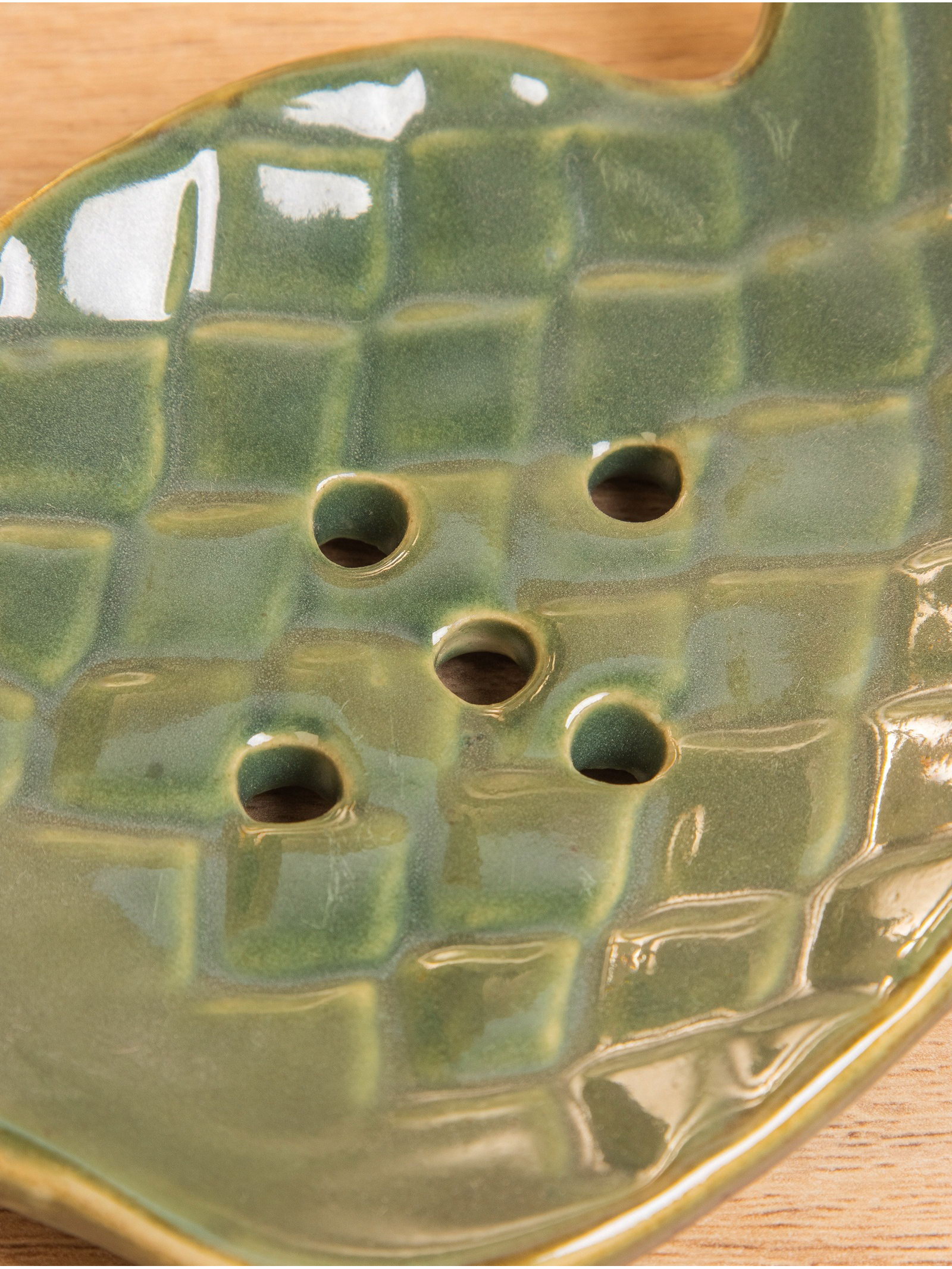 Мыльница "Ананас", 13.5x9x2 см, керамика, зелёно-коричневая, 9x13.5x2 см., Индонезия