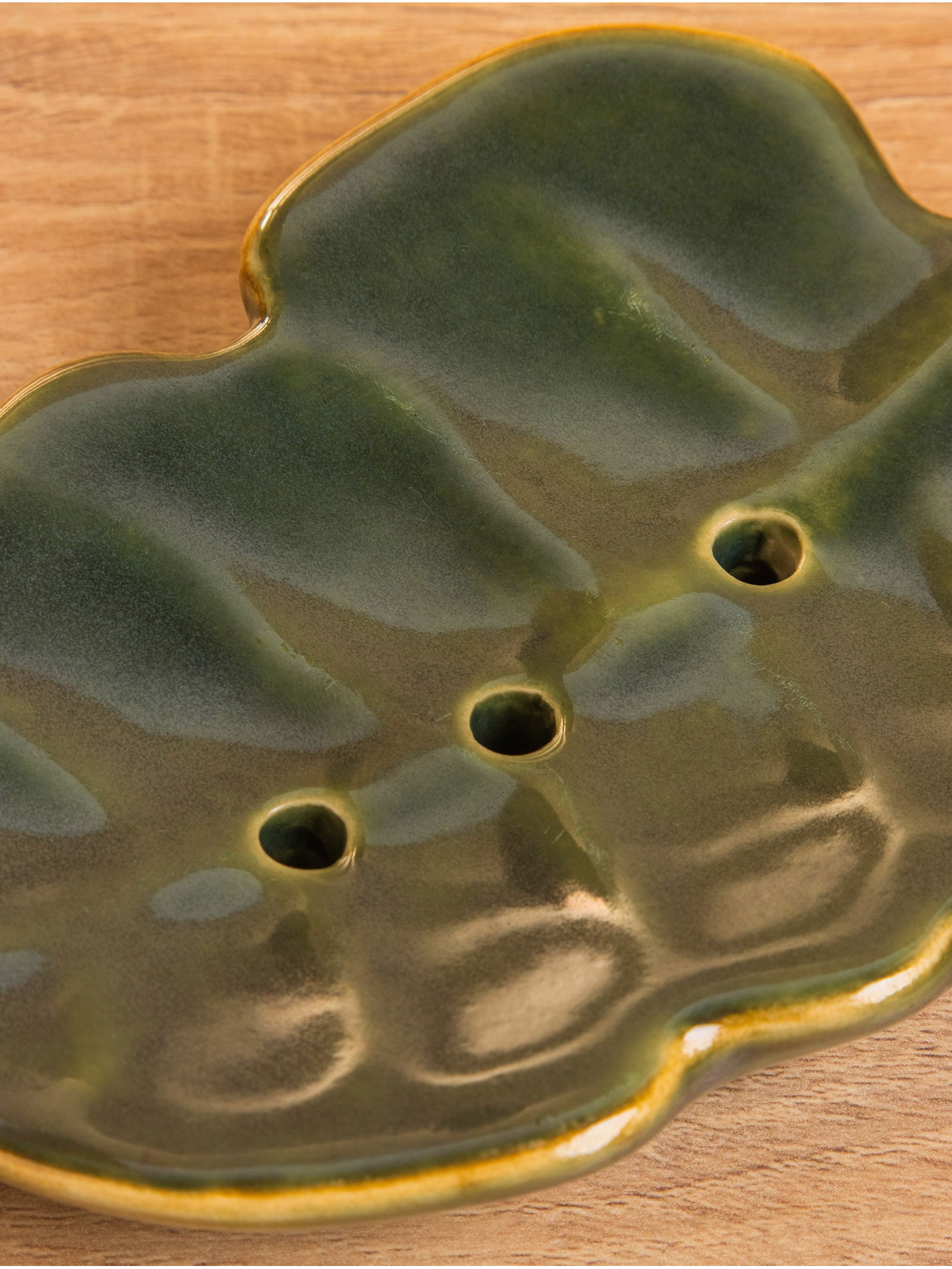Мыльница "Опавший лист", 15x9.5x2 см, керамика, зелёно-коричневая, 9.5x15x2 см., Индонезия