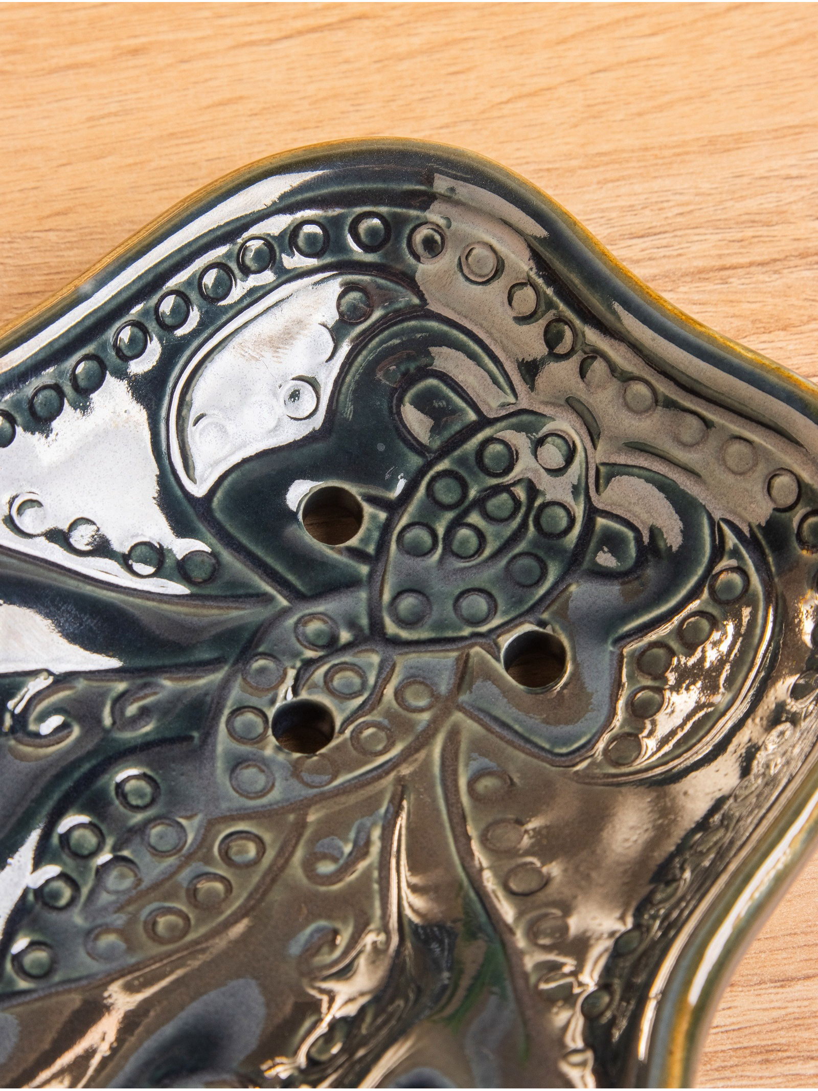 Мыльница "Рука Будды", 17x13x3 см, керамика, синяя, 10x16x2.5 см., Индонезия
