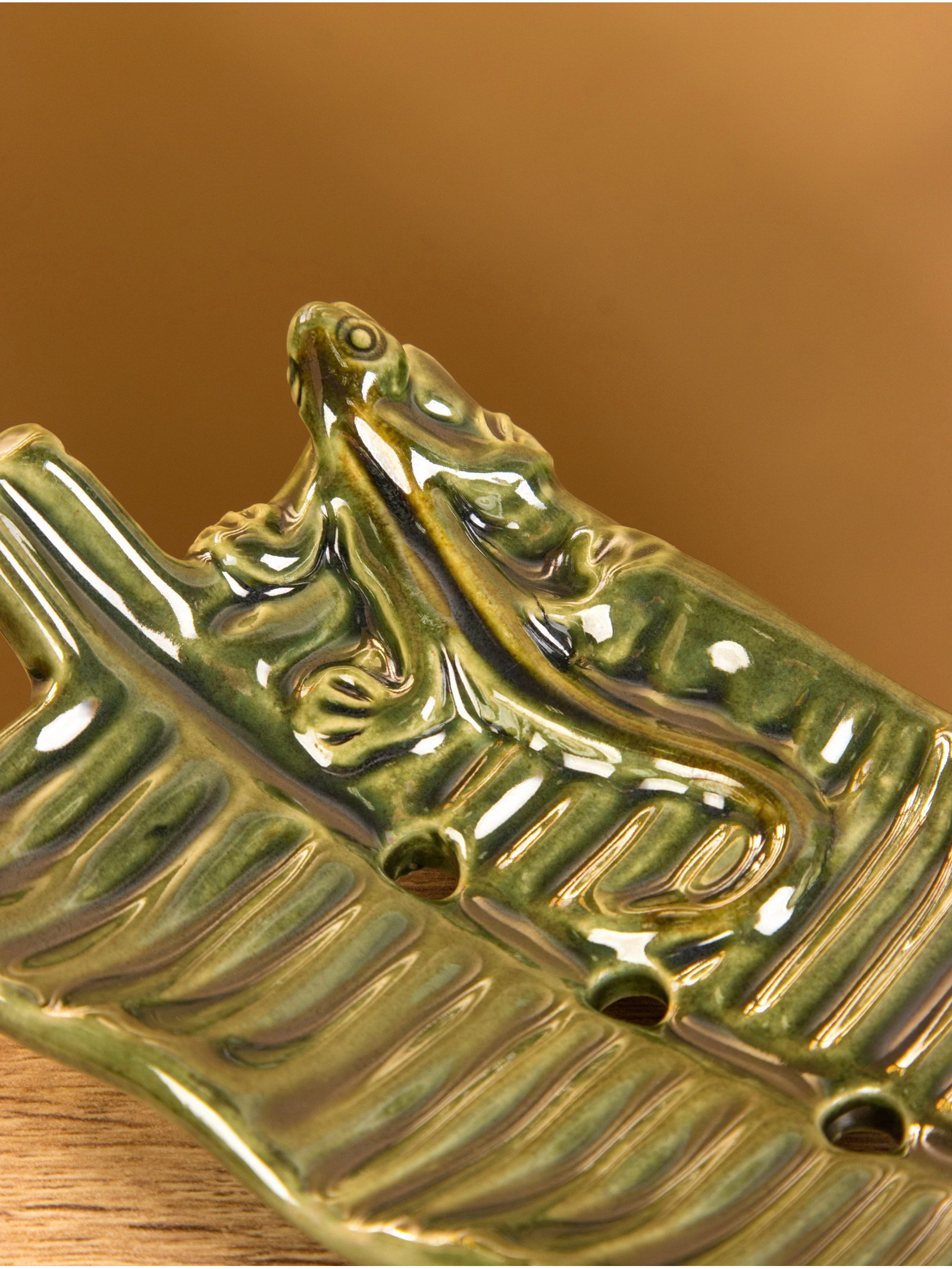 Мыльница "Геккон", 12x7x3 см, керамика, зелёная, 7x12x3 см., Индонезия
