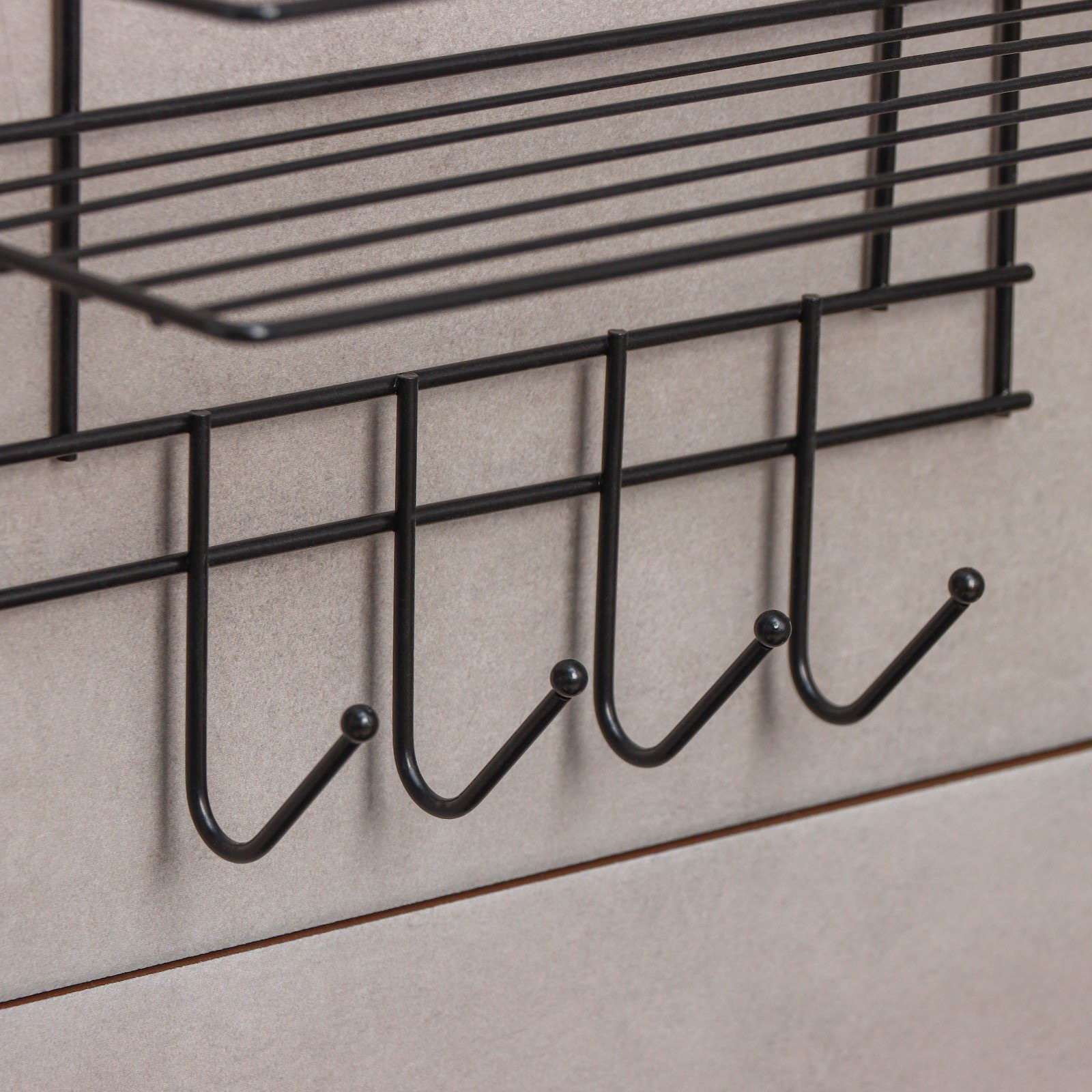 Полка для ванной прямая, 4 крючка, 33x12.5x21 см, чёрная, Россия