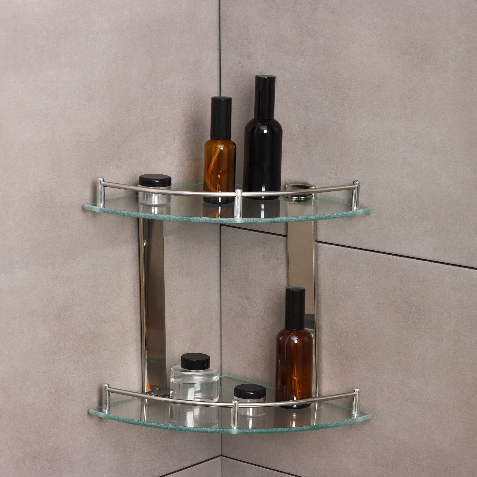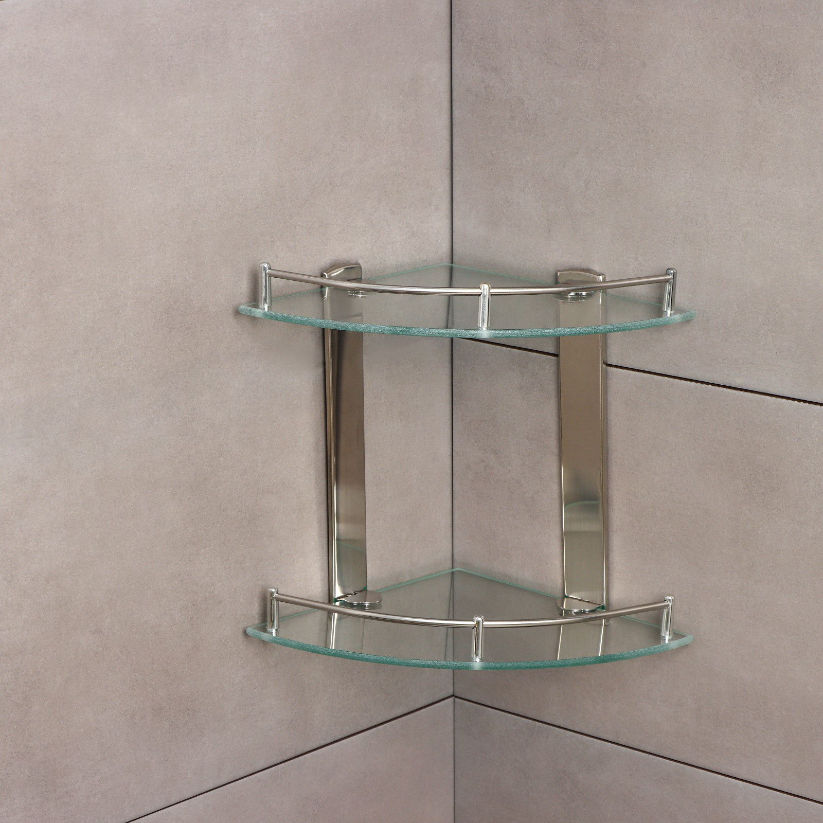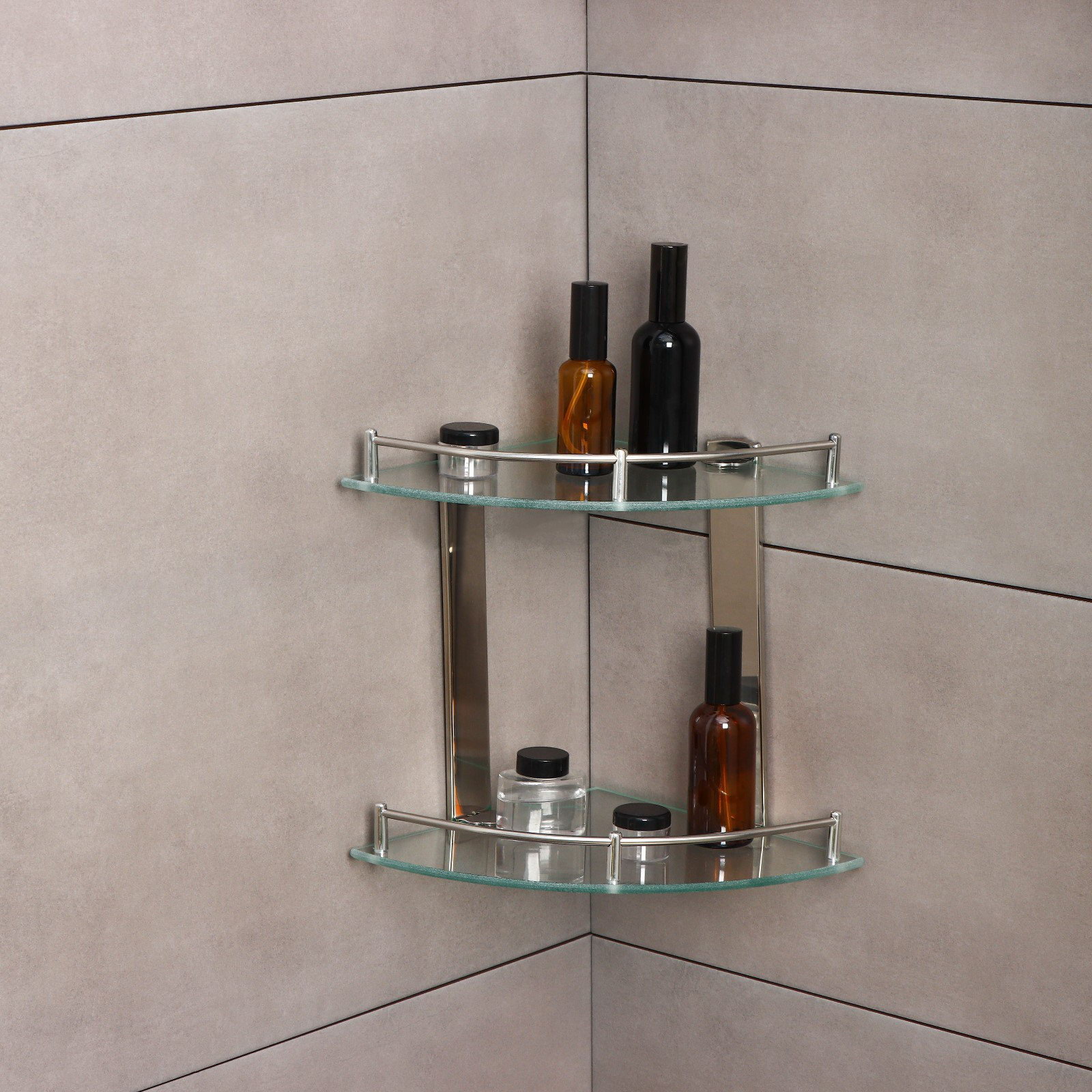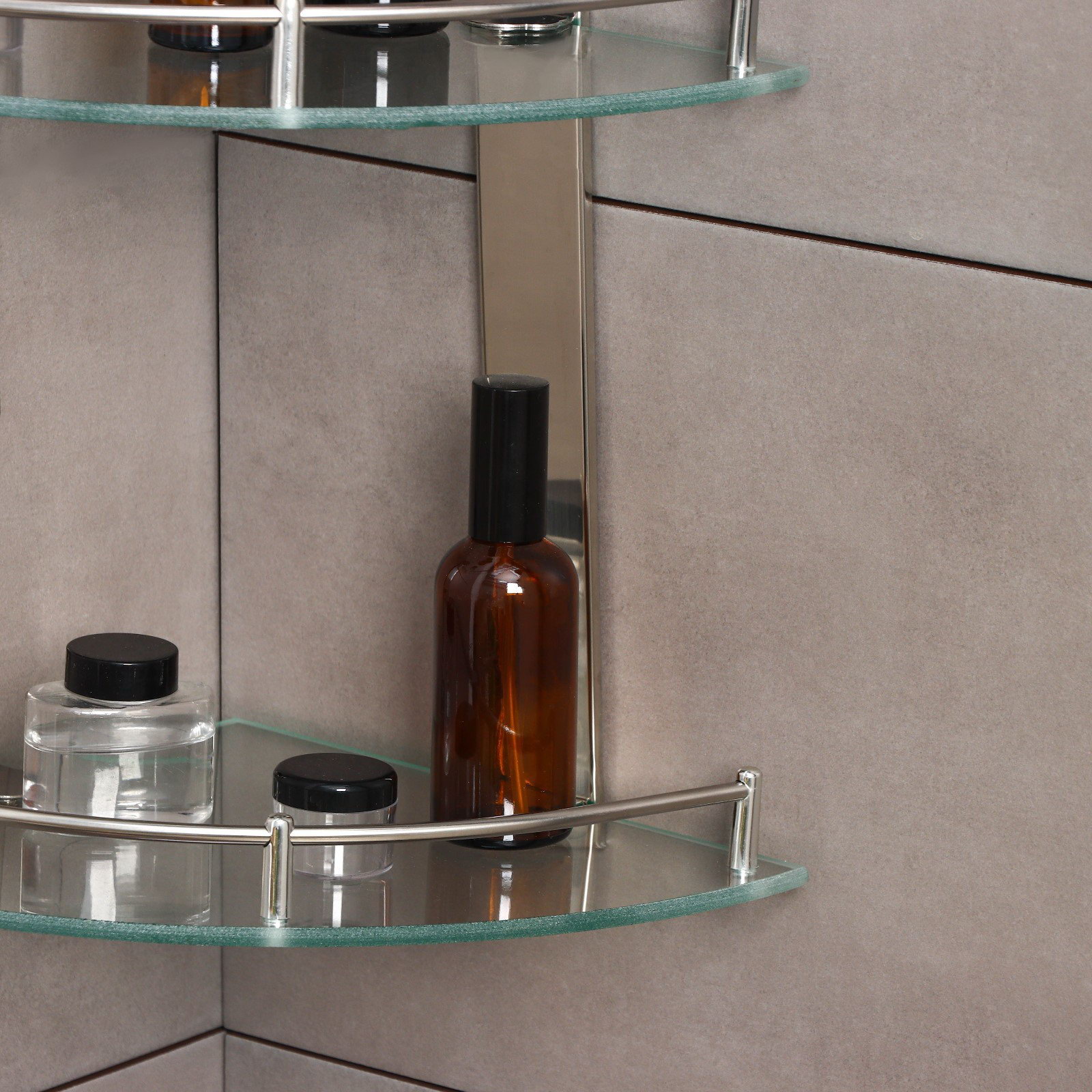 Полка для ванной комнаты 2х-ярусная угловая Штольц 24x24x28 см, нержавеющая сталь, стекло, 24x24x28 см., Stolz, Китай