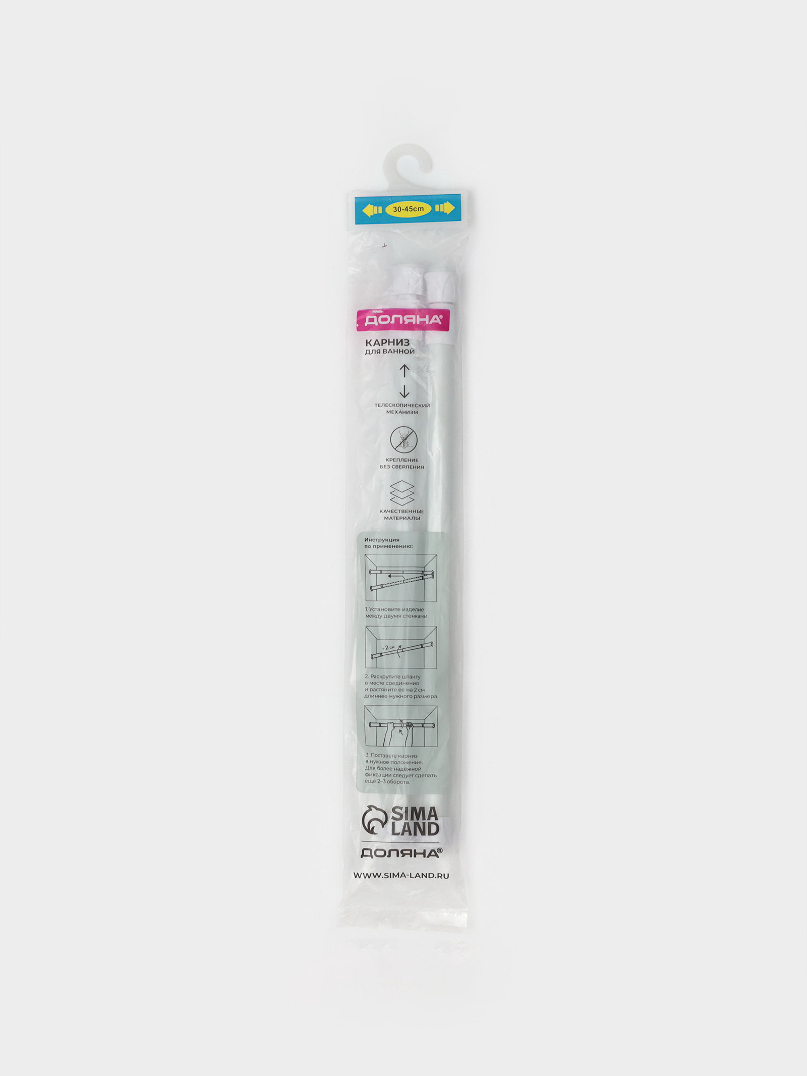 Вид карниза: Прямой, Телескопический Длина, см: 31, 52 Размер упаковки: 6.5 x 2 x 31 см. Крепления входят в комплект: Да Кольца в комплекте: Нет Тип: Карниз tnved: 8302419000 tnved: 8302419000 Цвет: Белый Металлический карниз работает по следующему принципу. Вы устанавливаете его одной стороной в стену и раскручиваете с другой. Так он увеличивается в размере. После того как второй край упрётся, следует сделать ещё 2–3 оборота для более надёжной фиксации. Затем просто навесьте штору с крючками и распрямите её по всей длине. Преимущества: