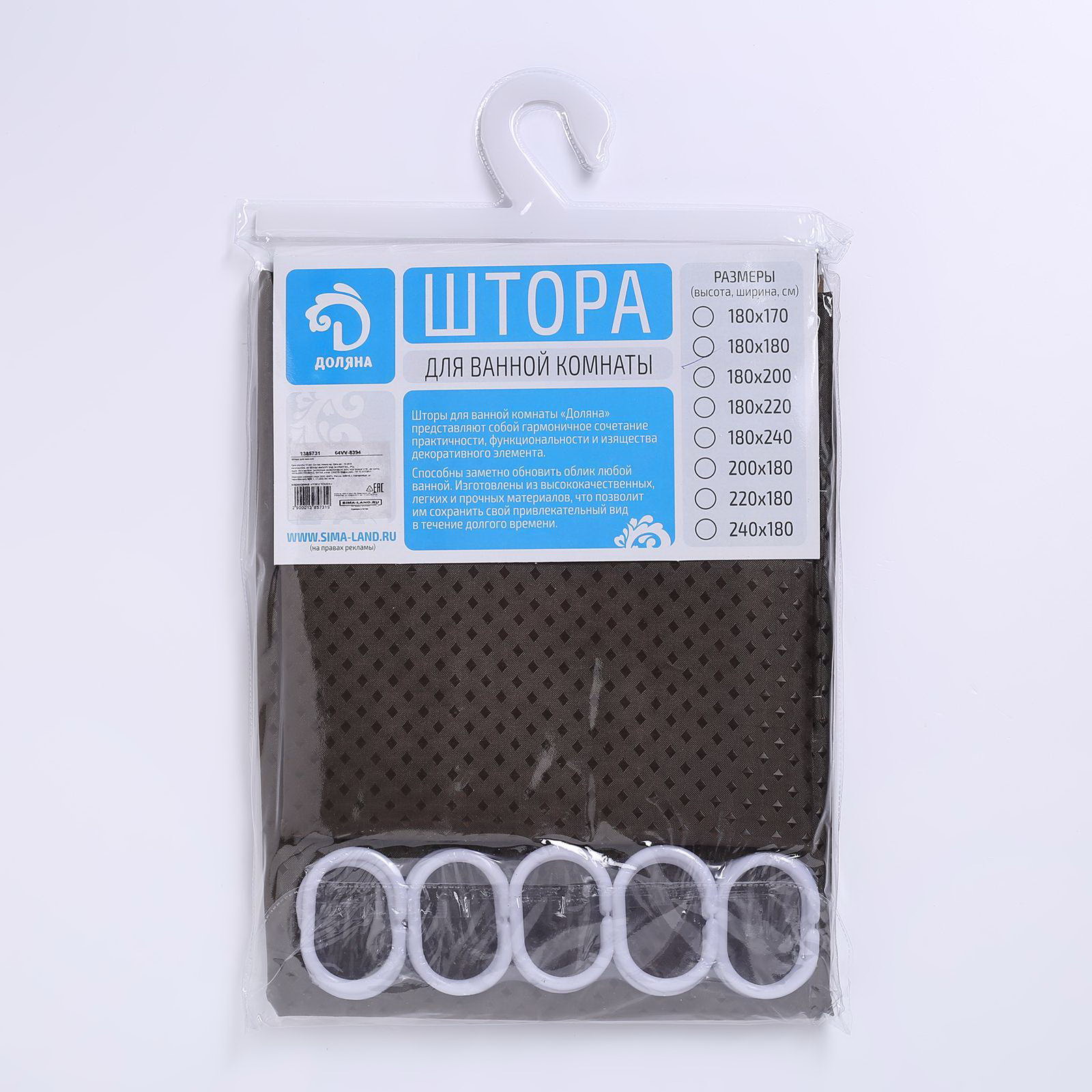 Размер упаковки: 22 x 2 x 31.5 см. Цвет: Коричневый Размер, см: 180 x 180 Кольца в комплекте: Да Тип: Штора Тематика праздника: Универсальная тематика Тип крепления: Кольца Ширина, см: 180 tnved: 6303929000 Рисунок: Нет Тематика: Однотонная Водоотталкивающая тканевая штора - универсальный аксессуар для ванной комнаты, выполненная из плотного полиэстера с водоотталкивающей пропиткой. Преимущества: