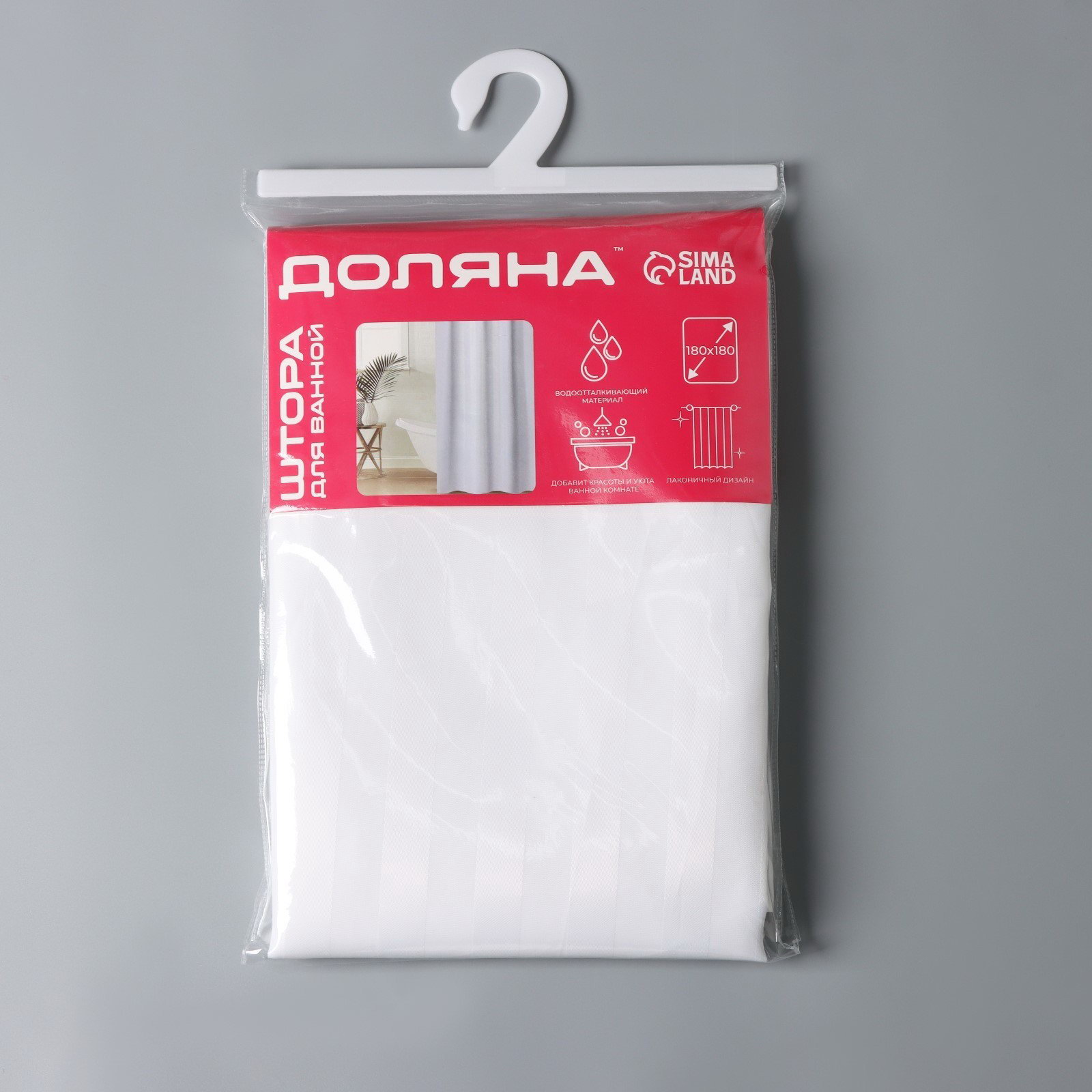 Штора для ванны "Полоска", 180x180 см, полиэстер, белая, 180x180x0.1 см., Доляна, Китай