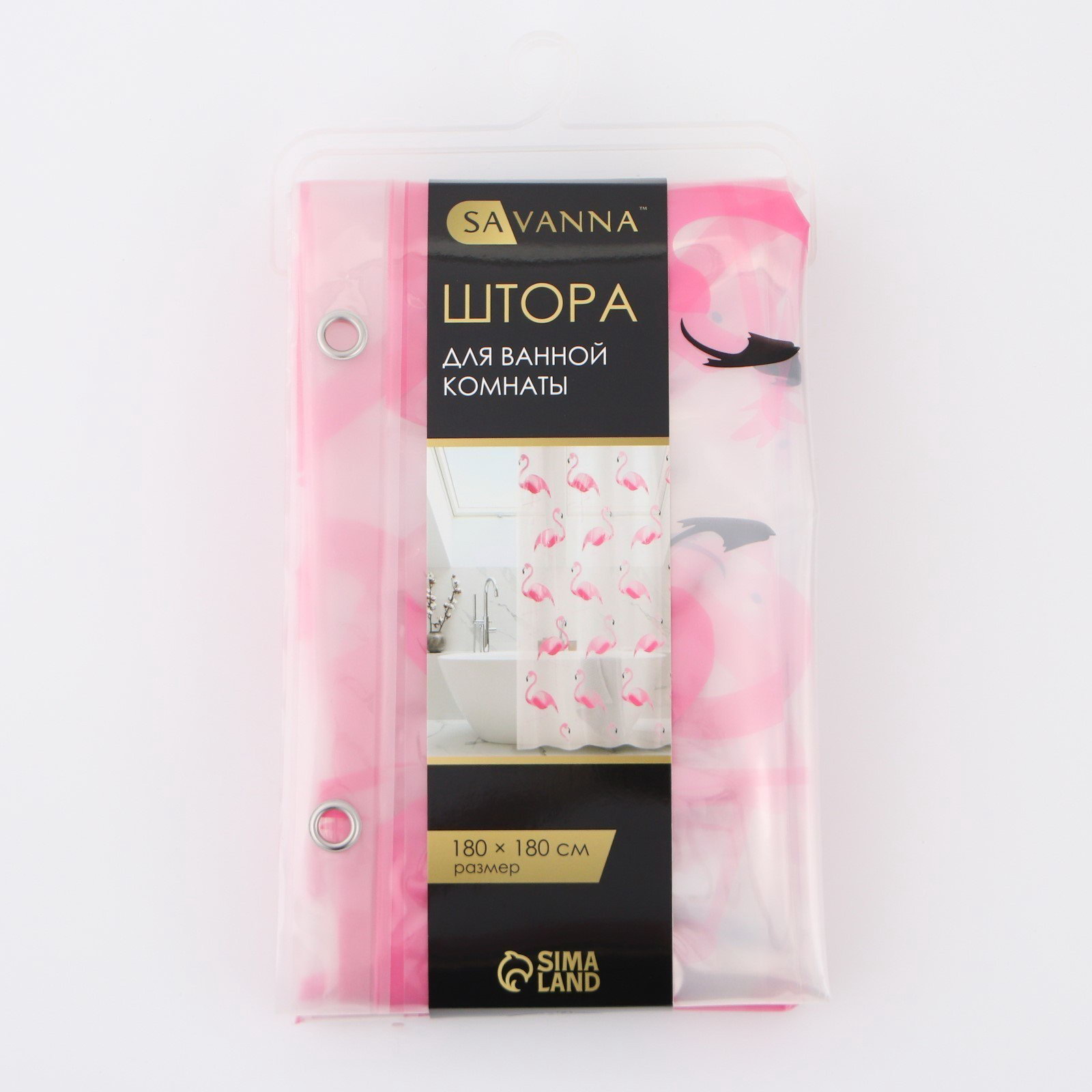 Штора для ванной "Фламинго", с люверсами, 180x180 см, PEVA, 180x180 см., SAVANNA, Китай