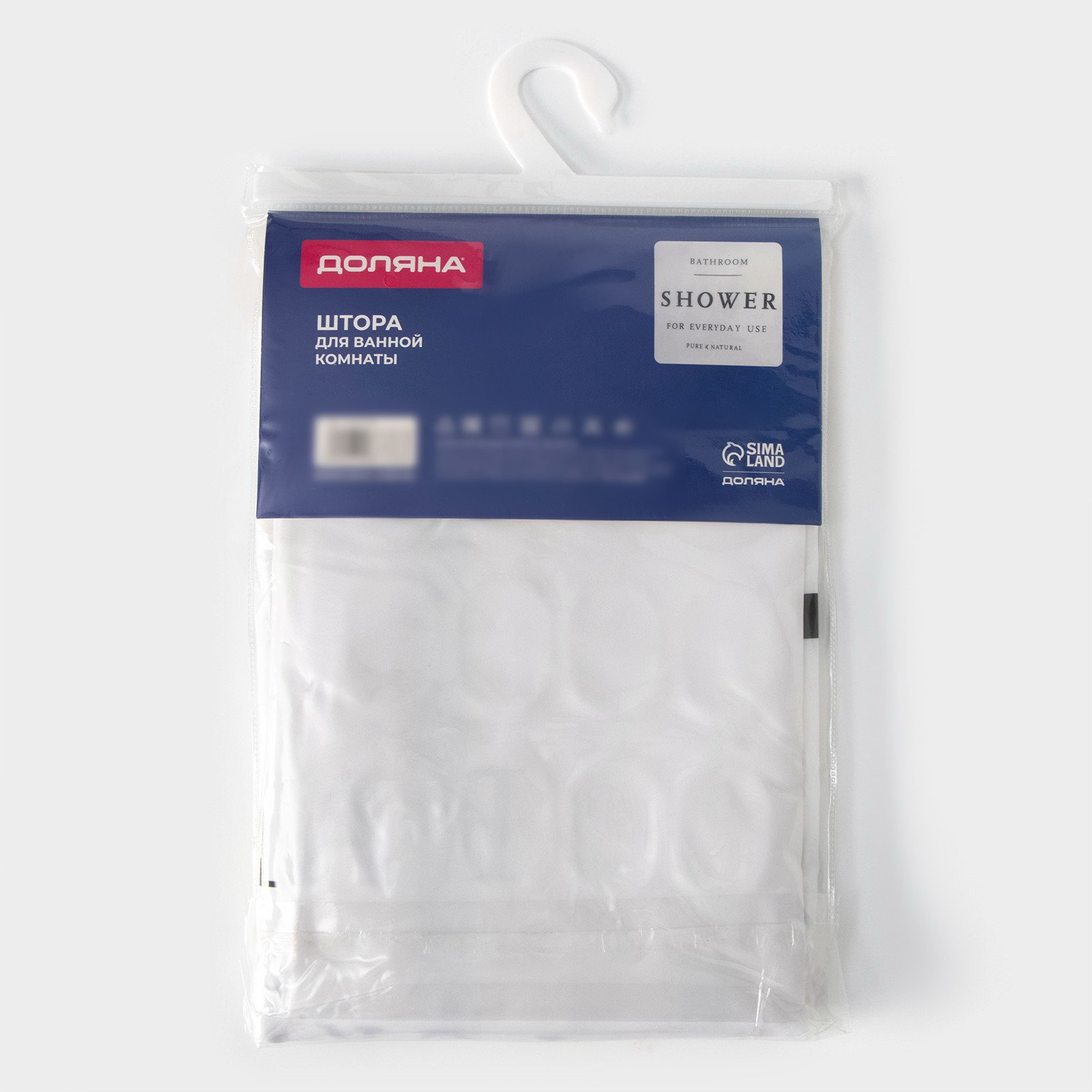 Штора для ванны SHOWER с люверсами, 180x180 см, 180x180x0.1 см., Доляна, Китай