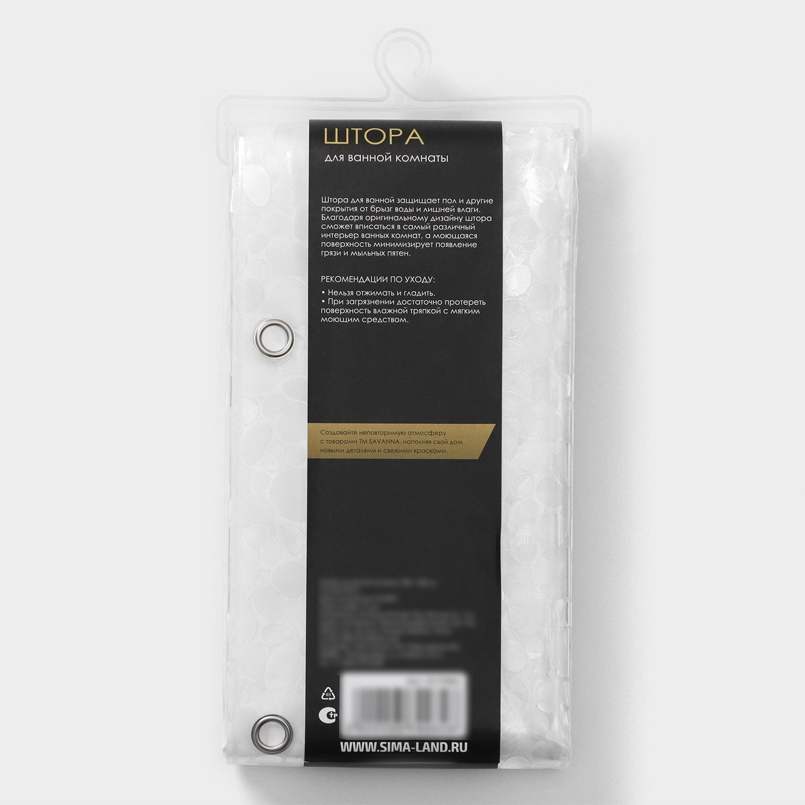 Тип крепления: Кольца, Люверсы Размер упаковки: 15 x 4 x 30 см. Рисунок: Да Кольца в комплекте: Да tnved: 3924900000 tnved: 3924900000 Цвет: Белый Размер, см: 180 x 180 Тематика: Узоры Штора для ванной SAVANNA выполнена из высококачественного полиэстера и оснащена люверсами для крепления к карнизу. Она имеет серый цвет, что делает её универсальной и легко сочетаемой с любым интерьером ванной комнаты. Эта штора обладает высокой износостойкостью, не электризуется и не способствует размножению бактерий, обеспечивая комфорт и гигиену во время принятия водных процедур. Материал PEVA это нетоксичный полимерный материал без запаха. Он не впитывает влагу, поэтому штору не нужно часто сушить. При необходимости края можно укоротить обычными ножницами, дополнительная обработка не требуется. Уход за такими шторами прост: достаточно протереть их губкой с мыльным раствором. | ||