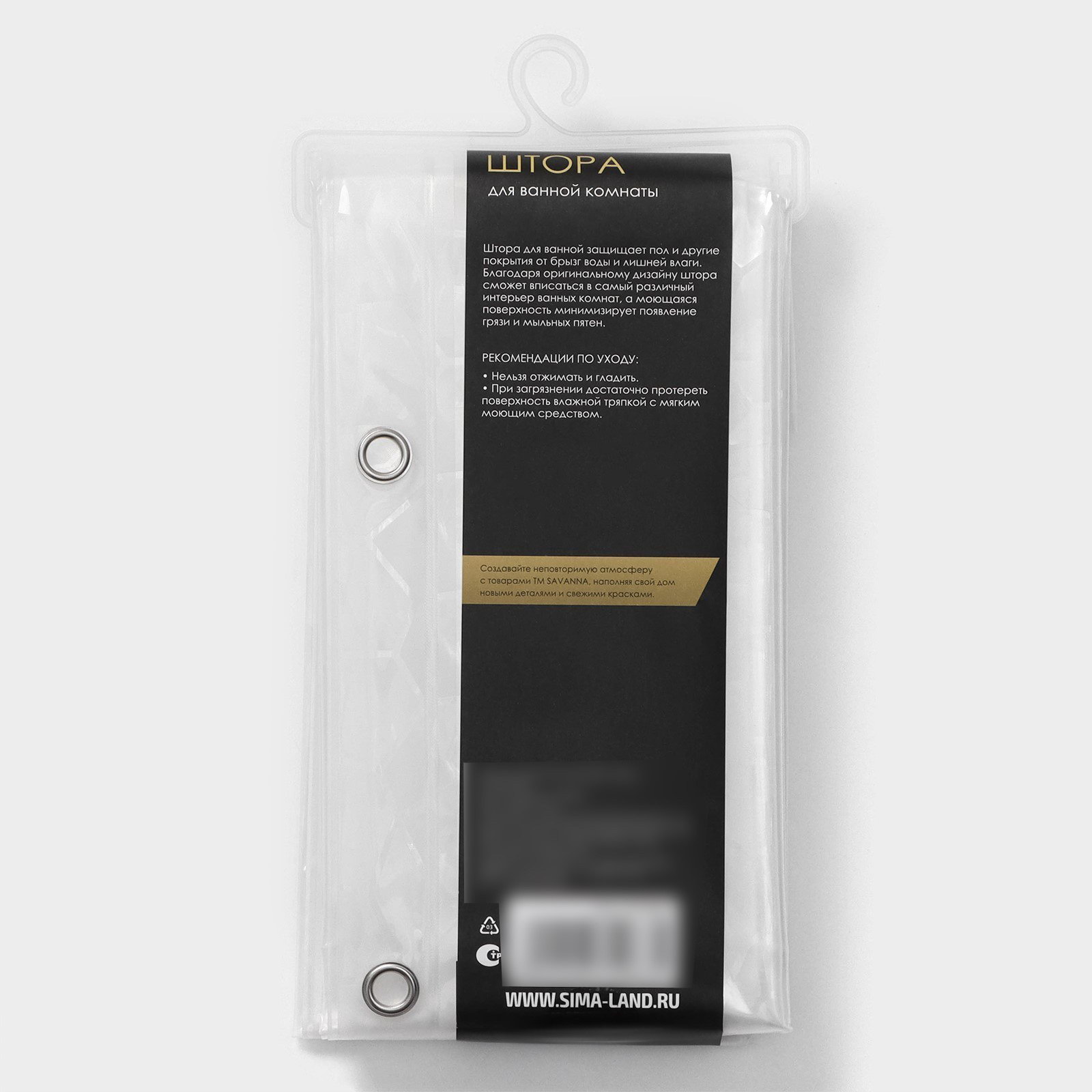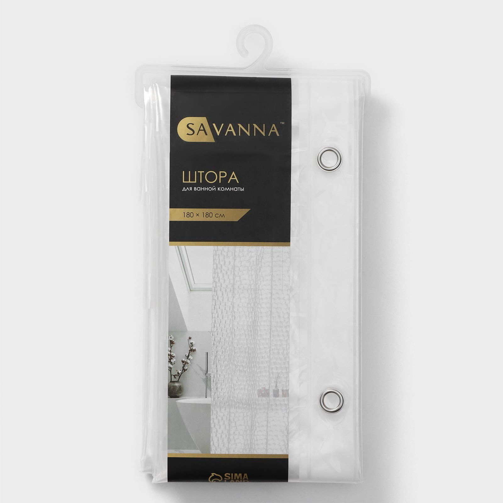 Штора для ванной "Геометрия", 180x180 см, PEVA, белая, 180x180x0.1 см., SAVANNA, Китай
