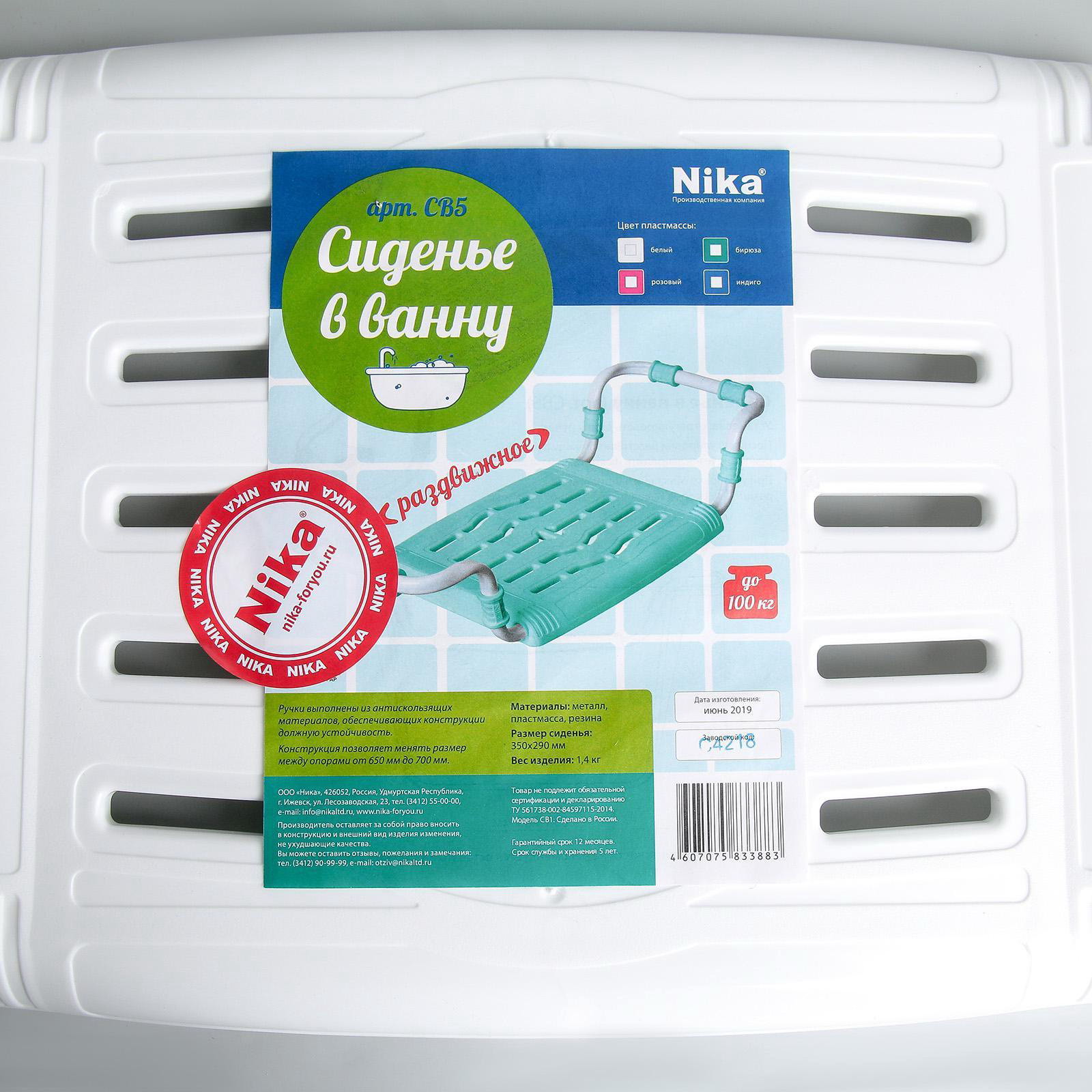 Сиденье для ванны раздвижное, 35x29 см, белое, 28.5x66x14 см., Nika, Россия