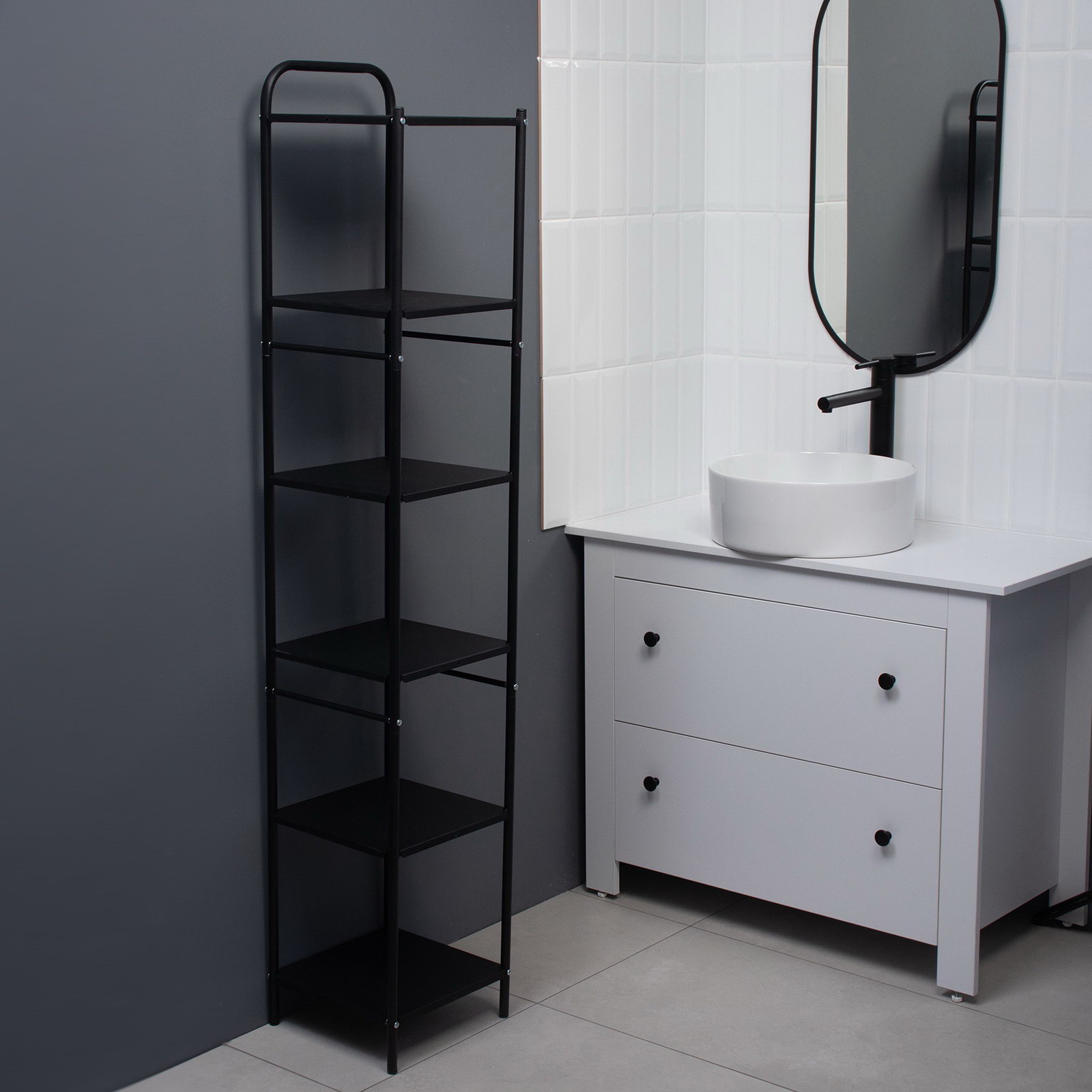 Стеллаж напольный шестиярусный, 29x29x158.5 см, чёрный, Россия