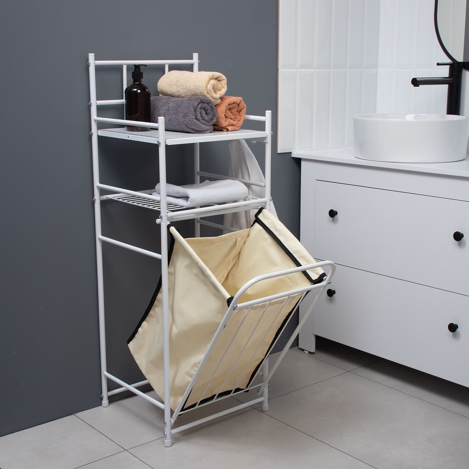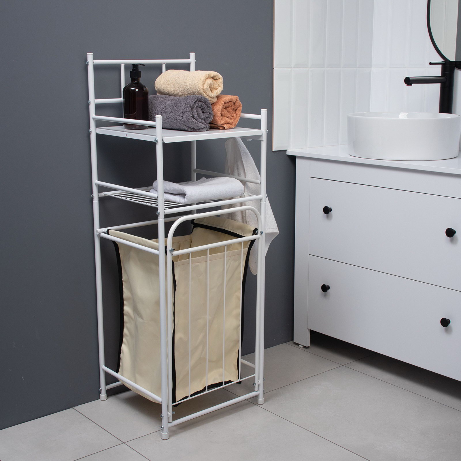 Стеллаж с корзиной для белья 2-х ярусный, 38x35x105 см, белый, 35x38x105 см., Россия