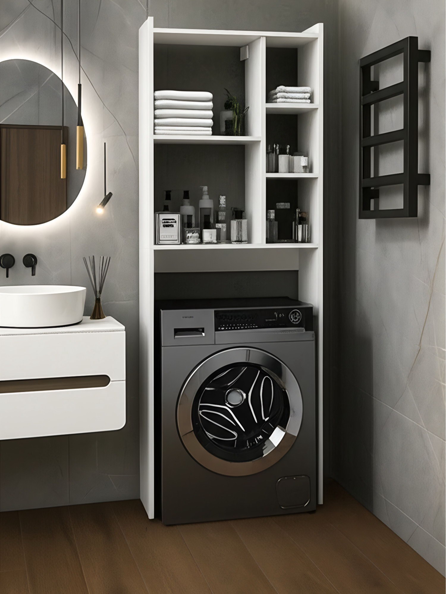 Стеллаж напольный "Комфорт" №1, над стиральной машиной, 673x220x1696 мм, цвет белый, Россия