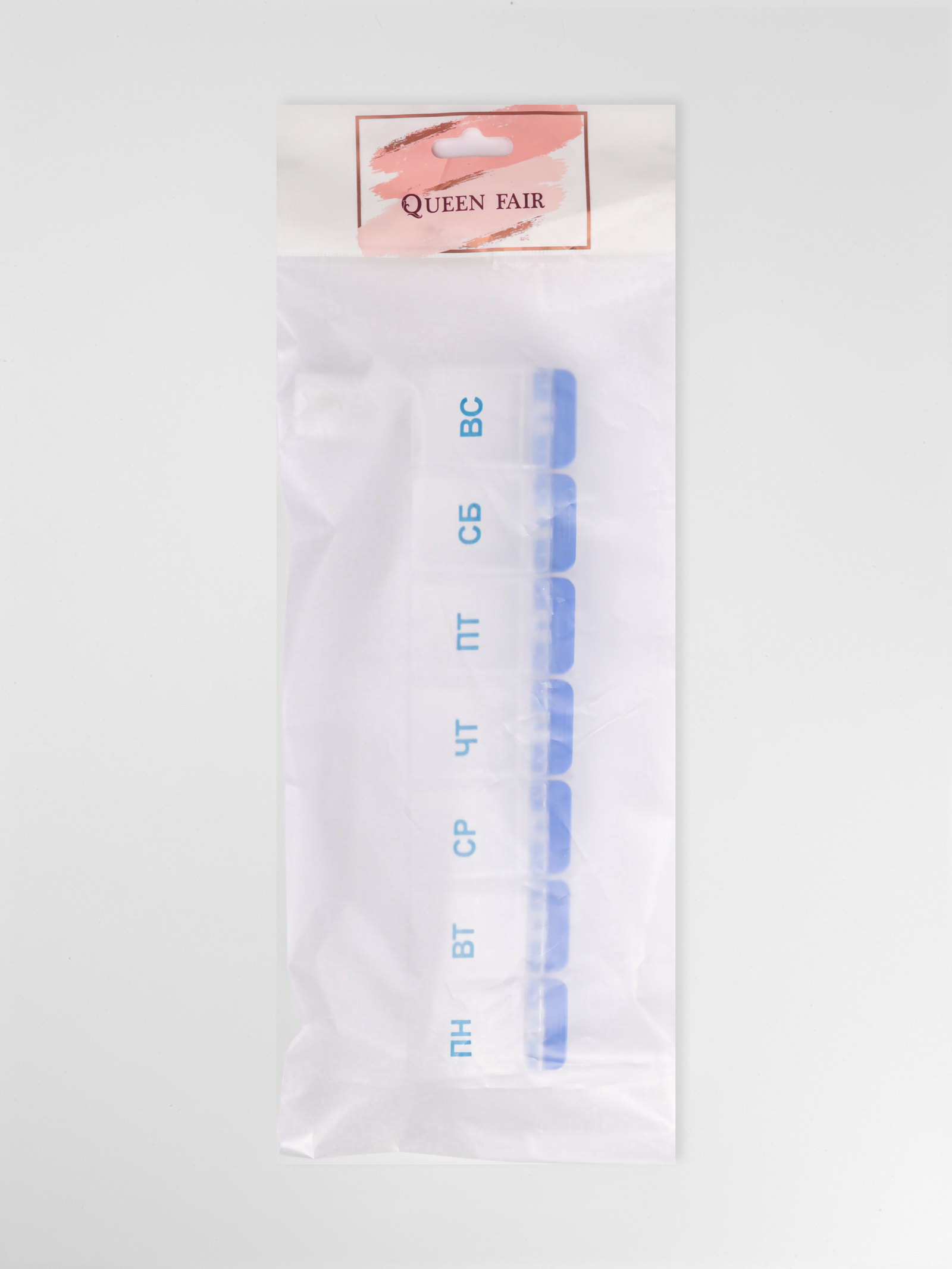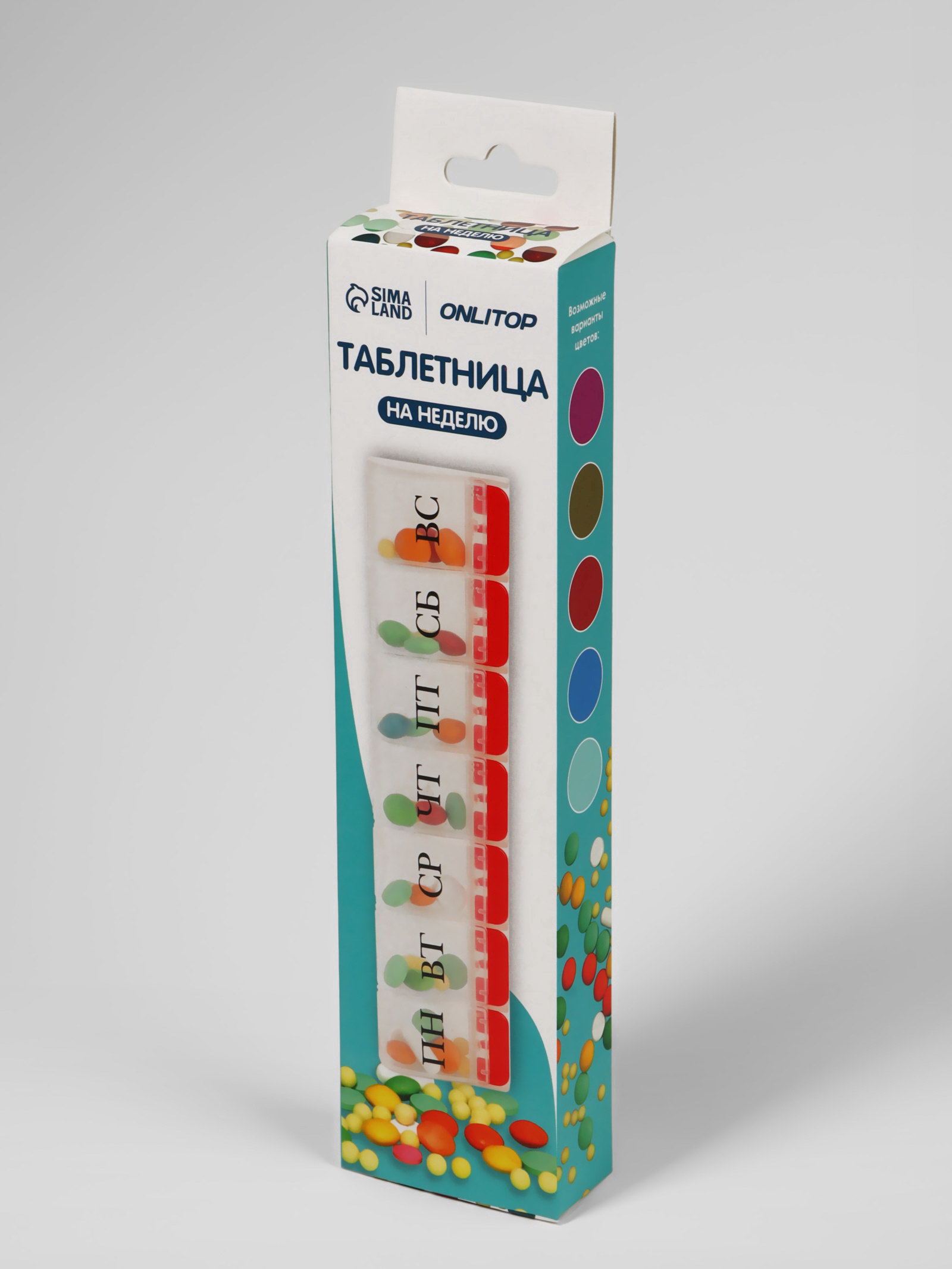 Таблетница "Неделька", русские буквы, 21.5x5.5x2.5 см, 7 секций, МИКС, 21.5x5.5x2.5 см., ONLITOP, Китай