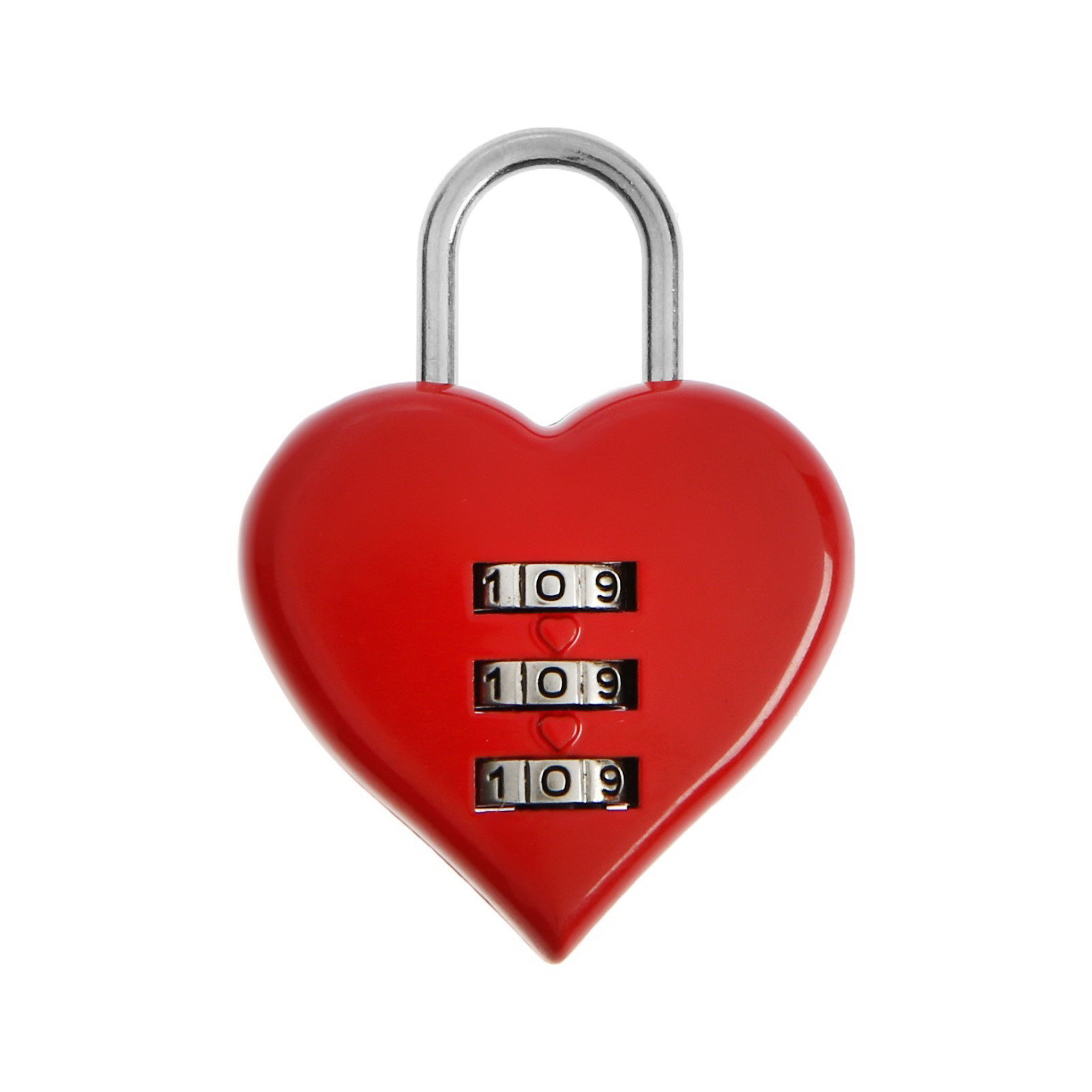 Замок навесной кодовый "Сердце", красный, 4x5.4x1.3 см., ТУНДРА, Китай