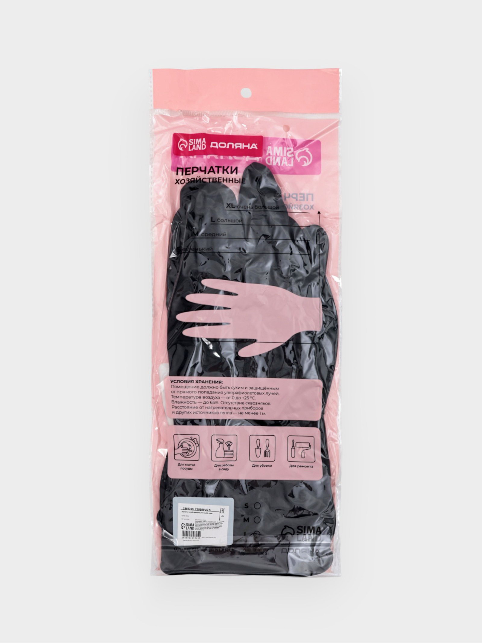 Перчатки хозяйственные латексные размер XL, химически стойкие, чёрные, 14x31x0.5 см., Доляна, Китай