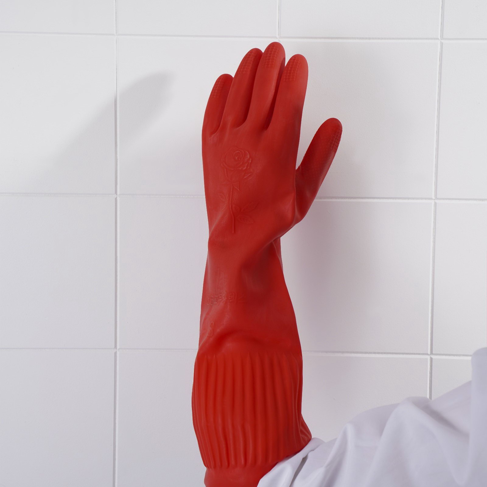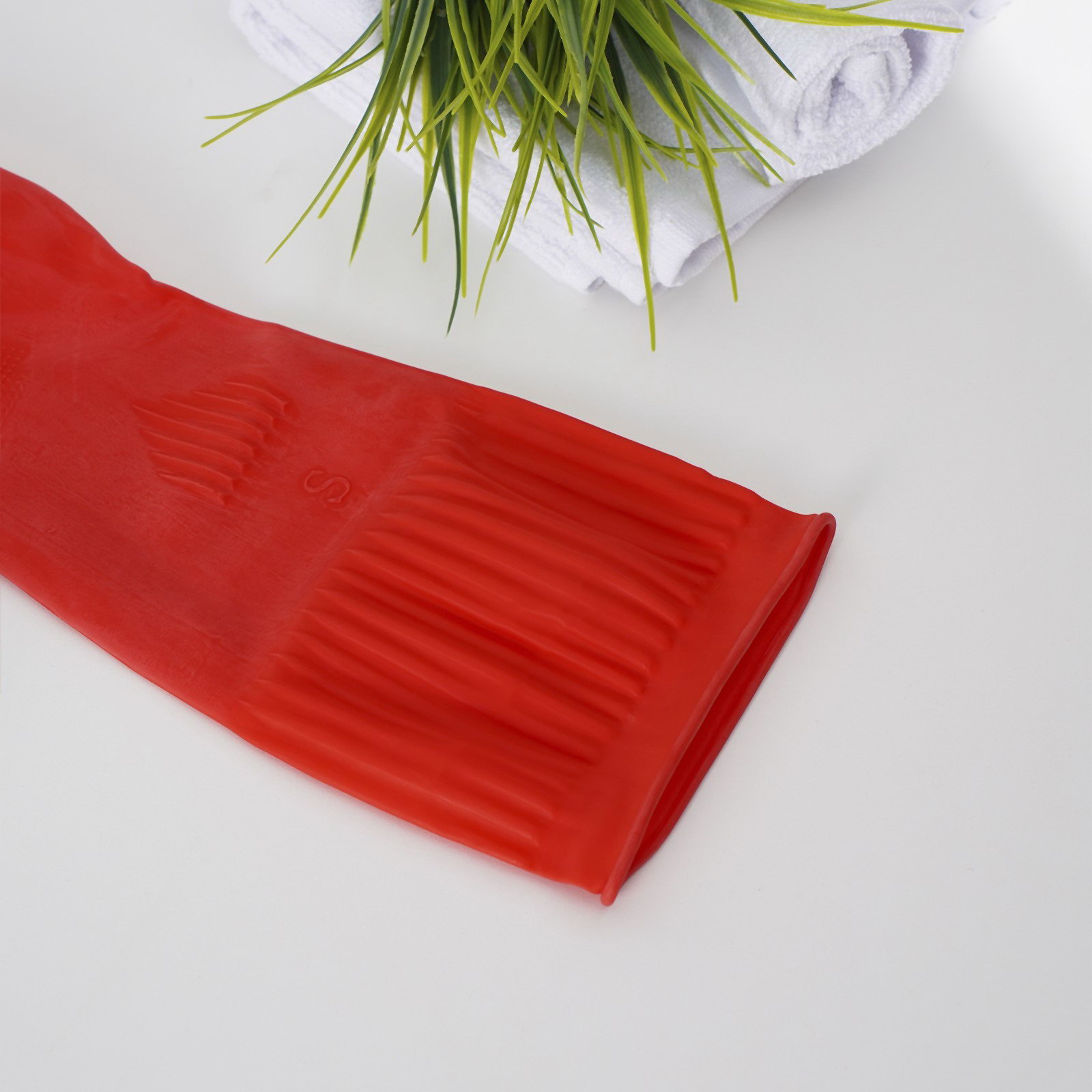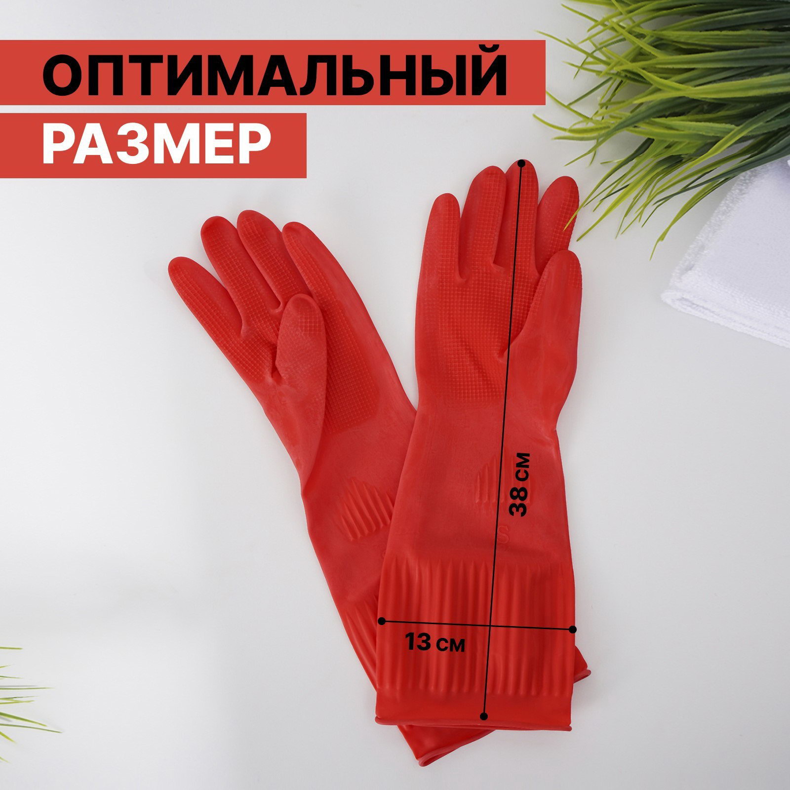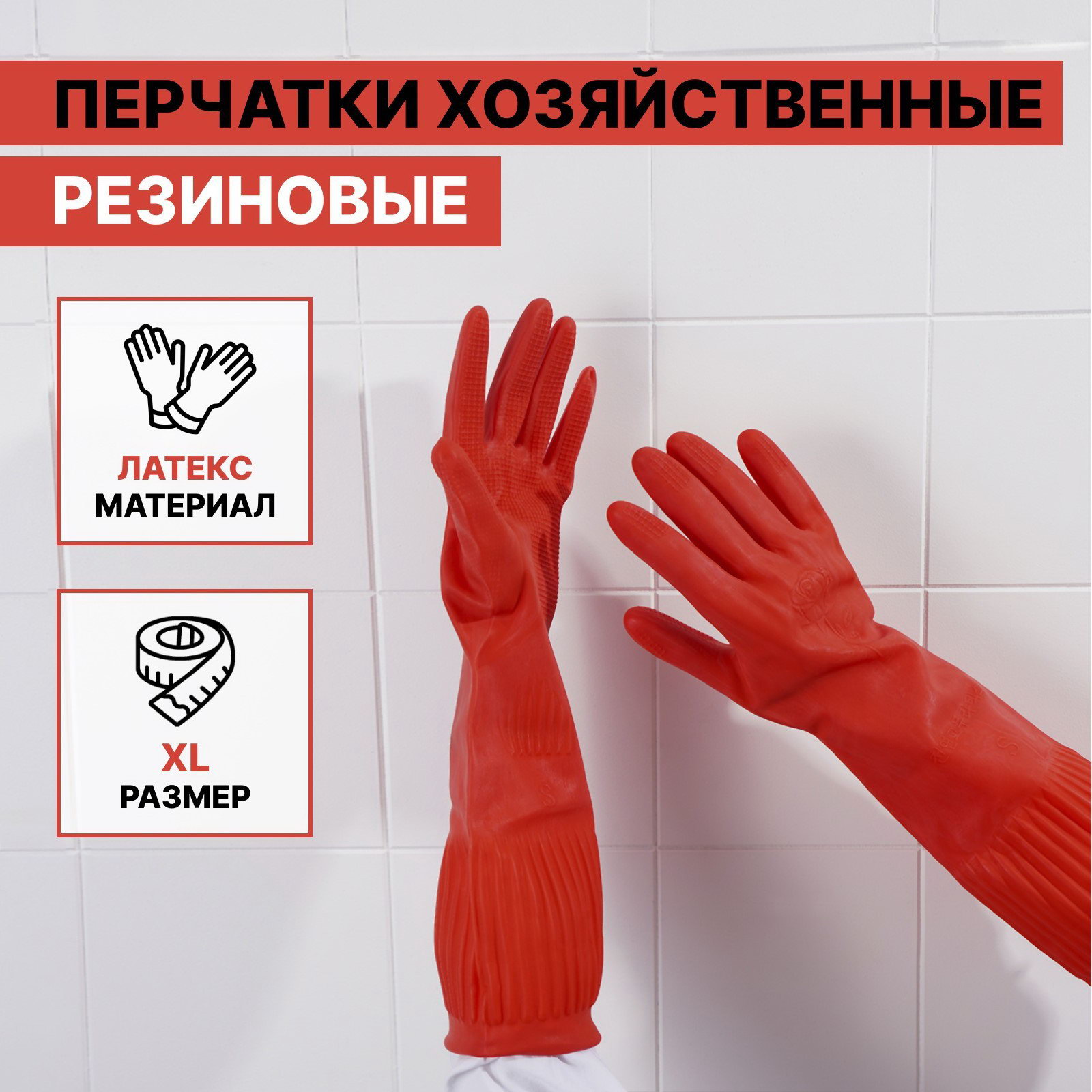 Перчатки хозяйственные резиновые Доляна, размер XL, 38 см, длинные манжеты, 90 гр, цвет красный, Китай