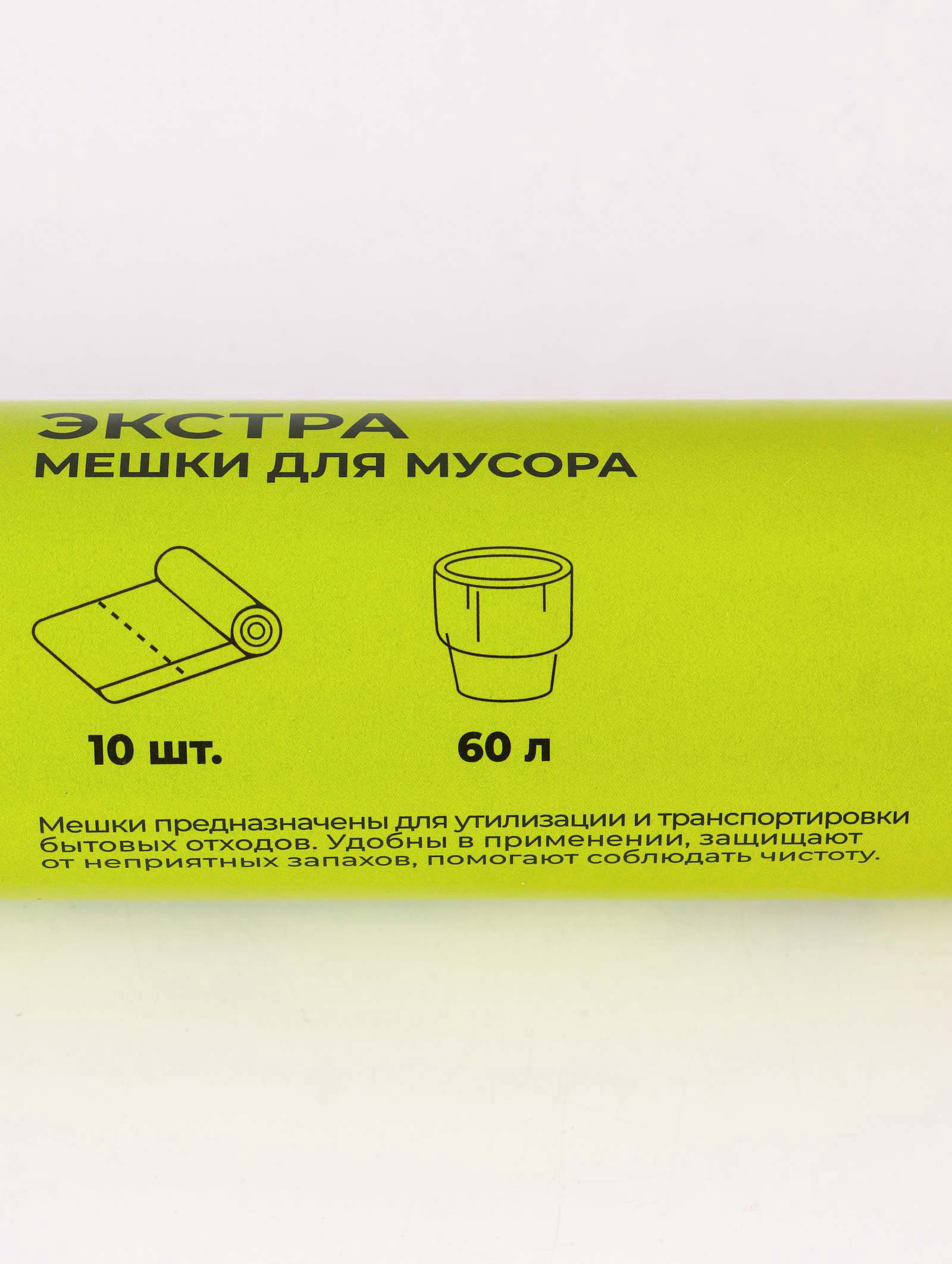 Мешки для мусора с завязками "Экстра", 60 л, 25 мкм, 60x70 см, ПВД, 10 шт., чёрные, 14x21 см., Доляна, Россия