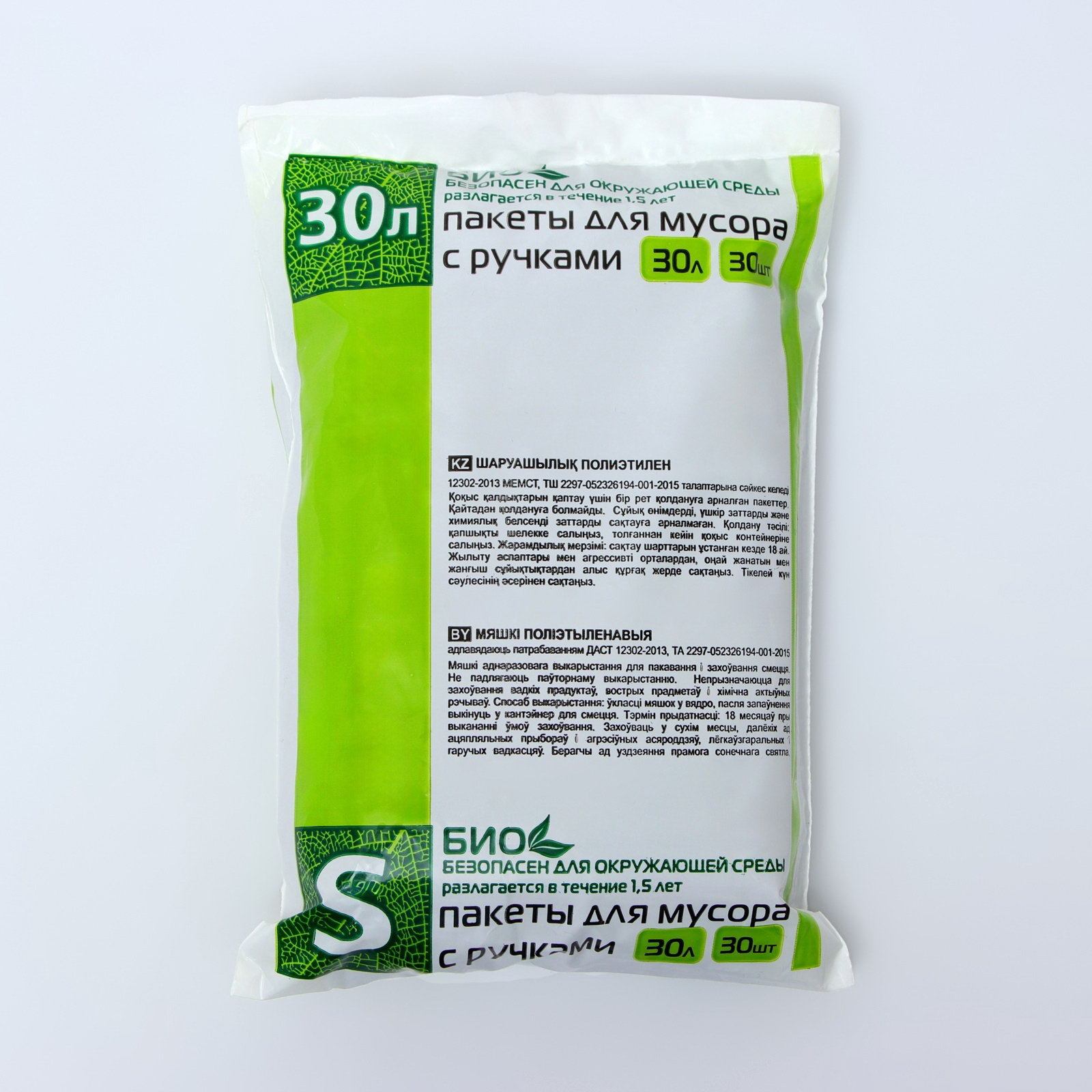 Мешки для мусора с ручками 30 л, "Эконом", ПНД, 8 мкм, набор 30 шт., 31x19x60 см, 30000 мл., Россия